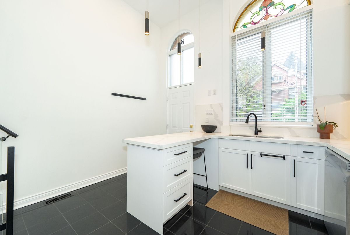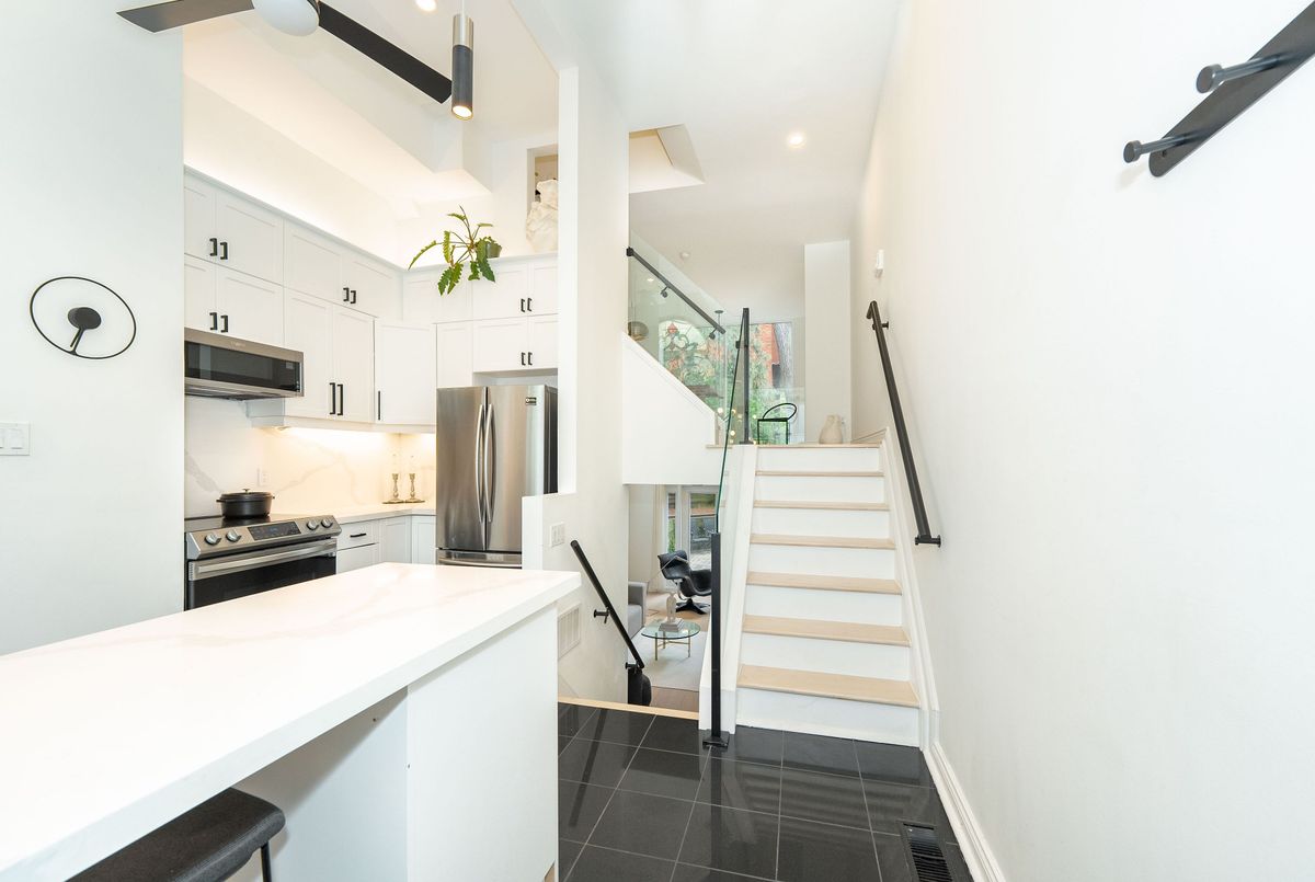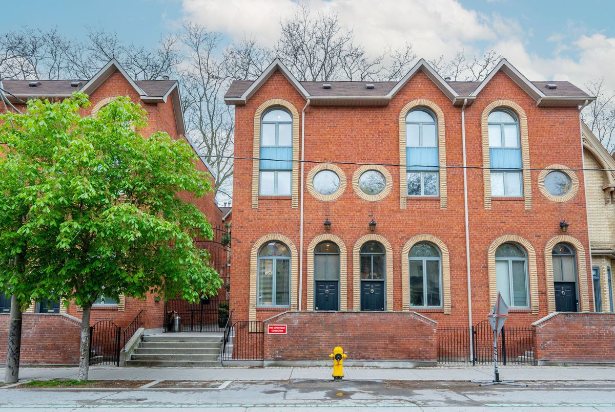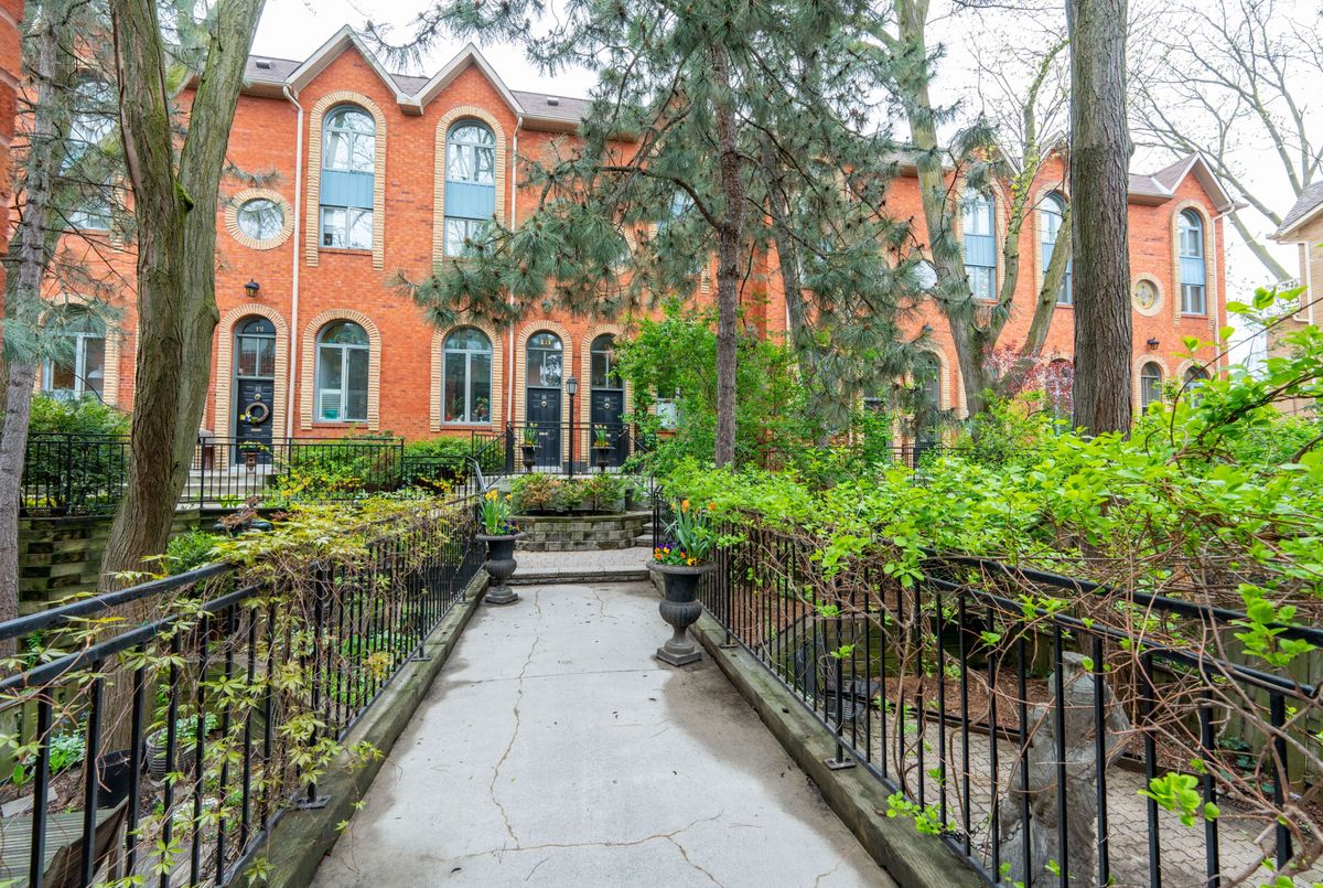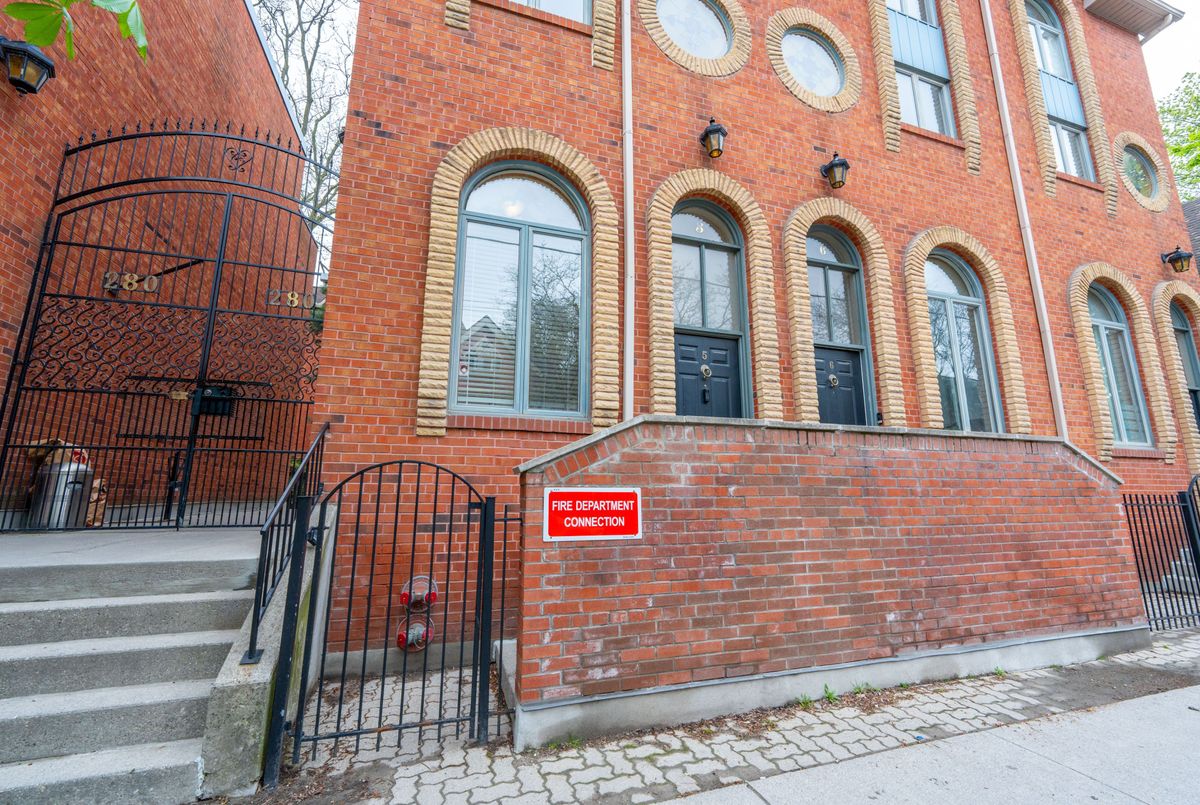 Welcome to Suite 5 at 280 Sherbourne Ave. A Rare Urban Oasis in the Heart of Downtown. Exceptional Value at $999,000 just $566 per sq ft.This stunning 1,764 sq ft multi-level end-unit Victorian townhome, offered at an unbelievable price. Tucked quietly within an exclusive, well managed 18-unit condo community, this hidden gem is nestled in a peaceful courtyard surrounded by mature trees and tiered stone pathways. A rare retreat in the middle of the city. Drenched in natural light, this home is perfect for entertaining or serene everyday living. The chef-inspired kitchen impresses with soaring ceilings, expansive quartz counters, and sleek modern fnishes. Elegant glass railings, a cozy wood-burning freplace, and authentic stained glass windows blend style with character. A dramatic wall of windows opens onto your private 285 sq ft backyard terrace; a lush garden space ideal for outdoor dining and relaxation. Upstairs, you'll find two generous bedrooms with spaciious closets, while the top-floor primary suite is a true sanctuary with a 5-piece ensuite, walk-in closet, and tranquil treetop balcony. Leave the car behind with a near-perfect 97 Walk Score and excellent transit access, you're minutes to College Station, the Dundas streetcar, and multiple bus routes.Steps to Bay Street, St. Michaels Hospital, the Eaton Centre, Distillery District, St. Lawrence Market, Toronto Metropolitan University, George Brown College, and more. A rare opportunity to own a downtown freehold-style space at a condo price. This is sophisticated urban living without compromise.