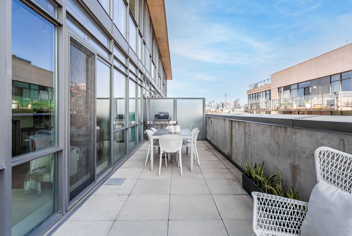 Bright, Spacious West Queen West Penthouse Loft In Well-Managed Mid-Rise. Exceptional 2-Storey Floor Plan Featuring 10' Ceilings, Modern Finishes & Pre-Engineered Wood Flooring Throughout. Spectacular, Wrap-Around Terrace With Natural Gas BBQ & South West Views of City Skyline, Treetops & Lake. Enter Into A Spacious Foyer With Upgraded Closet & Shoe Storage, Open-Concept Kitchen/Living/Dining With Integrated Appliances, Custom Shelving, Wrap-Around Floor-to-10' Ceiling Windows & Walk-Out To >300sf Terrace With Space To BBQ, Eat, Lounge & Sunbathe. Upper Level Features Spectacular Views From Corner Windows In Den & Bedroom. Bedroom Features Custom Closet, Layered Window Coverings & Skylight Perfect For Star-Gazing Before Sleep (& Custom Black-Out Cover For Those Who Prefer Complete Darkness). Bathroom Features Large Walk-In Shower, Extra Storage & Large-Format Tiling. Surrounded By The Best Conveniences and Fun: Metro and Fresco Grocers At Doorstep, Coffee Shops, Restaurants & Services Along Queen West. Short Walk To Trinity Bellwoods Park, Liberty Village & Ossington Village. Transit Trifecta With 501 Queen Streetcar At Door; 15 Min Walk To Exhibition GO To Union <10 Mins; & Dufferin Bus to Subway in 10 mins! Includes Premium Parking Location Close To Elevator. Amenities Include: Party Room & Visitor Parking Enter Via 2 Gladstone Avenue.