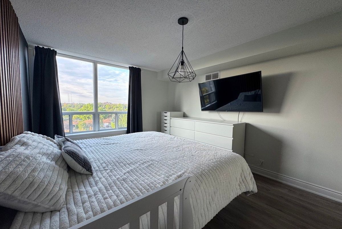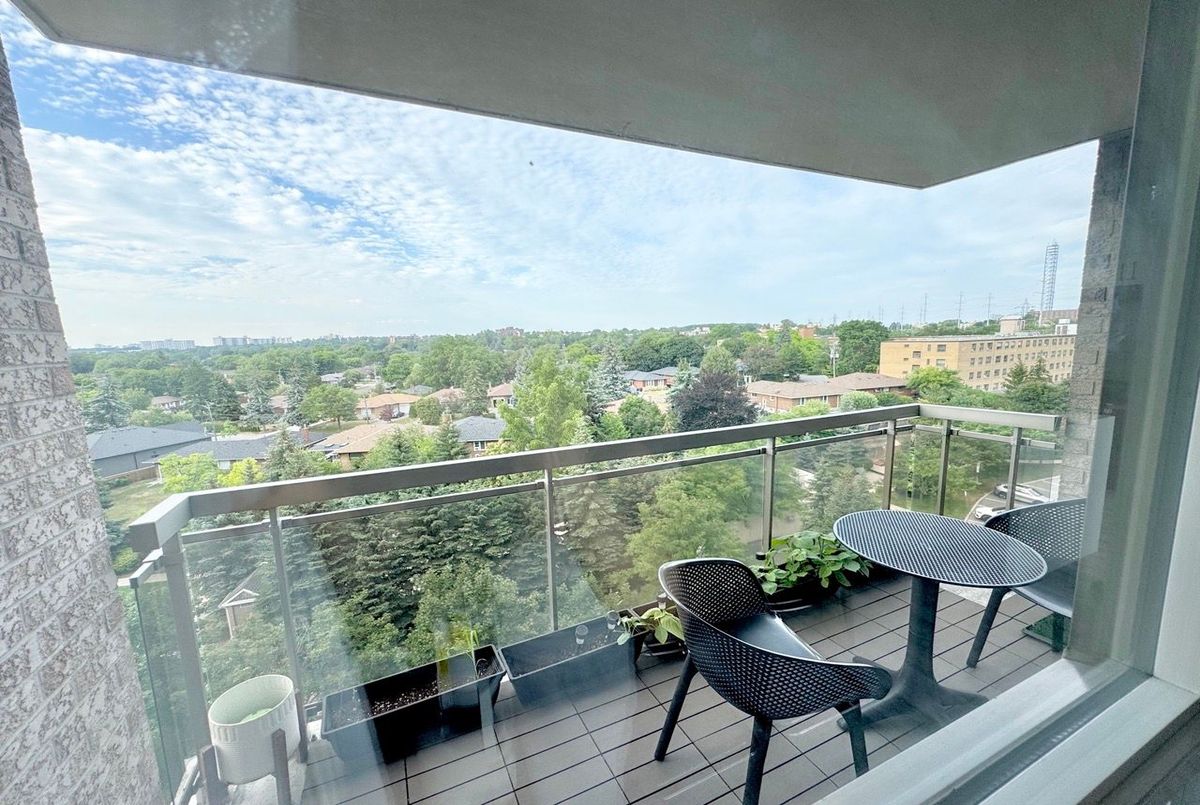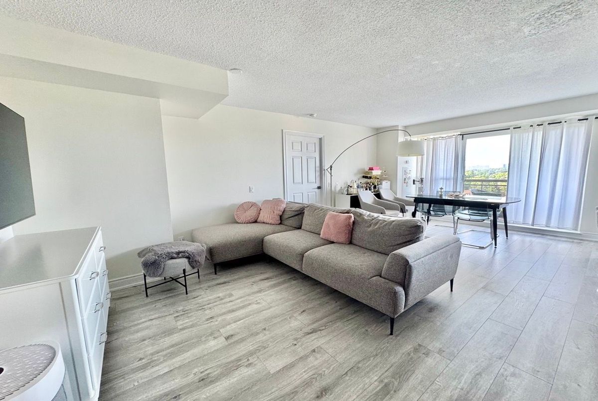 Modern and spacious 2-bedroom, 2-bathroom condo in the heart of Victoria Village, just steps to scenic ravine trails.This bright and spacious unit features stunning views from the bedroom, kitchen, and living room.This stylish unit features flooring throughout, an open-concept layout, and a sleek, updated kitchen with quartz countertops and stainless steel appliances.The spacious primary bedroom features a bold accent wall and a large mirrored closet.The second bedroom offers flexible use as a guest room, office, or nursery.Enjoy two full bathrooms with modern vanities, tile surrounds, and a tub plus in-suite laundry with full-sized washer & dryer and plenty of storage.Located in a well-maintained building with 24-hour concierge and security, fitness room, swimming pool,tennis court and party space. TTC at your doorstep and the brand new Metrolinx station expected opening September 2025right in front of the building!