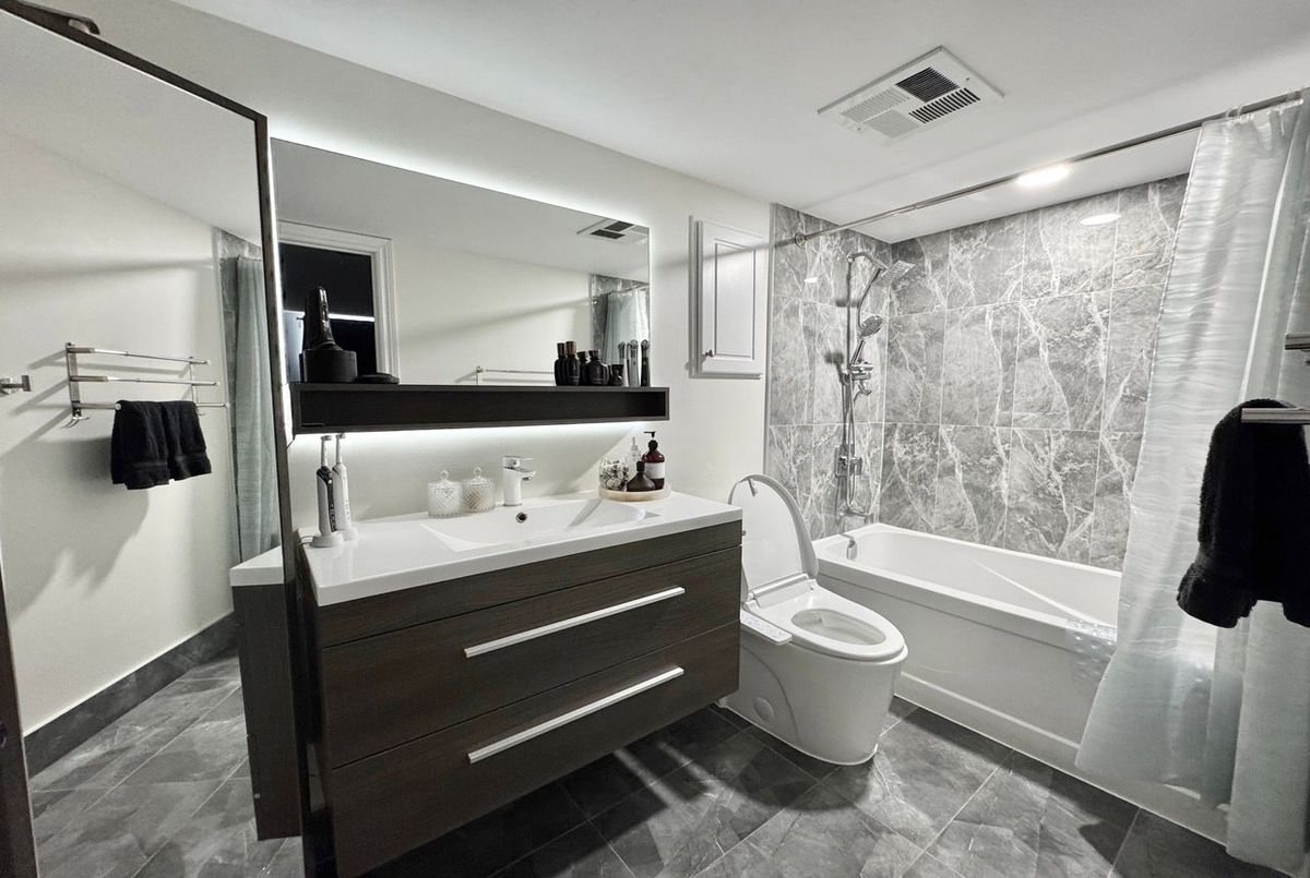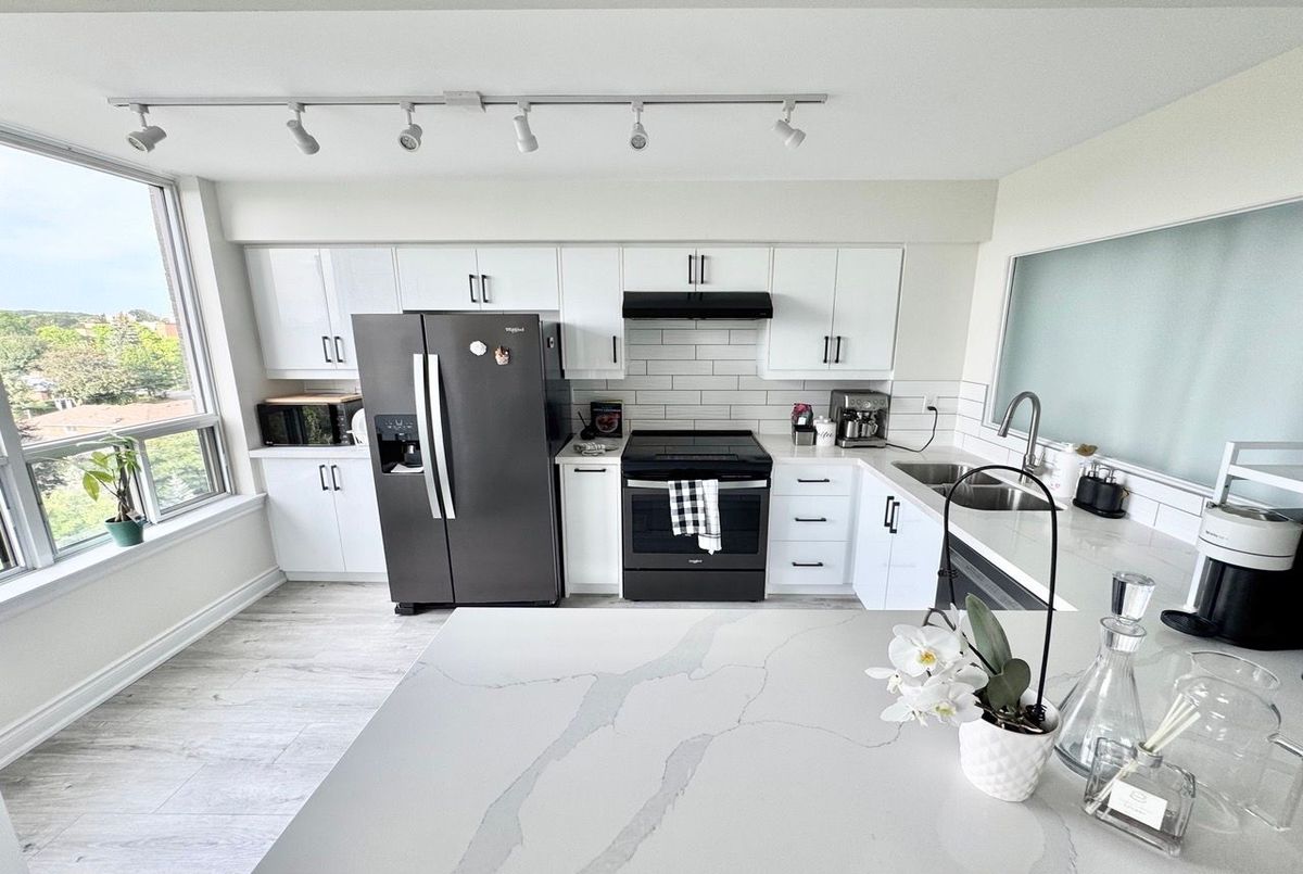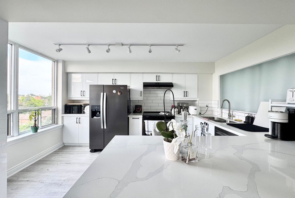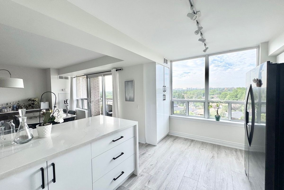 Modern and spacious 2-bedroom, 2-bathroom condo in the heart of Victoria Village, just steps to scenic ravine trails.This bright and spacious unit features stunning views from the bedroom, kitchen, and living room.This stylish unit features flooring throughout, an open-concept layout, and a sleek, updated kitchen with quartz countertops and stainless steel appliances.The spacious primary bedroom features a bold accent wall and a large mirrored closet.The second bedroom offers flexible use as a guest room, office, or nursery.Enjoy two full bathrooms with modern vanities, tile surrounds, and a tub plus in-suite laundry with full-sized washer & dryer and plenty of storage.Located in a well-maintained building with 24-hour concierge and security, fitness room, swimming pool,tennis court and party space. TTC at your doorstep and the brand new Metrolinx station expected opening September 2025right in front of the building!