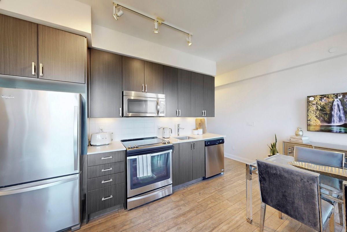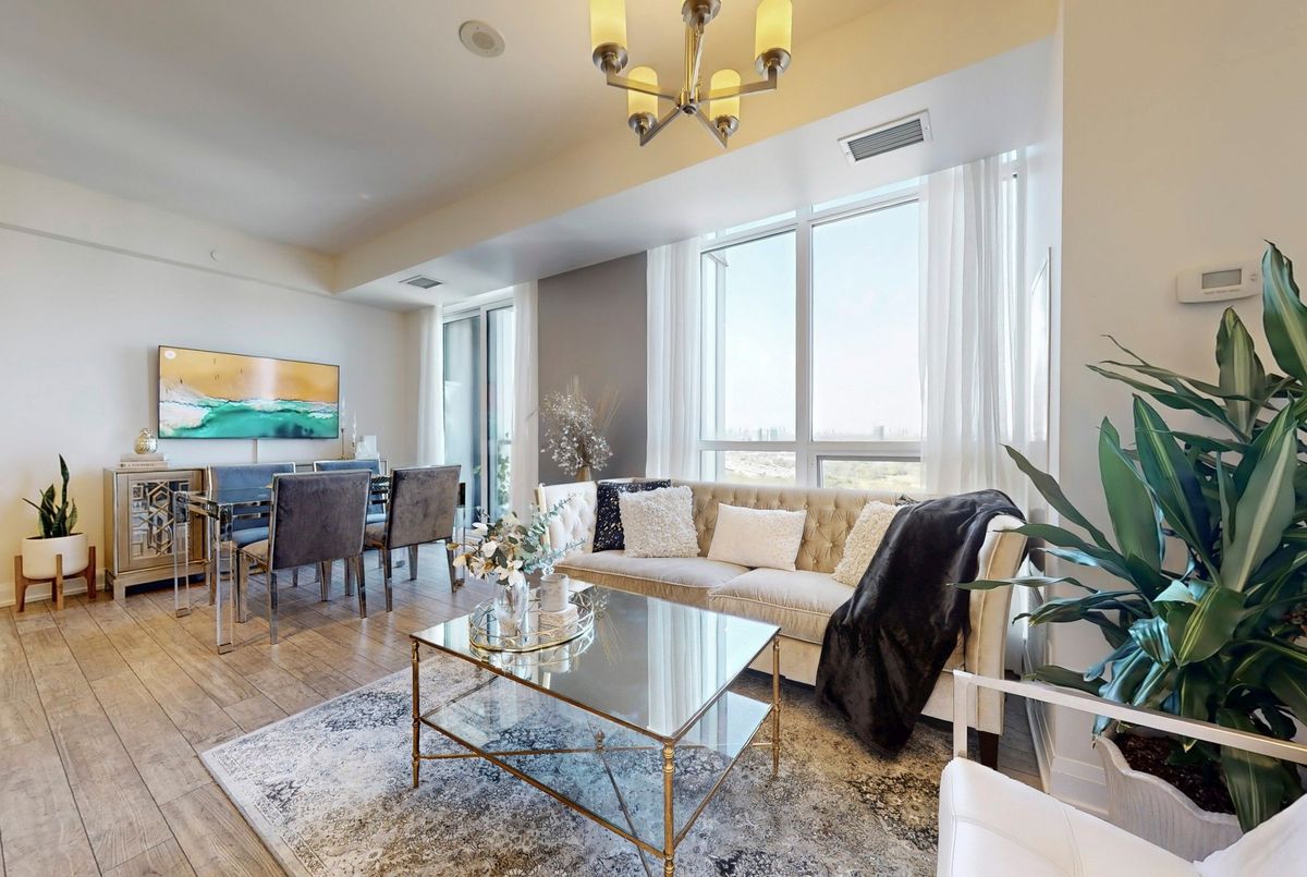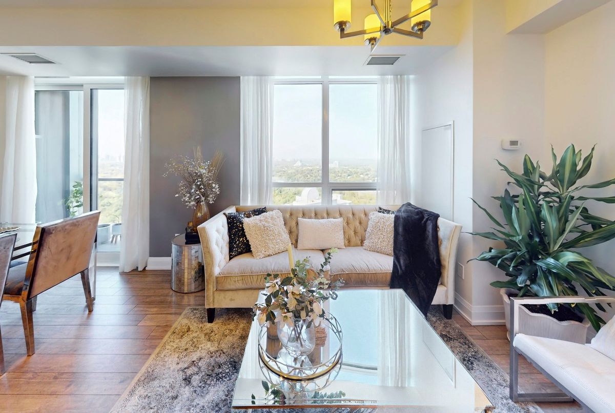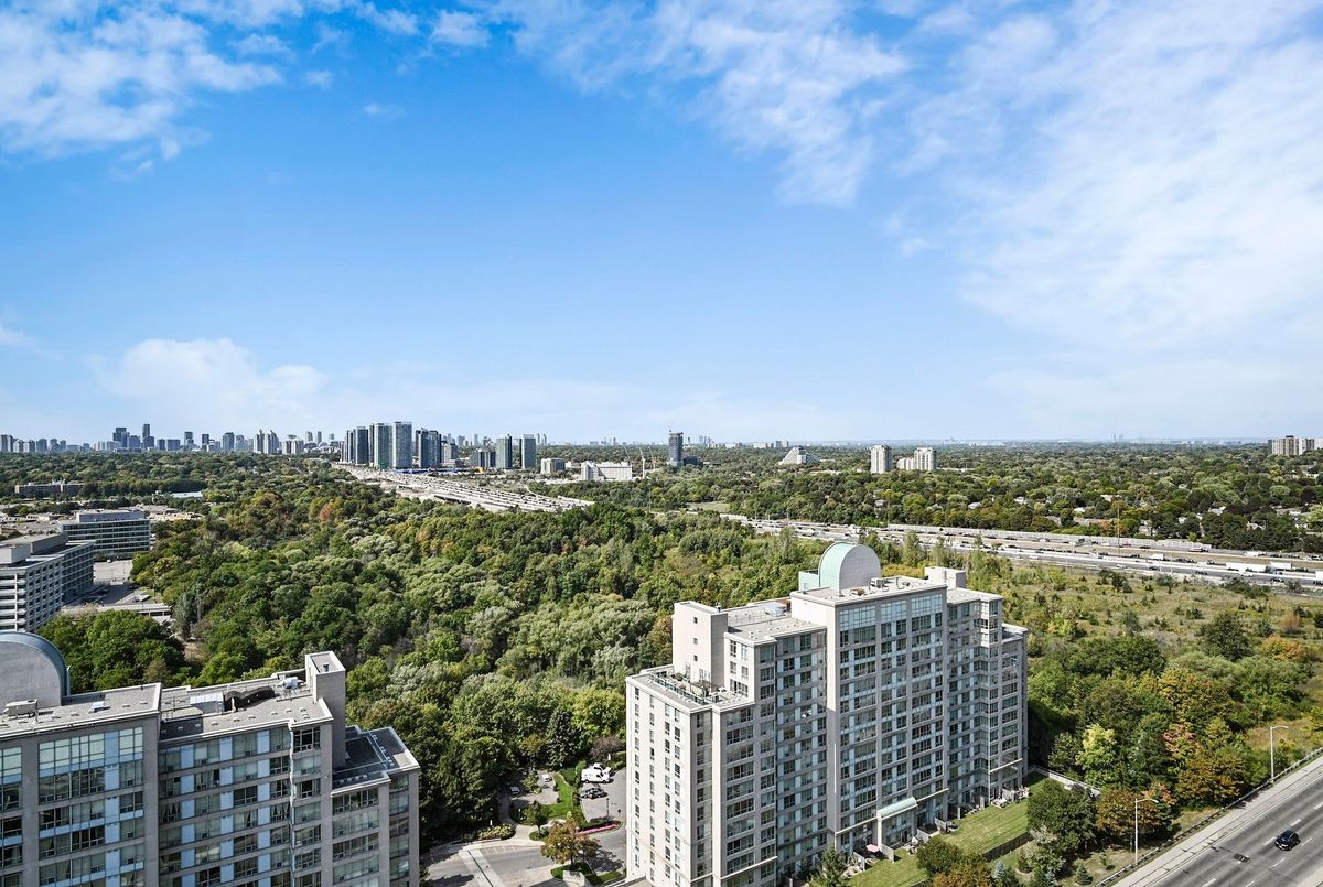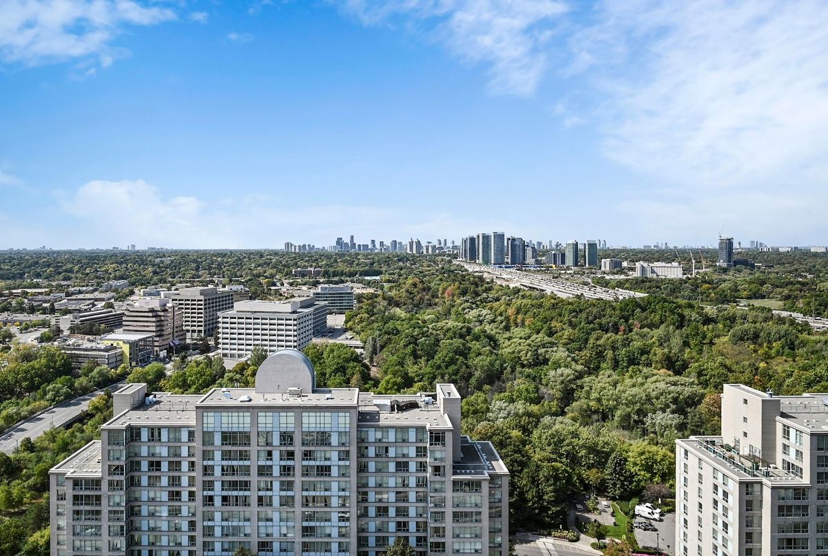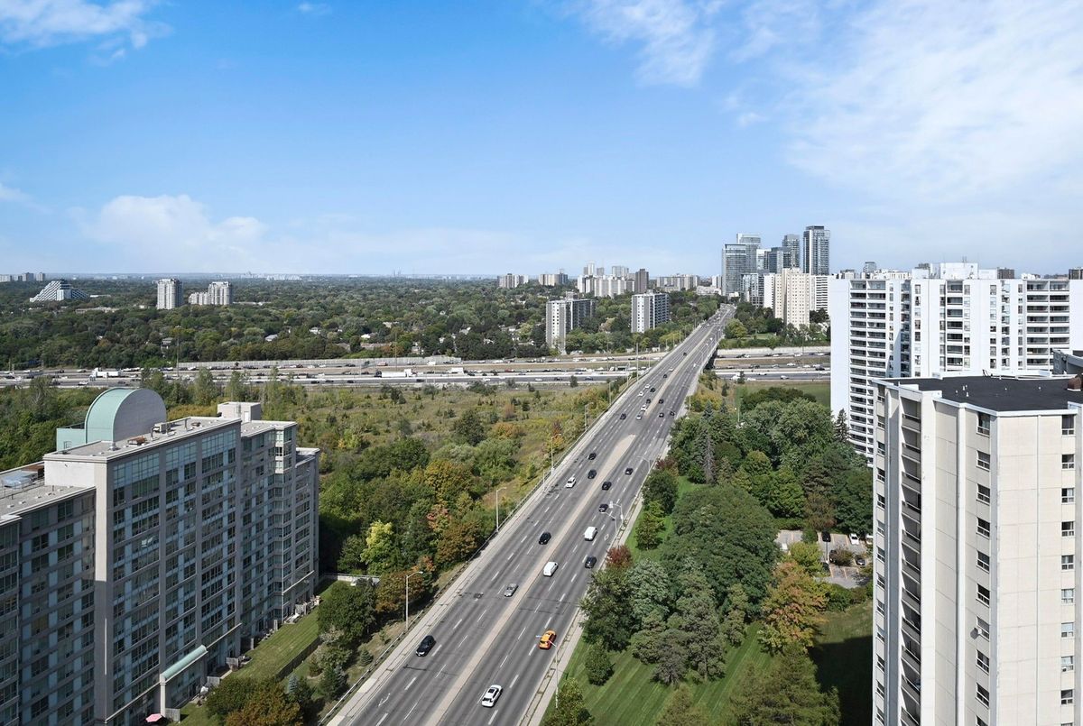 Welcome to this sun-filled 24th-floor corner unit at Argento Condos by Tridel, featuring 2 bedrooms, 2 bathrooms, a functional split-bedroom layout, and floor-to-ceiling windows with unobstructed skyline and ravine views. The modern open-concept kitchen boasts quartz countertops, stainless steel appliances, and ample cabinetry, while the primary bedroom includes a private ensuite and large closet. Additional highlights include a private balcony, 1 parking spot, locker, in-suite laundry, and access to luxury amenities such as a 24-hour concierge, fitness studio, party room, theatre, BBQ area, and guest suites. Perfectly located near the Don Ravine system, Donalda Golf Club, DVP/401, TTC, Fairview Mall, top schools, and parks this rare corner suite offers elevated city living with style and convenience.