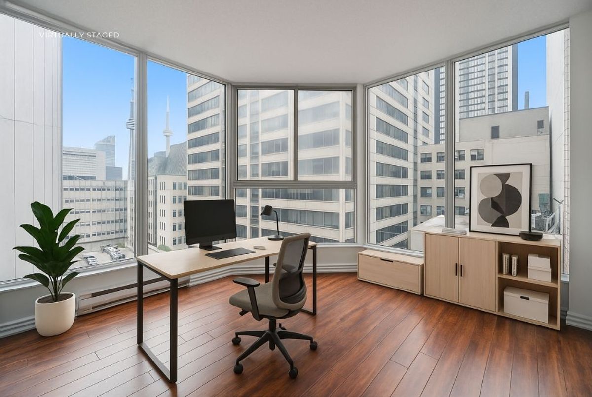 WELCOME TO CHESTNUT PARK - DOWNTOWN TORONTO LIVING AT ITS BEST! Experience urban living redefined in the highly sought-after Chestnut Park residence, perfectly positioned in the vibrant heart of downtown Toronto. This two bedroom + den/office suite offers over 1,000 square feet of thoughtfully designed living space featuring two full bathrooms, in-suite laundry, and a spacious open concept layout - ideal for professionals, families, or investors seeking the ultimate city lifestyle. Your monthly condo fee of $1,322.08 includes common elements, building insurance, heat, water, and central air conditioning - all adding to a worry-free downtown experience. Boasting a perfect Walk Score of 100, everything you could possibly need is right at your doorstep. St. Patrick Subway Station on the Yonge-University line is mere steps away, providing seamless access across the city. Walk to the Eaton Centre, Bay Street's Financial District, University of Toronto (U of T), Toronto Metropolitan University (TMU), Ontario College of Art and Design, and Toronto's world-class hospitals along University Avenue. For students, Chestnut Park offers unbeatable proximity - nestled between U of T and TMU. For culture lovers, the Art Gallery of Ontario (AGO), Chinatown, Nathan Phillips Square, and City Hall are all within easy reach. This is a rare opportunity to own in one of downtown Toronto's most connected and dynamic neighbourhoods. Live where everything happens - live at Chestnut Park! (some images contain virtual staging)