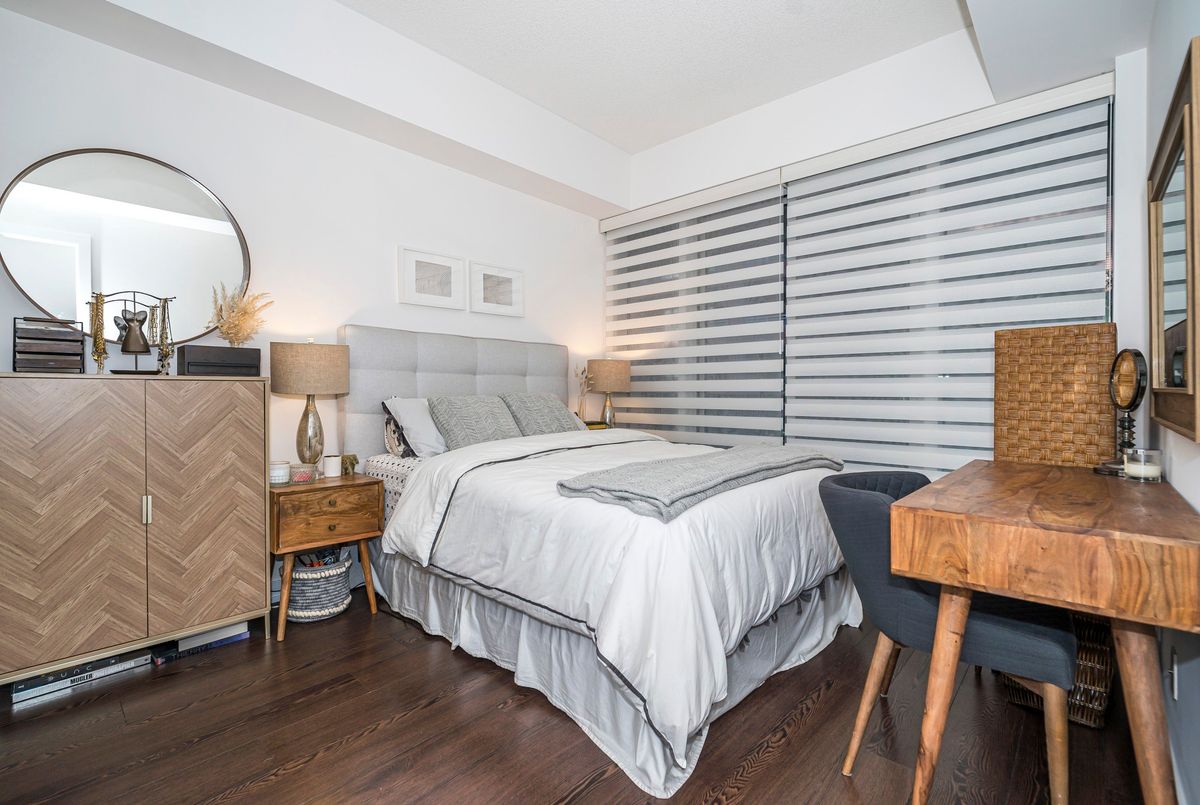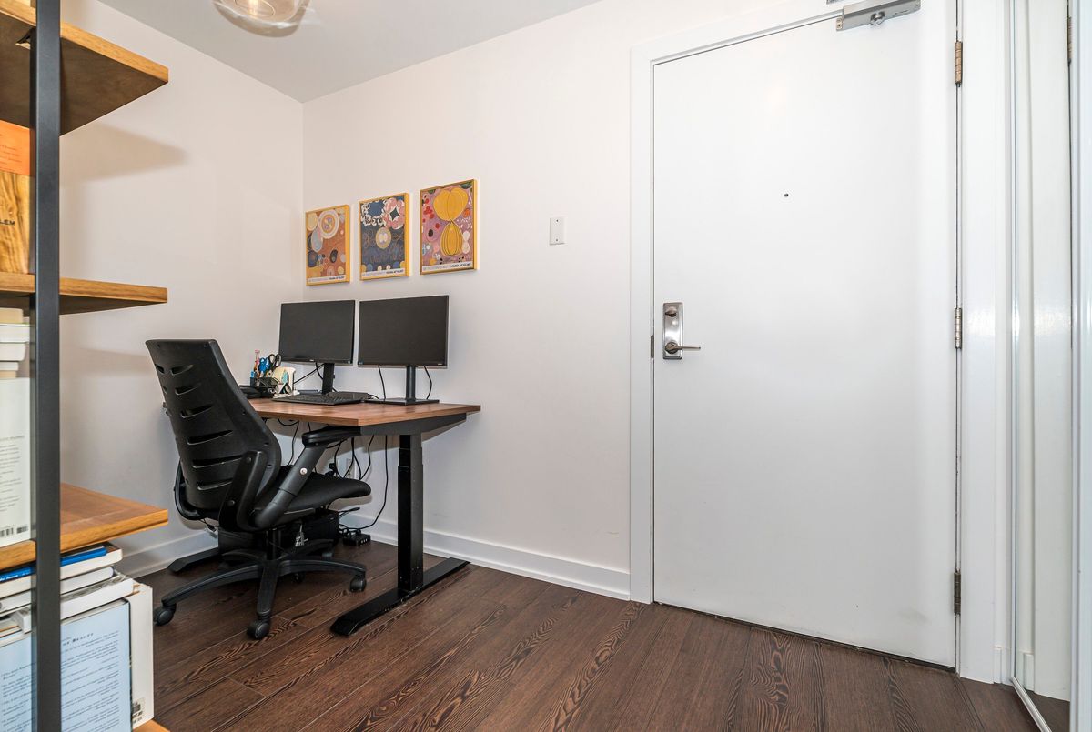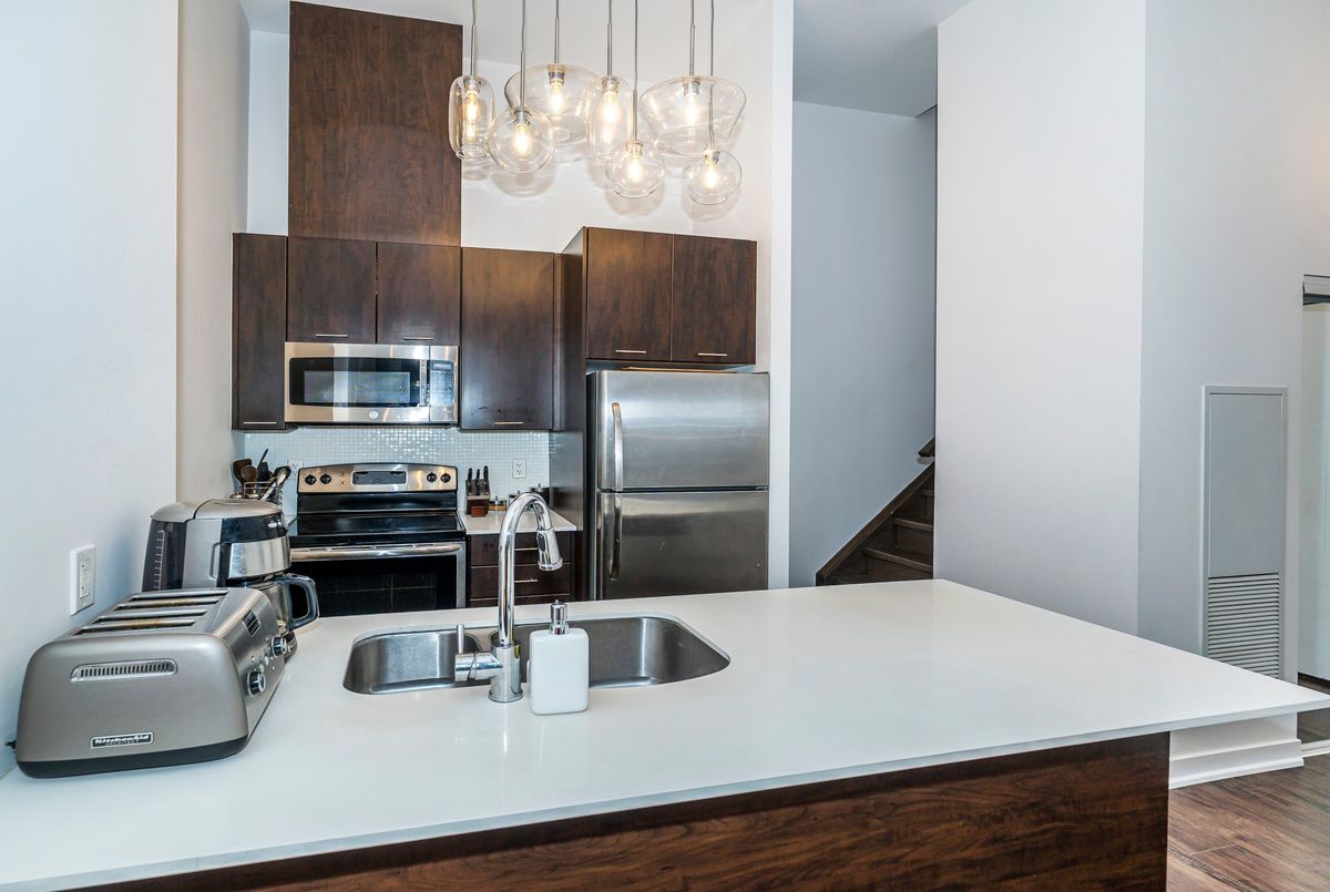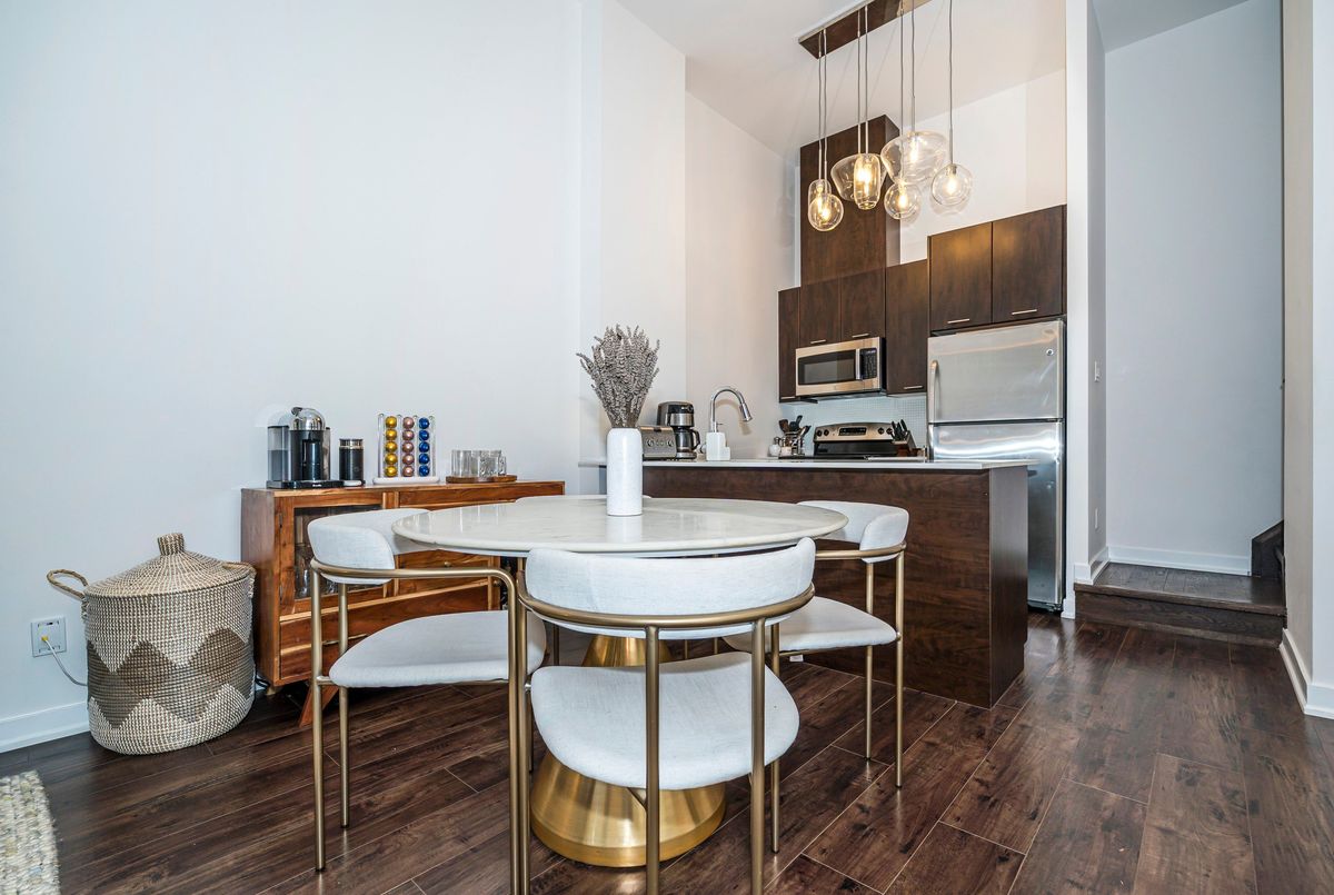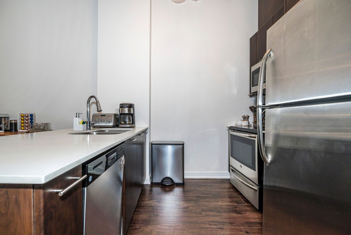 3-Bedrooms, 3 Full Bathrooms In This Rarely Offered Townhome with Soaring Ceilings! Don't miss out on this exceptional opportunity to own a beautifully maintained townhome where each bedroom enjoys its own private or semi-private bathroom offering an ideal layout for both investors and end users. This thoughtfully designed residence perfectly blends comfort, functionality, and refined style. The open-concept main level boasts high-quality laminate flooring throughout, dramatic 15-ft ceilings, and floor-to-ceiling windows that flood the home with natural light. A private patio extends the living space outdoors, creating a welcoming retreat for relaxation or entertaining. The chef inspired kitchen is beautifully appointed with a double undermount sink, quartz countertops, breakfast bar, and sleek cabinetry, making it perfect for both everyday living and hosting guests. The primary bedroom features a 4 piece ensuite, walk-in closet, and a private balcony, creating the perfect blend of comfort and privacy. A versatile den area offers an ideal space for a home office or reading nook. Every detail reflects pride of ownership, from the pristine finishes and beautiful upgraded light fixtures to the automated Hunter Douglas blinds on the main floor and custom blinds on the second level. Residents of this boutique community enjoy a wide range of amenities, including 24-hour concierge service, a fully equipped fitness centre, rooftop terrace, spacious party room, guest suites, media lounge, and visitor parking. The location is unbeatable with easy access to King West, Billy Bishop Airport, and TTC transit at your door, plus nearby parks, waterfront trails, restaurants, and entertainment. Everyday essentials are just steps away, with a Farm Boy up the street and LCBO, Loblaws, and Shoppers Drug Mart conveniently located across the road. The Rogers Centre, CN Tower, and countless downtown attractions are also just minutes from your door.