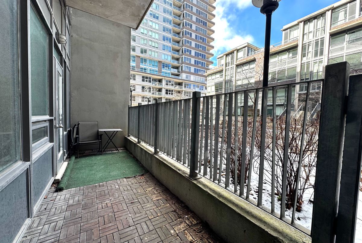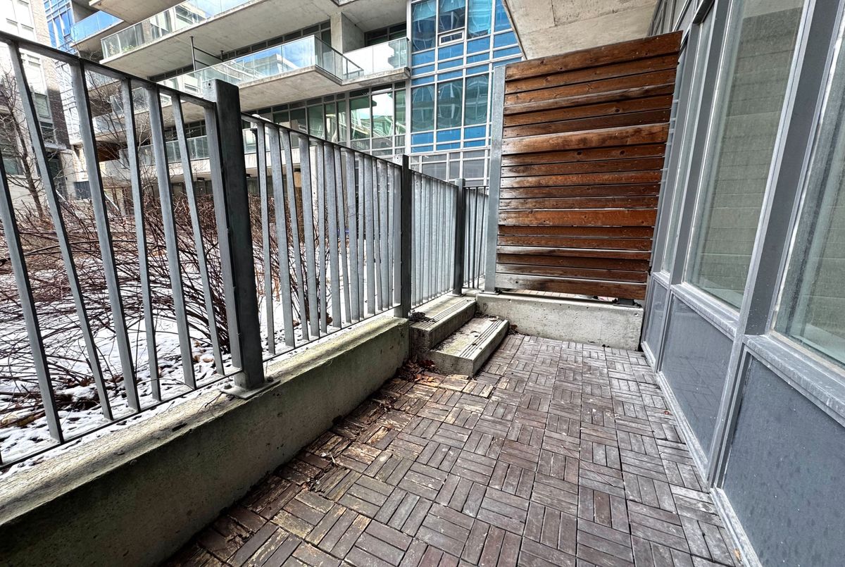 Welcome to Bliss Condos, a stylish ground level studio offering soaring ceilings and massive windows that fill the space with exceptional natural light. The layout is thoughtfully designed with absolutely no wasted space, creating a seamless flow between living, sleeping, and dining areas ideal for modern city living. The north facing balcony extends the living space outdoors and adds excellent everyday functionality for relaxing or entertaining.The modern kitchen features full size stainless steel appliances, a breakfast bar, and granite countertops, combining clean design with practical efficiency. A well appointed four piece bathroom, ensuite laundry, and the use of one locker add everyday comfort and convenience.Residents enjoy premium amenities including an indoor pool, fitness room, party and meeting room, and a 24 hour concierge, along with a rooftop deck, guest suites, and visitor parking. Perfectly situated in the heart of Liberty Village, this location is steps to Metro, Altea Active, Starbucks, LCBO, TTC and GO Transit, with King West, restaurants, grocery stores, and the waterfront all close by. A bright, efficient studio offering lifestyle, convenience, and strong urban appeal.