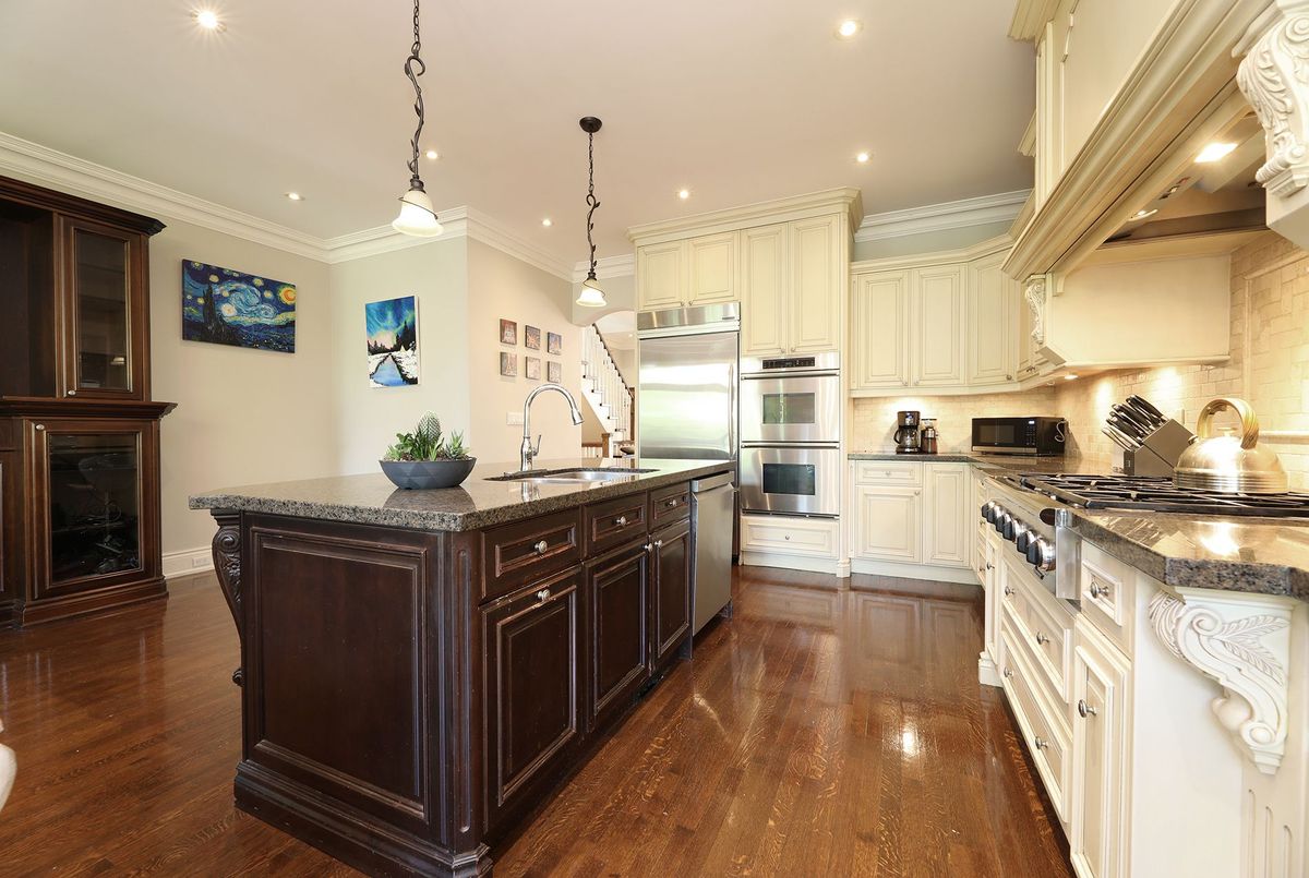 This Exceptional Custom Built Luxury Home Is Situated In The Highly Sought After Bedford Park Neighbourhood. Steps Away From Top Rated Private / Public Schools, Parks, Subway & Restaurants. Just 7 Minutes To Hwy 401 and 20 Minutes To Downtown. Featuring a Stone Front Facade / Leaded Glass Windows / Solid Core Doors / Wainscotting with Top Notch Craftsmanship and True Crown Mouldings. There Are Large Principal Rooms With 9 and 10 Foot Ceilings On All 3 levels. The spa-like Ensuite Has Multiple Jet Shower Sprays And A Jacuzzi Tub. Hardwood Floors and pot lights throughout. 3 Skylights Over the Stairway & Bathrooms. The Breakfast Area Features A Walk Out To Deck And A Custom Built Quality Pantry, The Kitchen Features An Oversized Centre Island With Double Sink, The Family Room Has A Bay Window, Built In TV & One Switch Gas Fireplace. The Private Fenced Yard Has A Separate Gate with ROW over the property to the east (see survey). The Upper Deck Has A Gas BBQ Line. Built In Garage With Direct Access To The Basement. Room Dimensions May Vary Slightly From Builder Floor Plans. This Is A Must See House.