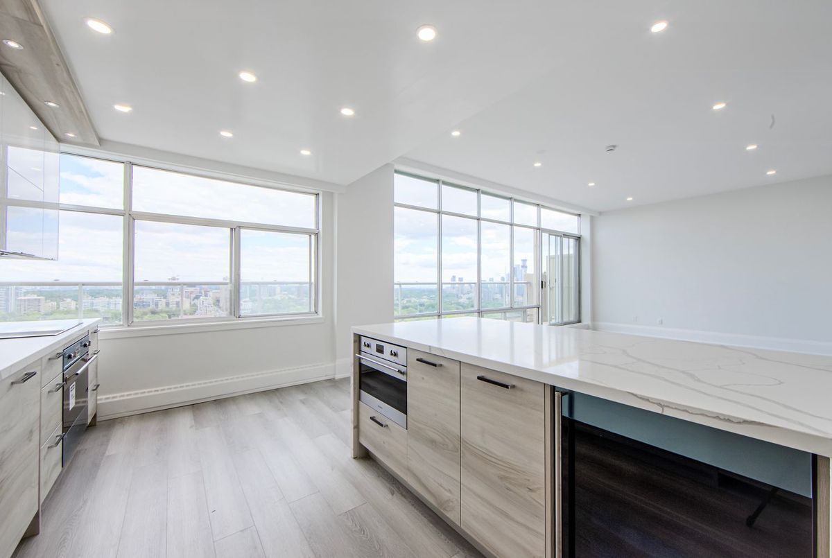 **1 Month Free Rent Promo** Welcome to 400 Walmer Rd A luxurious, newly renovated condo in the heart of Old Forest Hill. This spacious 1-bedroom + den, 2-bath suite offers approx. 1,300 sq ft of open-concept living with modern finishes throughout. Features include floor-to-ceiling windows, a west-facing private balcony with stunning sunset views, and sleek contemporary fixtures. The versatile den is perfect for a home office or guest room. Enjoy upscale living in a rent-controlled building with exceptional amenities: fitness centre, indoor pool, sauna, party/meeting room, sundecks, BBQ areas, and beautifully landscaped grounds. Steps to public transit, shopping, dining, and all that this coveted neighbourhood has to offer.