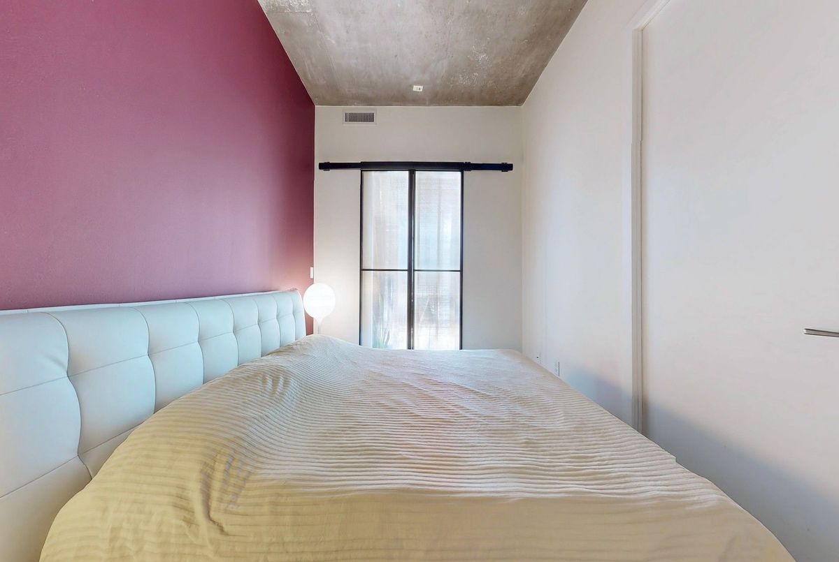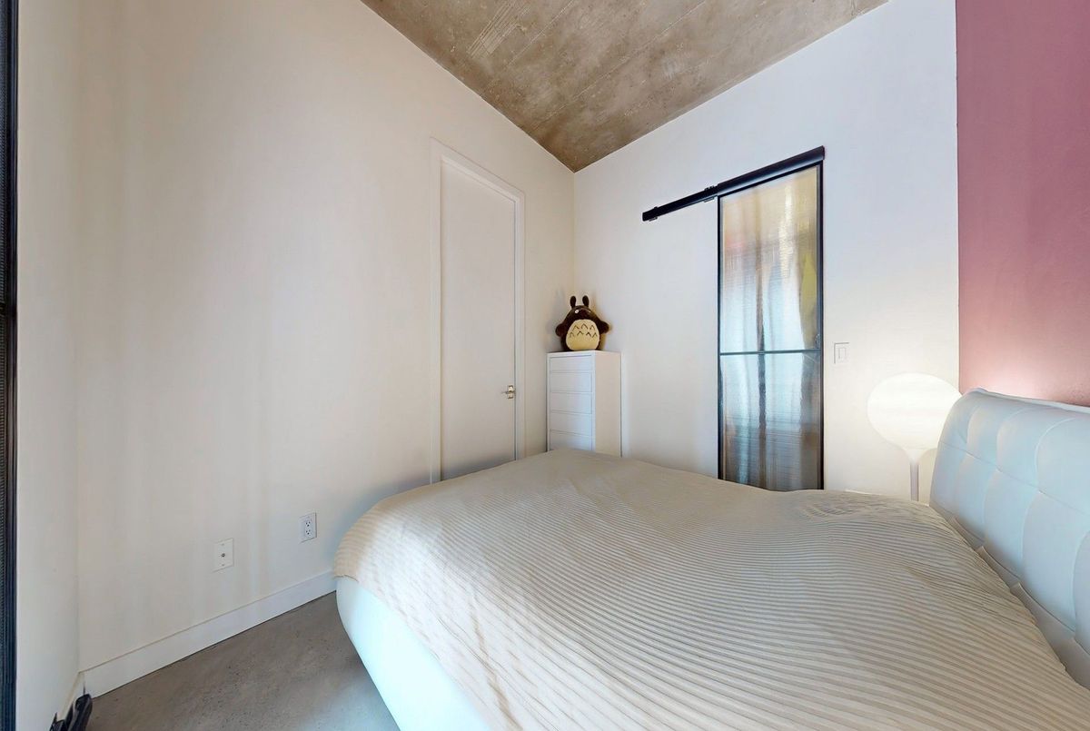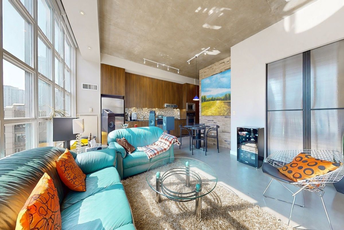 Amazing Loft Style Unit!! Look no further than this spacious 1+1 bedroom unit in the Quad Lofts with full 10.5ft Ceiling at 792 Sqft (MPAC), bigger than ALOT of 2BR units. Bright east facing corner unit and Unobstructed by other Building allowing Natural Sunlight throughout the Day. Tucked away in a private, unique low rise boutique building and with easy Access to Queen king and Spadina streetcars yet! Steps to all the amazing Amenities & Restaurants ! Bright living space with polished concrete floors, floor-to-ceiling windows. Enjoy a sleek, open-concept kitchen with Ample of storage space!! The large den provides a great multi-purpose space - Office, Guest Room or even a Media Room. Spacious walk in closet, custom build vanity with banjo countertop. Building amenities include concierge, gym space, party/meeting room, and bike storage. Pet-friendly building with St. Andrew's Dog Park across the street. Short walk to the grocery store. Excellent walkability, transit and bike scores. Perfect opportunity for a Downtown Professional who wants a GOOD size condo with Parking and Locker! One of the Best Complex in the Area!!