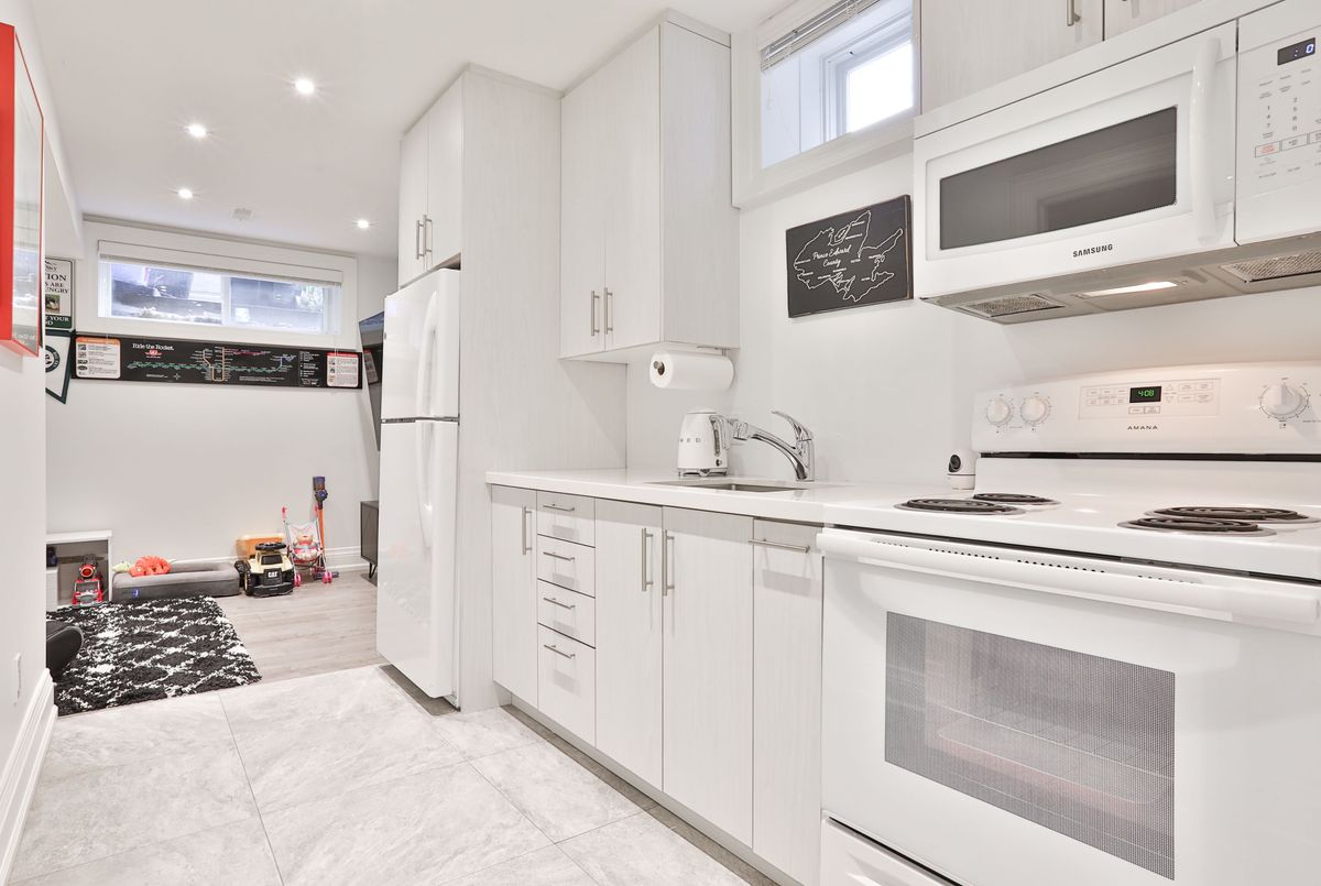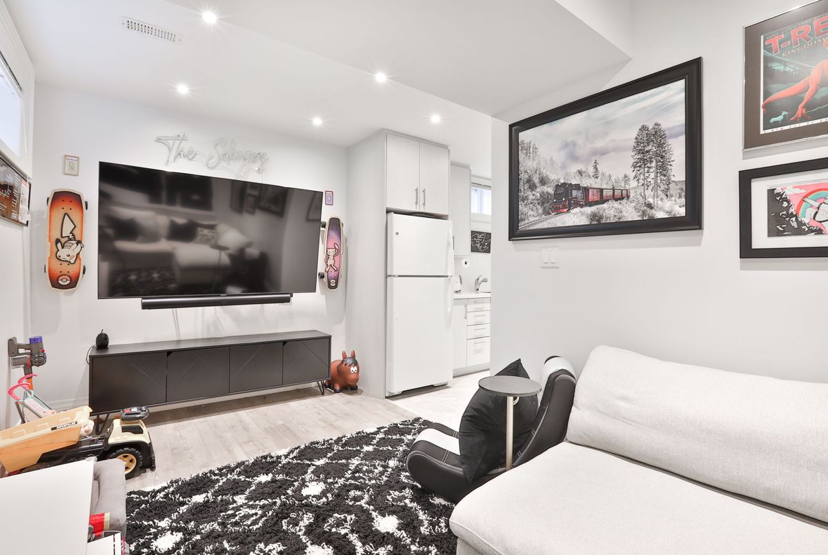 Step inside 665 Millwood Road; an exceptional, fully renovated semi where style, function & an unbeatable Davisville Village location come together seamlessly. A highly sought-after, family-friendly neighbourhood with excellent schools, parks, recreation centres & just minutes to the shops, restaurants & everyday amenities of Bayview Ave. This 3+1 bed, 4 bath home offers incomparable convenience & lifestyle appeal! A charming covered front porch leads to a bright open concept main floor with a generous entryway, hall closet & powder room. The spacious living room showcases a striking panelled feature wall with gas fireplace & large windows overlooking the front yard, flowing seamlessly into a separate dining area - perfect for entertaining! The heart of the home is the chef's kitchen with large centre island & breakfast bar, quartz countertops, & built-in stainless steel appliances. Open to a main floor family room with a built-in desk & double-door walk-out to backyard. The 2nd floor offers a bright landing with skylight, linen closet & separate laundry closet. The large primary suite accommodates a king-sized bed & features a walk-in closet & spa-inspired 4pc ensuite with double sinks and built-in storage. Two additional bedrooms with closets & 4pc family bathroom, semi-ensuite to the second bedroom, complete the level. The fully finished lower level with 8' ceilings offers excellent versatility as a family space or potential one-bedroom apartment. Featuring an additional kitchen, rec room, bedroom with queen-sized Murphy bed, 3pc bathroom & sep laundry room with a laundry sink. The fully fenced backyard features a deck with gas line for BBQ, low-maintenance turf lawn, stone patio & pergola. The detached single-car garage, with direct access to the backyard, offers excellent storage with custom shelving & workshop bench. Additional highlights include built-in speakers, Ring doorbell & exterior camera system. A truly turnkey home in an unmatched location!