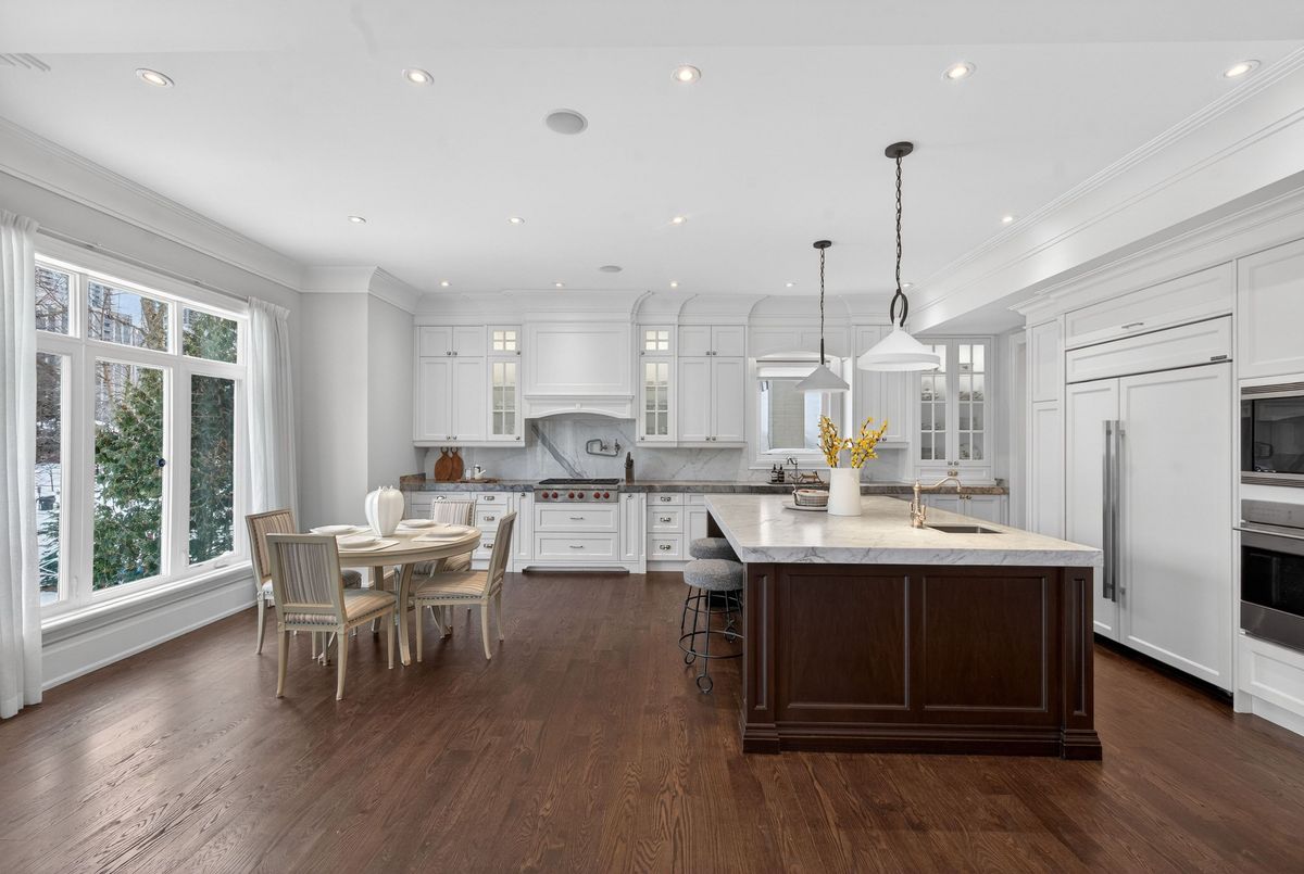 Sophisticated Custom Home with Timeless Design and Over 6,070 Sq.Ft of Classic Elegance of Living Space. Meticulously Maintained on a Southern Prime Lot (50' x 133')! Unbeatable Location > 2 Minutes away from North York City Centre (Subway, Ttc, Loblaws, Restaurants, Cinema, Shops), Earl Haig S.S & Countless Other Amenities! Beautiful Country View of Lee-Lifeson Art Park from Kitchen, Family Rm& Master Bedrm!! Exquisitely Built &Tastefully Designed with a Functional Layout, Offering a Seamless Flow Ideal for Both Everyday Living & Entertaining. Exceptional Finishes Throughout, Including Extensive Use of Hardwood & Marble Flooring, Impressive Architectural Detailing with Coffered Soaring Ceilings Heights: >> Main Flr:10', 2nd Flr:9', Master:10', Foyer:14.5', Basement Rec Rm:11.5', Bsmnt Bdrms: 10'). Full Panelled Walls(Main Flr&Hallway), Elegant Full Oak Library with Built-In Bookcase. Luxury Mouldings, High End Millwork, and Designer's Wallpaper Accents. Quality Custom Cabinetry& Vanities Enhance the Homes Refined Ambiance. Huge Sun-filled Family Room, Breakfast Area & The Chef-Inspired Kitchen which Features Top-of-the-Line Appliances, Butler's Pantry& Servery, Over Sized Leathered Statuario Calacatta Slab On Countertop of Island, and Marble for other Countertops. Breathtaking Primary Bedrm with a Coffered Cling, Gas Fireplace, His & Hers Walk-In Closets& a Lavish 8-Pc Ensuite Heated Flr. 3Additional Family-Sized Bedrms with Own Ensuits and W/I Closets! Led & Halogen Pot Lights Throughout. The Professionally Finished Walk-Out Basement Includes Radiant Heated Flr in Recreation Rm with A Fantastic Rich Wet Bar, Gas Fireplace, Two Bedrms with their Own Ensuites & Full 2nd Laundry. Cedar Roof &Copper Baywindow & Eavestrough. Custom Marble Floor Foyer with A Centre Medallion, Mahogany Main Door& 3 Guest Closet. Limestone Facade with Copper Accent on Bay Window, Bricks on Side and Back. No Sidewalk in Front