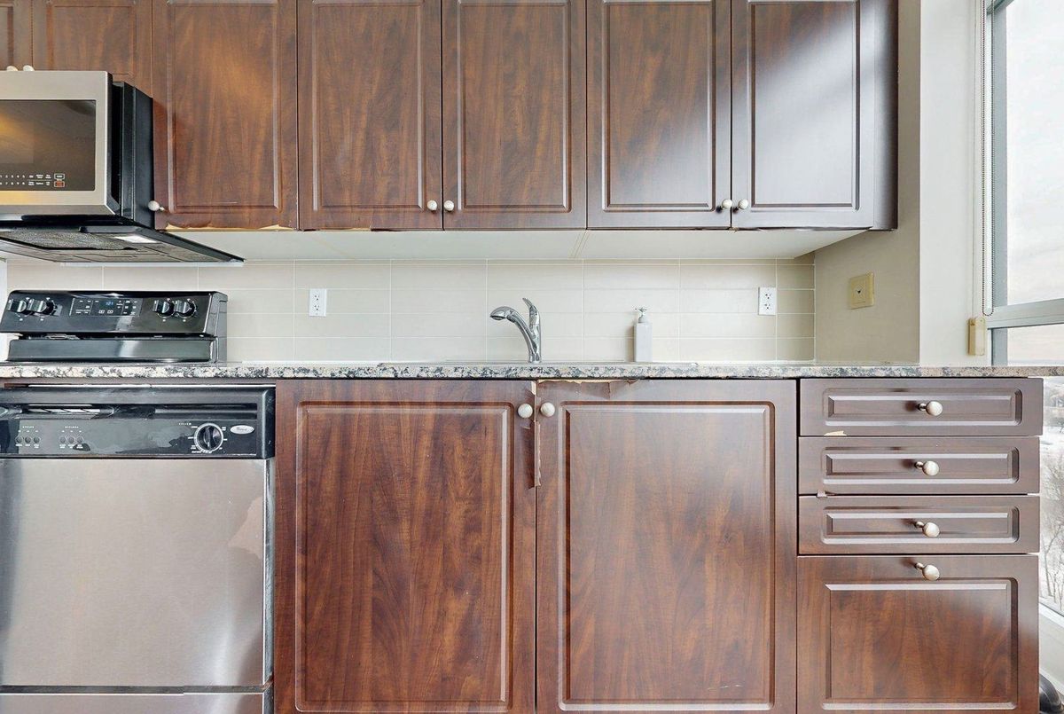 Corner Unit w/ Wrap Around Windows Overlooking Panoramic Waterfront & City Views! Pet Friendly Building! Highly Functional Split Layout 2 Bedroom 2 Bathroom Condo Featuring Over 827 Sq Ft of Interior Living Space & 34 Sq Ft Balcony. Large Open Concept Living / Dining/ Kitchen With Centre Island. Stainless Steel Appliances, Kitchen Backsplash, Granite Countertops, Laminate Flooring Throughout. Close To Public Transit, Parks, Grocery Shopping, Entertainment, Highway & More! Super Convenient, Ready To Move In Condition