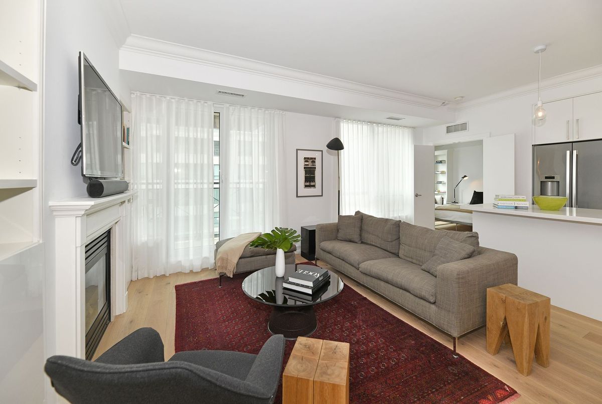 Exquisitely renovated with luxurious detailing in the prestigious Thornwood building in Rosedale. Live in this stunning and bright 1105 sqft 2-bedroom, south-facing condo. Renovated kitchen with built-in stainless steel appliances, large centre island with Quartz countertops, open concept living and dining room with new white oak hardwood floors, gas fireplace, and a walkout to south-facing balcony. Principal bedroom with a walk-through closet leading to a brand new 5-piece en-suite. Live close to Yonge Street shops, restaurants, parks, and subway. March 1st occupancy