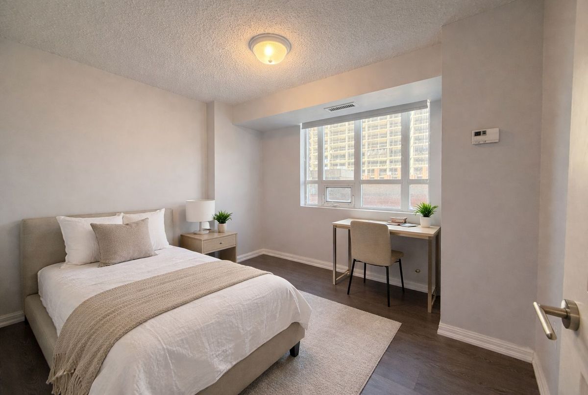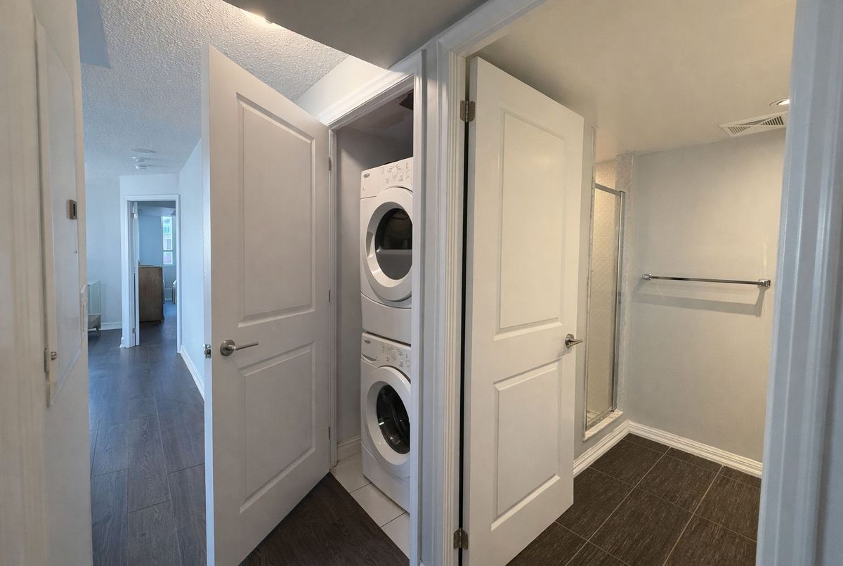 Welcome to The Tower at King West by Plaza Corp, ideally situated in the heart of Liberty Village. This expansive 2-bedroom plus den suite offers over 850 sq ft of intelligently planned living space, featuring a split-bedroom design that enhances privacy. Take in sweeping north-east city views from this sun-filled corner unit, highlighted by floor-to-ceiling windows with laminate flooring throughout and a balcony. Enjoy unbeatable convenience with easy access to King St right outside your door. Steps away from daily essentials and vibrant local amenities, including TTC transit, grocery stores, fitness studios, restaurants, cafés, banks, and more!
