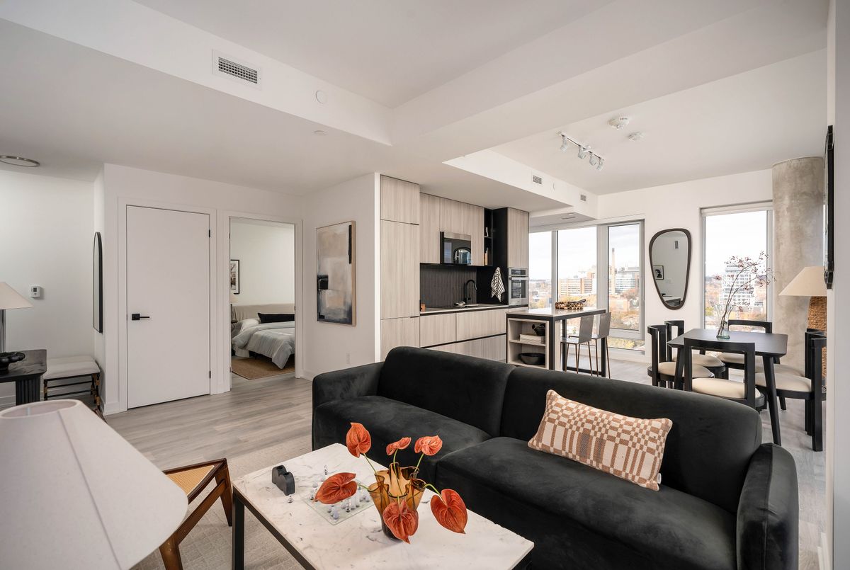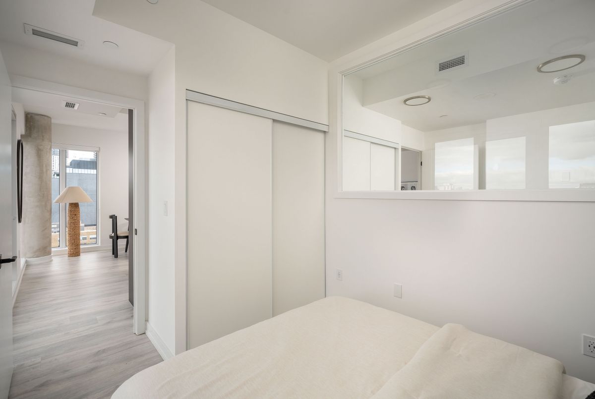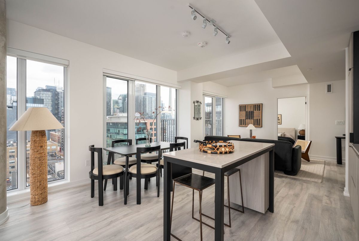 Incredible 3-bedroom corner lower penthouse at Rush Condos with tandem parking for two cars, an oversized private locker, and wraparound downtown views. This 939 sq ft suite offers a smart split-bedroom layout with three real bedrooms, two full bathrooms, and an open-concept living/dining area that feels bright and airy. Unobstructed north, south, and east exposures plus floor-to-ceiling windows flood the space with natural light and showcase the city from every angle. Enjoy a private balcony and an additional Juliette balcony for morning coffee or evening drinks with the skyline. Inside, upgraded finishes include wide-plank vinyl flooring, quartz countertops, and sleek stainless steel appliances. In the heart of the Entertainment District, you're steps to Waterworks Food Hall, Ace Hotel, Queen West and King West restaurants, bars, cafés, shops, the YMCA, gyms, and local parks. From an investment perspective, the future Ontario Line station at Queen & Spadina is a short walk away, adding strong long-term upside to an already prime downtown address.