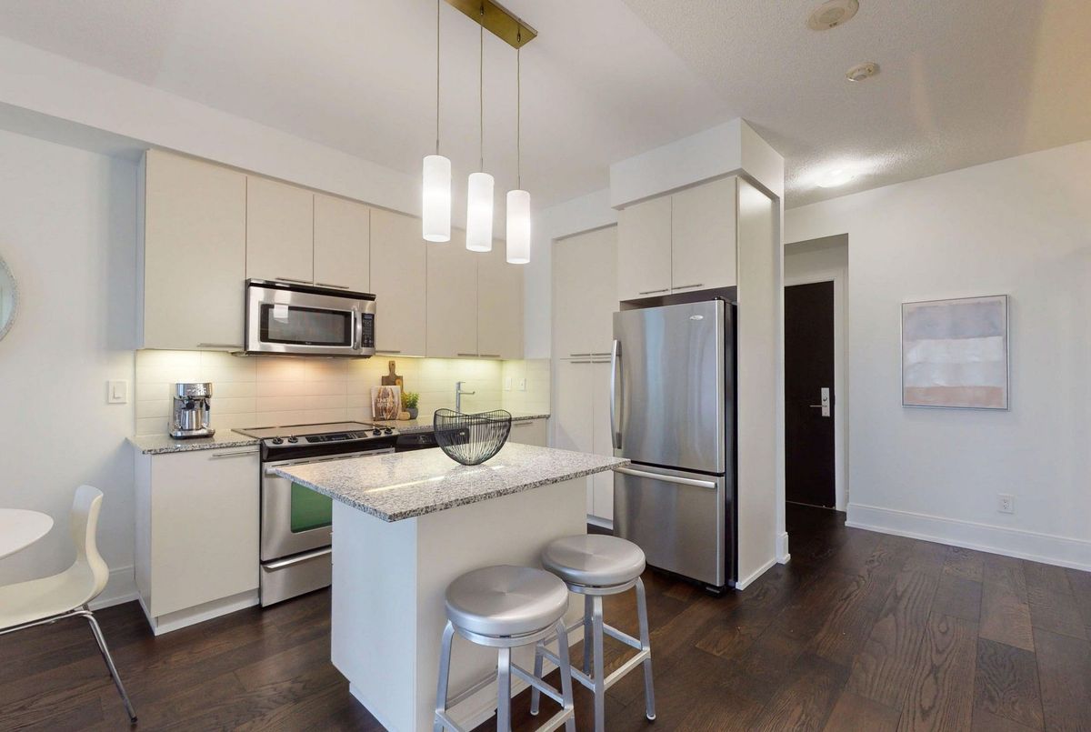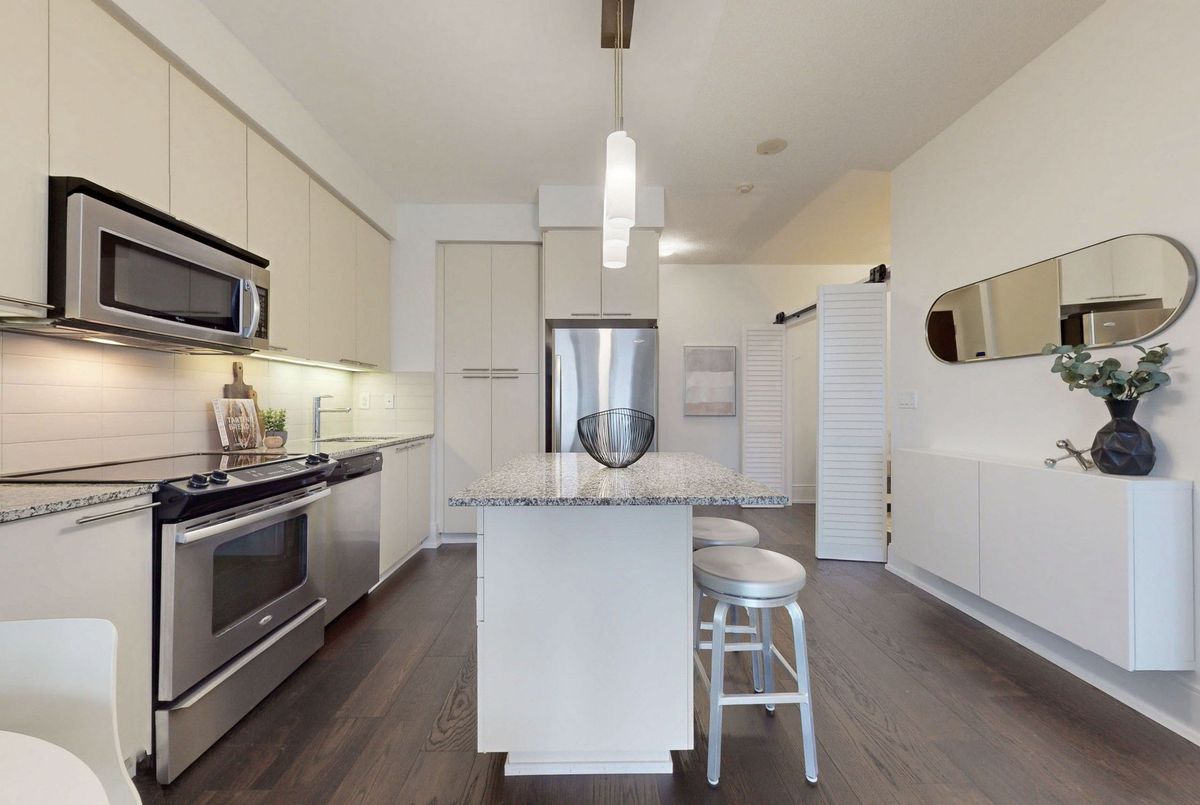Stunning 1 Bedroom Plus Den 1 Bathroom Suite At Republic One Condos At Yonge & Eglinton By Tridel. Fantastic Functional Layout. Almost 700 Sqft (Per MPAC). No Wasted Space! High End Engineered Hardwood Floors Throughout! Open Concept Kitchen With Stainless Steel Appliances, Centre Island With Seating. Combined Living & Dining Room. Spacious Bedroom With Floor To Ceiling Windows. Den With Folding Doors Can Be a Second Bedroom Or Office. Spectacular West Facing Views From Your Balcony - Don't Stare Directly Into Another Building When You Can Have Sunsets Like These! Outstanding Amenities! Premium Location - Steps To Shops, Restaurants, TTC, Schools & Everything Else Yonge & Eglinton Has To Offer!