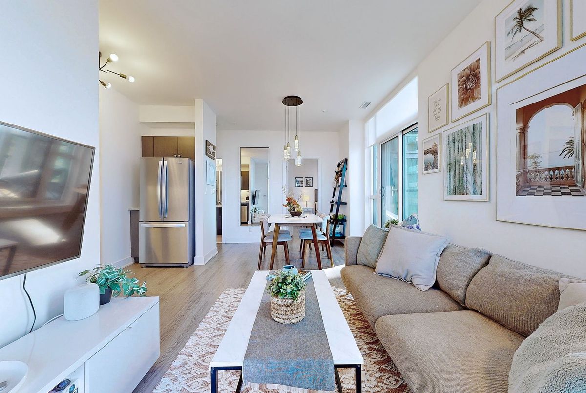 Truly a must see! unique bright open concept 1 bedroom southwest facing condo with 2 balconies! Impeccably utilized 588sq.ft of interior living space with an additional 155sq.ft balcony. Updated modern kitchen with quartz counter-top, ample storage space, backsplash, undermount lighting and full sized stainless steel appliances. Large primary bedroom with balcony entrance and walk-in closet. Steps to TTC Subway Station and all that St. Clair West has to offer right at your doorstep.
