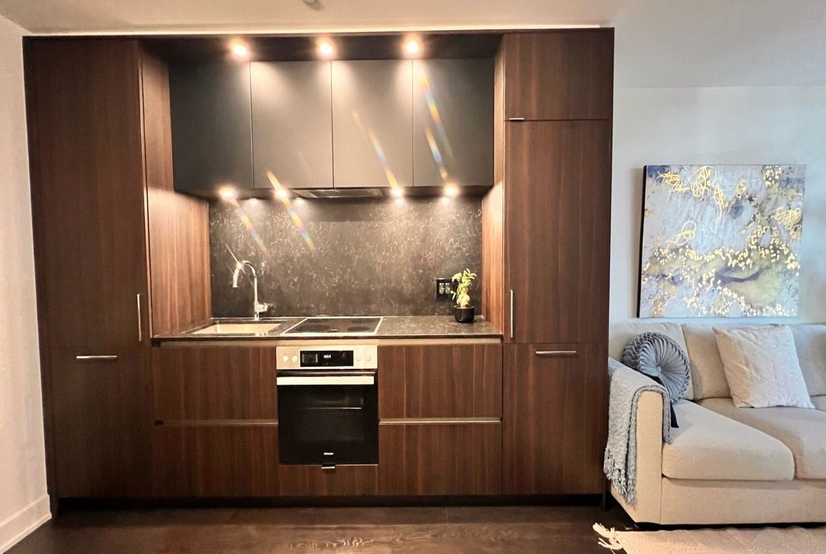 Experience unparalleled luxury in the heart of Toronto's Entertainment District! This sophisticated 1-bedroom plus 1 den, 2-bathroom suite in the prestigious NOBU Residences offers a perfect blend of modern design and world-class amenities. The Suite: Functional Layout: A spacious primary bedroom accommodating a king-size bed with a private 3-piece ensuite bathroom, and a versatile den, ideal for a quiet home office or a second bedroom Designer Finishes: 9-foot ceilings, floor-to-ceiling windows that flood the space with natural light Chef's Kitchen: Sleek cabinetry, premium built-in Miele appliances (fridge, cooktop w. hood fan, oven, dishwasher, microwave), stone countertops Two Full Baths: Rare for a one-bedroom floor plan In-Suite Laundry: stacked washer and dryer for your convenience. The Building (NOBU Residences): Live above Canada's NOBU Restaurant and enjoy over 20,000 sq. ft. of elite amenities across two floors: Wellness: Fitness centre, yoga/spin studio, hot tub, sauna, cold plunge, massage rooms Entertainment: Party rooms w. gourmet kitchen, private screening room, games room, and an outdoor Zen Garden with BBQ areas Social: Sophisticated glass-atrium lounge and a private dining room with a chef's tableThe Location: With a 100/100 Transit/Walk Score, steps from the PATH, TTC, St. Andrew Subway, the Financial District and Toronto's Harbourfront TIFF Lightbox, Roy Thomson Hall, Rogers Centre, CN Tower, King West's best dining. Available May 1st. *For Additional Property Details Click The Brochure Icon Below*