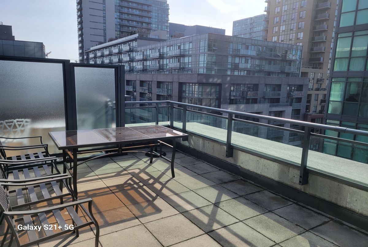 Welcome to the iconic Bohemian Embassy Lofts, where contemporary design meets urban lifestyle in the vibrant heart of Queen West. This spacious fully renovated approx. 770sqft. 1Bedroom + Parking and locker, 2-Storey loft offers an airy open-concept layout with new laminate floors throughout. The main floor features a fully renovated kitchen with brand new appliances, living/dining area with a walk-out to a generous private terrace about 250sf is perfect for entertaining or unwinding. Upstairs, the sunlit primary suite boasts a double closet, 4-piece ensuite, and an open city views. Just steps to Queen Wests best, with King West, the Waterfront, Liberty Village, Ossington, and Roncesvalles all within walking distance.