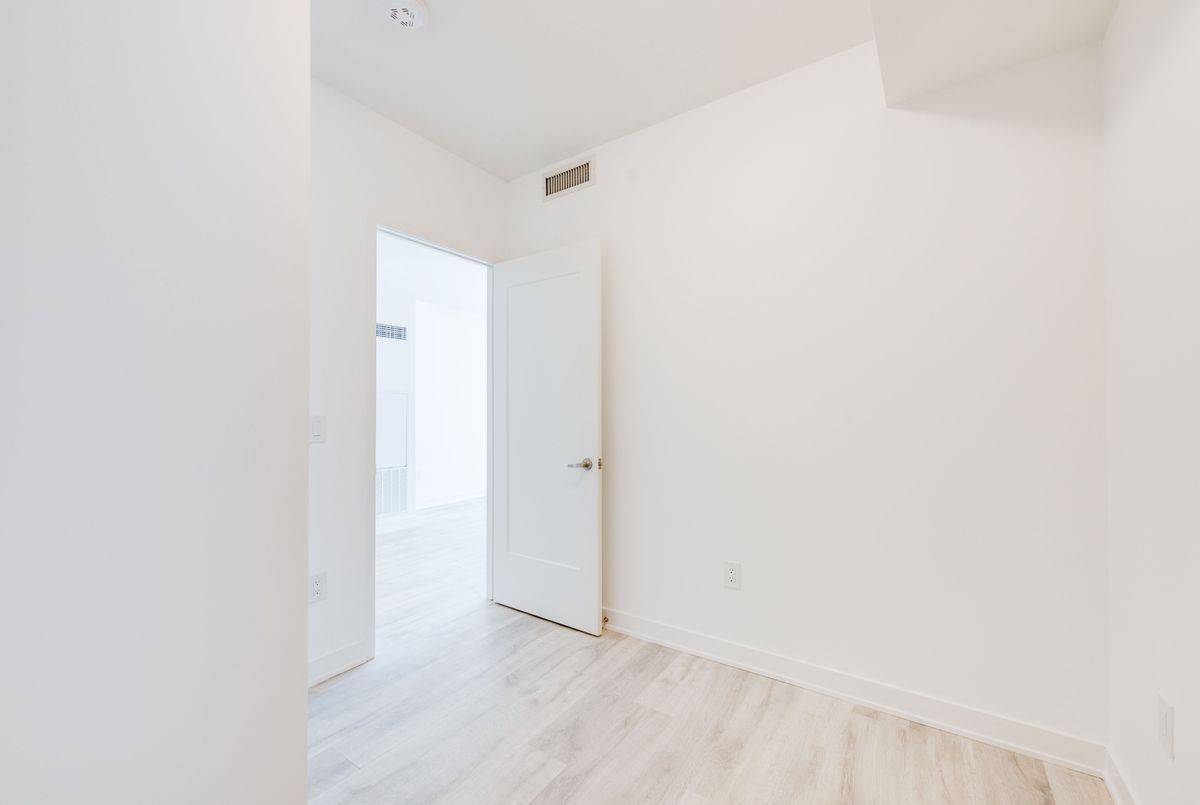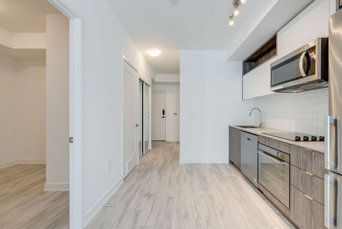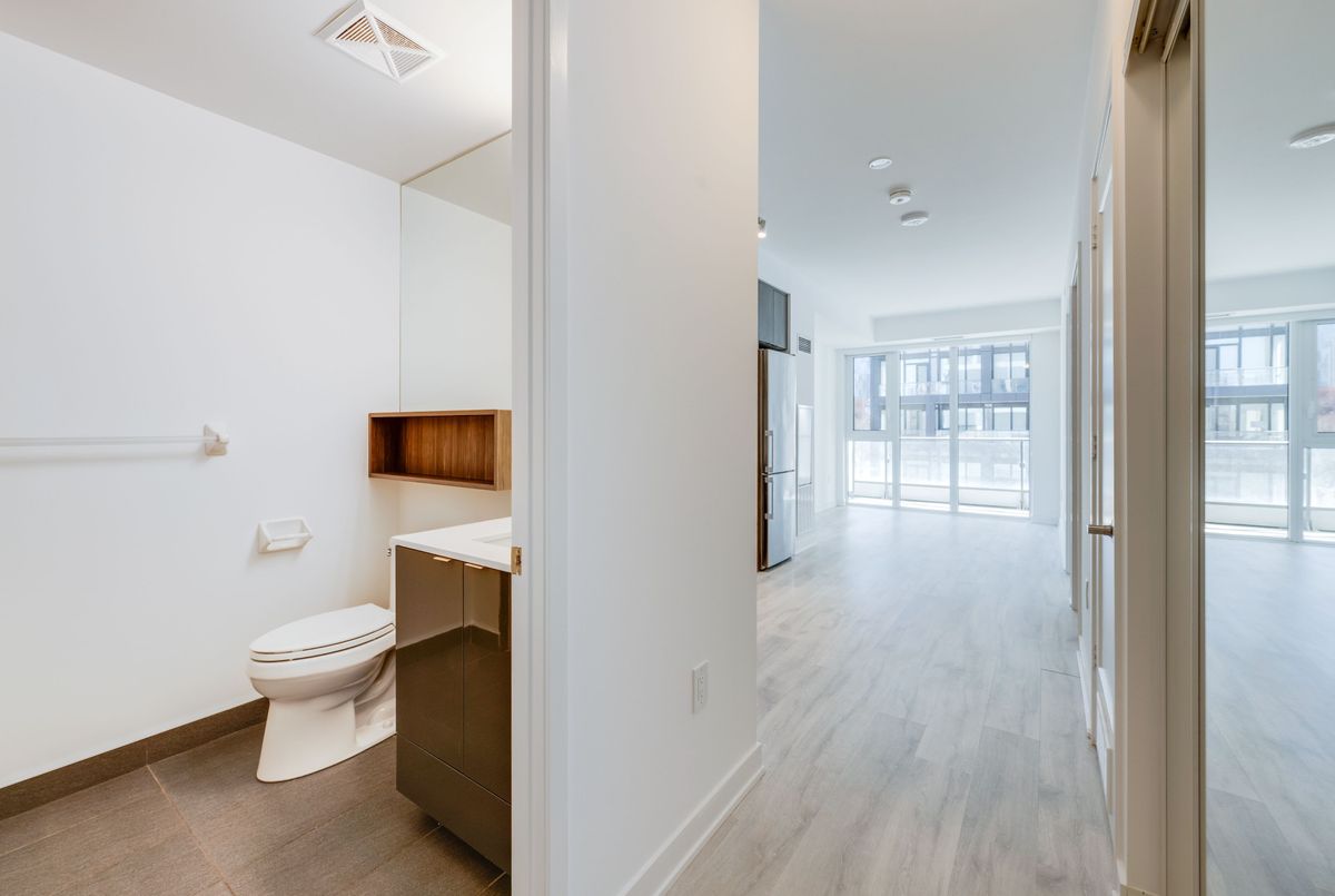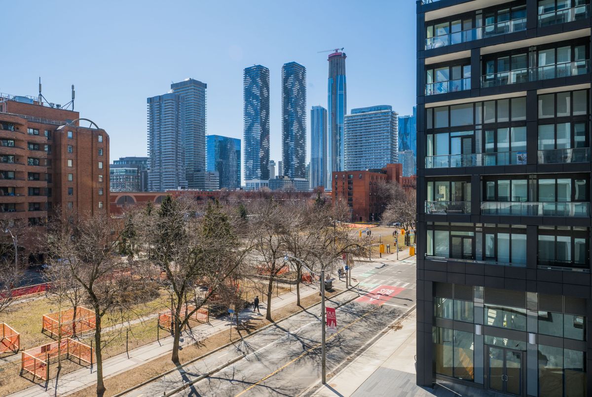 This fully functional 1+Den 1 Bath layout is one of the rare ones that actually delivers. No wasted space, no awkward corners, just a well thought out floor plan that feels larger than expected thanks to 9 ft ceilings and floor to ceiling west facing windows that flood the space with natural light.The standout here is the den. Not an afterthought, but a true separate room with a proper door. Easily works as a second bedroom, home office, or nursery depending on your needs.The kitchen is open to the living area, creating a seamless space for everyday living and entertaining. Add a counter height table and you instantly gain more prep space and a perfect spot to host or enjoy meals with friends.The living room is genuinely usable, no odd angles or tight corners, just clean space that comfortably fits a full size couch, coffee table, and a complete TV and entertainment setup. It opens to your west facing balcony, where you also catch views toward David Crombie Park, giving you a rare sense of openness in the city. The primary bedroom is spacious and practical, with generous closet space. Location is exactly where you want to be. Steps to St. Lawrence Market, the Distillery District, and the waterfront. Quick access to the Financial District, transit, and the DVP makes getting around the city effortless.A rare layout that actually adapts to your life, not the other way around. Freshly painted throughout and professionally cleaned.