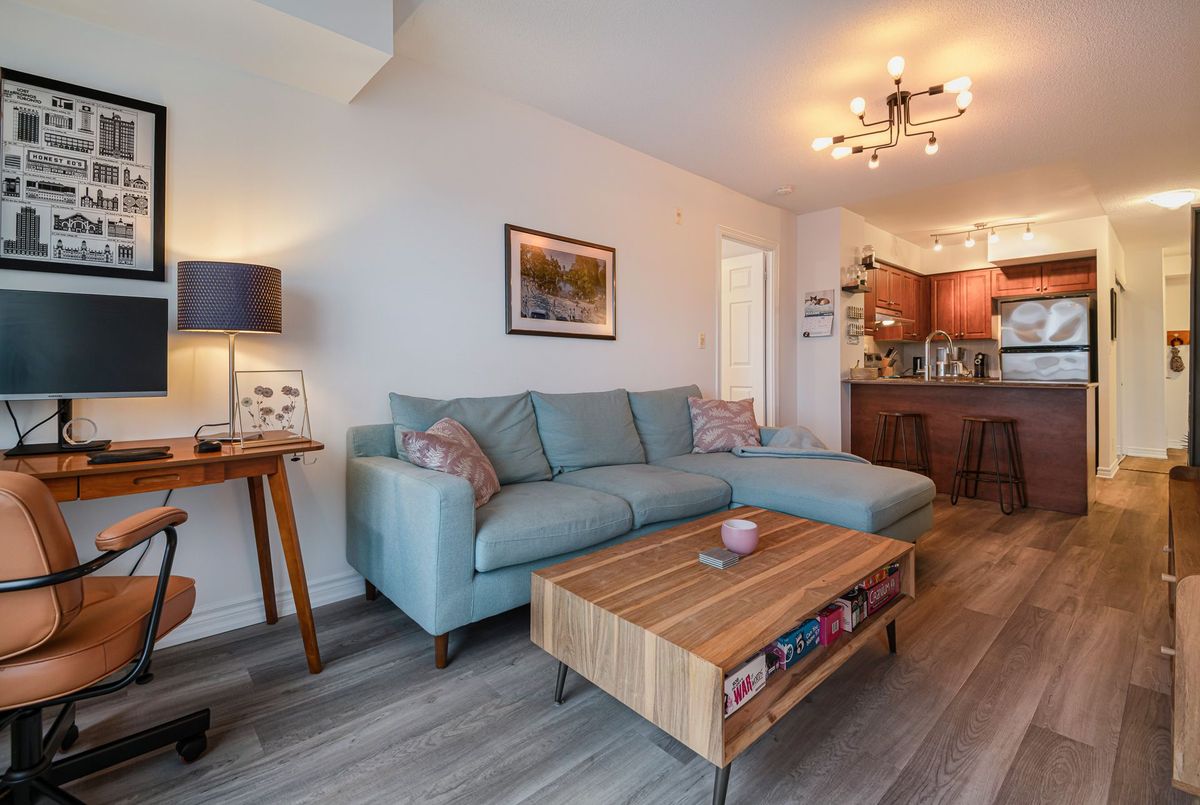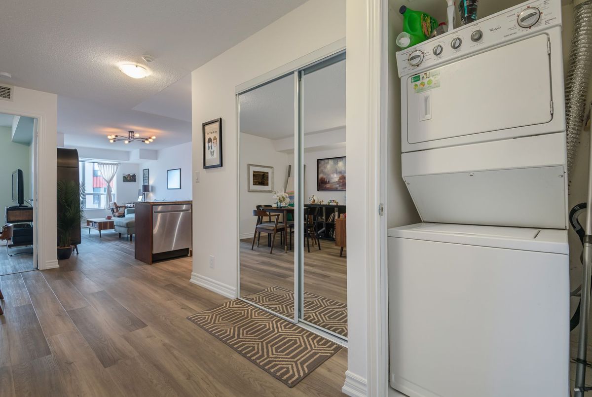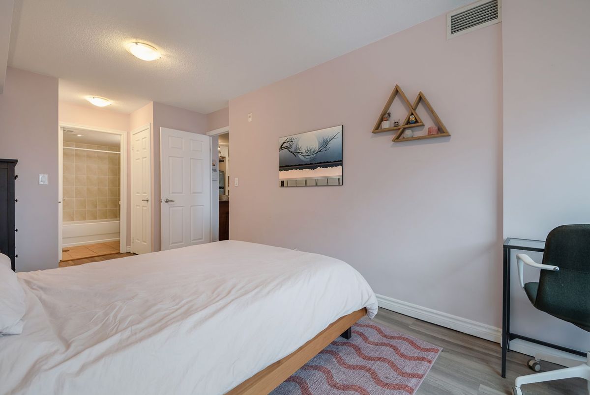 Bright and spacious 2+1 bed, 2 bath home in the heart of Toronto. This 959 sq. ft. home features split bedroom layout design, spacious den, and breathtaking views of the city skyline. Open concept living and dining room with walk out to balcony. Kitchen with breakfast bar and stainless steel appliances. Spacious primary bedroom with 5 piece ensuite bathroom and double closets. Second bedroom with mirrored closet and sliding doors to balcony. Excellent building amenities: gym, sauna, rooftop terrace with BBQs, etc. Easy access to TTC, Don Valley Parkway, and Gardiner Expressway. Conveniently located just steps to Food Basics, library, community centre, parks, restaurants, shops, schools, and so much more!