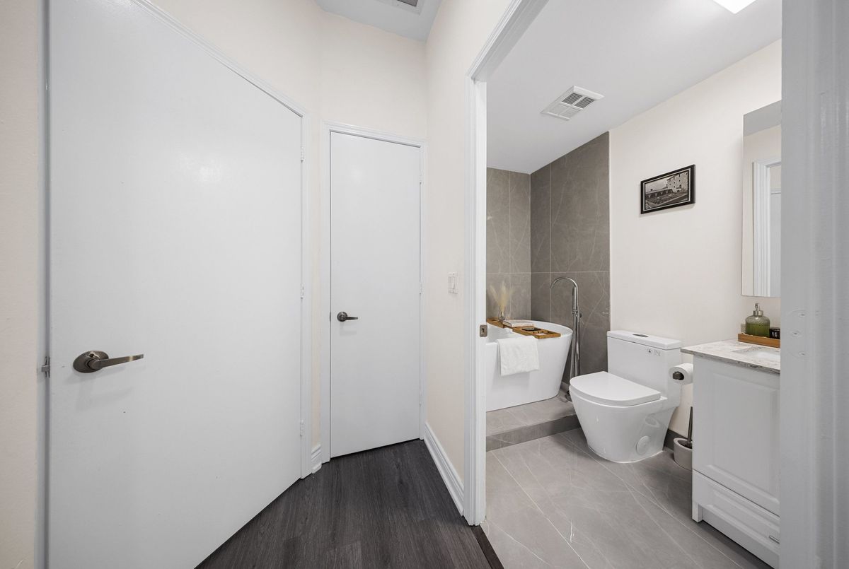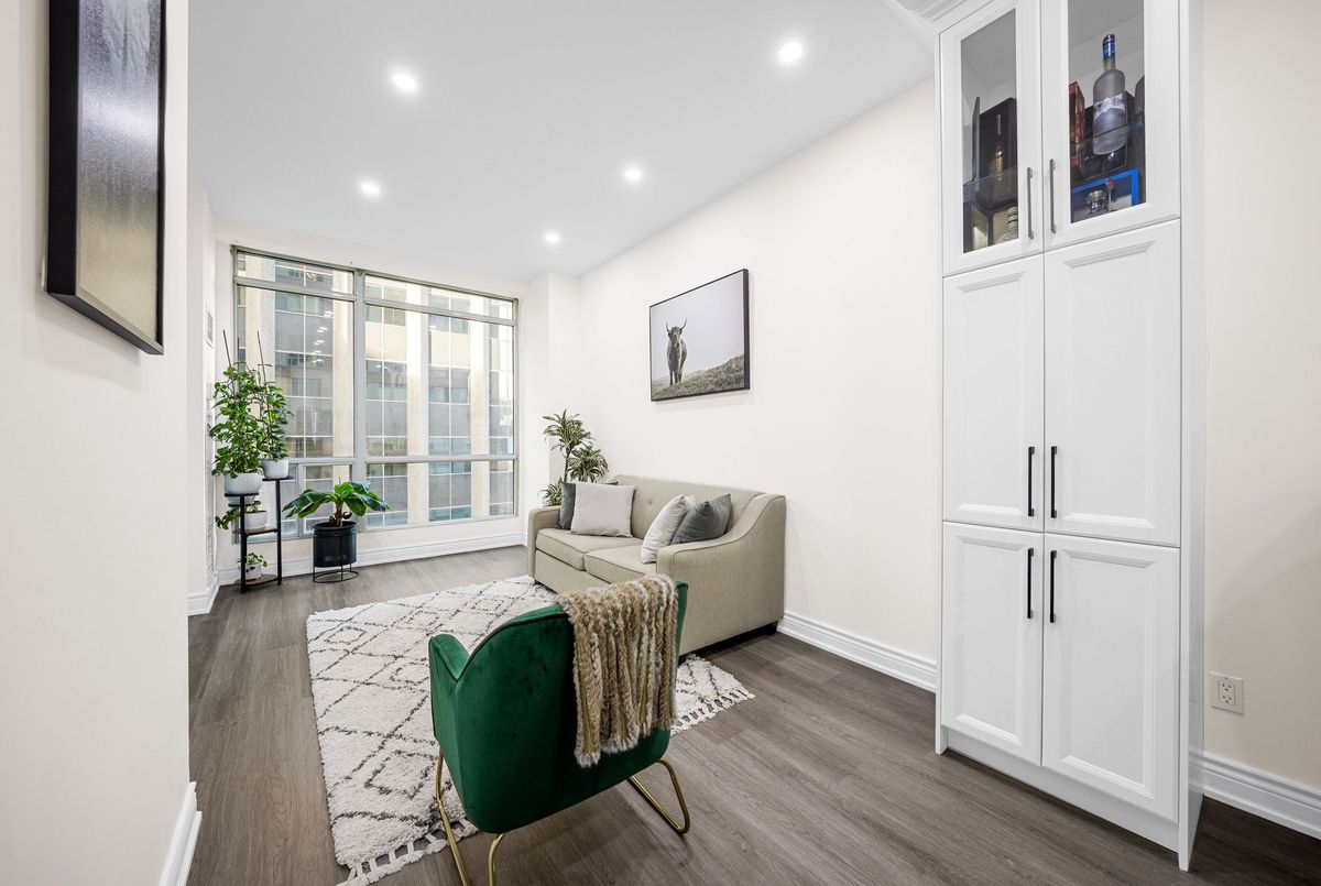 Welcome to this luxury condo in Toronto's Financial District, professionally renovated with several high end upgrades and abundant built-in storage. Open-concept living space with 10-foot high ceilings; Newly renovated bathrooms feature high-end quartz countertops, one with a rainfall shower and the other with a standalone bathtub. The kitchen boasts quartz countertops, a custom-built island with seating, custom shelves, and built-in appliances, including a panel-ready dishwasher. With four generously sized closets, storage is a breeze. Walk Score of 100, Transit Score of 100,and Bike Score of 93, with King Station and the PATH at your doorstep. Union Station is a 6-minutewalk away, and St. Lawrence Market, Eaton Center, Toronto Metropolitan University, and Lake Ontario waterfront are all within a 10-minute stroll. Amenities include a lounge, indoor pool, gym, garden terrace with BBQs, visitor parking, and all-inclusive utilities.