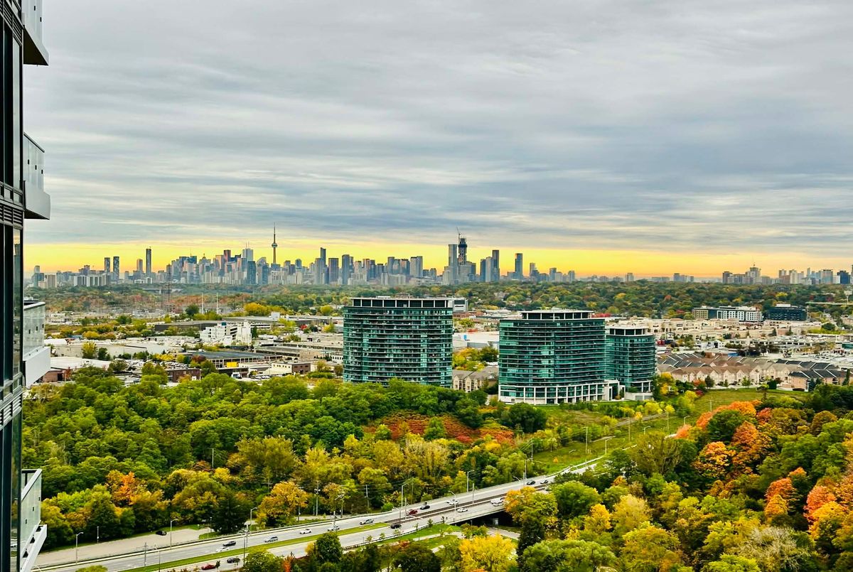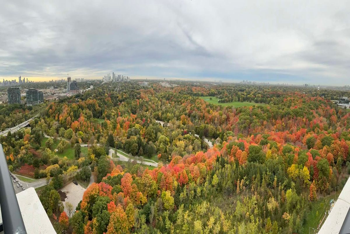 Rarely available, this high-floor corner suite at Chateau - Auberge on the Park by Tridel offers a split 2-bedroom + den layout with breathtaking unobstructed northwest views from the 26th floor. Enjoy sweeping vistas of the Sunnybrook Park and the Toronto skyline, with stunning four-season scenery captured through expansive floor-to-ceiling windows. This sun-filled residence features a thoughtfully designed layout with numerous upgrades throughout. The living and dining areas are pre-wired for motorized window coverings, enhancing both comfort and convenience. Step out onto the wraparound terrace, complete with water access and outdoor lighting-your private outdoor retreat-perfect for taking in panoramic park and sky views. The gourmet kitchen is beautifully outfitted with premium Miele appliances, including an upgraded 30" Miele Combi Steam Oven, an oversized kitchen sink, and an integrated 36" Miele French Door Refrigerator-elevating everyday living to a new level of elegance and performance. The principle bedroom boasts a spacious walk-in closet, unobstructed park views, and a lavish upgraded 5-piece ensuite complete with vessel sinks and wall-mounted faucets. The second bedroom features its own 4-piece ensuite, offering comfort and privacy for family or guests, while a well placed powder room adds extra functionality. Luxury building amenities include a grand lobby, indoor pool, hot tub, fully equipped fitness center, yoga studio, business center, party room, and pet spa. This residence is ideally located near Shops at Don Mills, grocery stores, and an array of dining options. Just steps to the Eglinton Crosstown LRT, with quick access to highways and public transit-providing seamless connectivity to both downtown and uptown Toronto. Completing this exceptional offering are an upgraded EV parking space and a conveniently located locker near the elevators-ensuring both ease and efficiency in your daily routine.