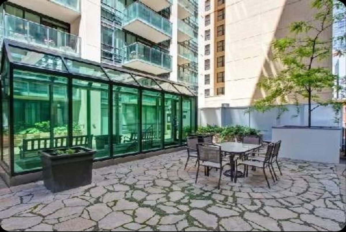The property is located in the heart of the Entertainment District. It is close to the Financial District, Rogers Centre, CN Tower, PATH, Queen/King West, Lakefront, and Chinatown. The layout is modern with an open concept living/dining space and a walk-out balcony with south exposure. Modern kitchen with new microwave and refrigerator. Bedroom has closet organizers. The den can be used as a second bedroom and has a separate door. Ensuite Laundry with both Washer and Dryer. Amenities include visitor parking, gym, party room, concierge, and rooftop deck/garden. Utilities include hydro.