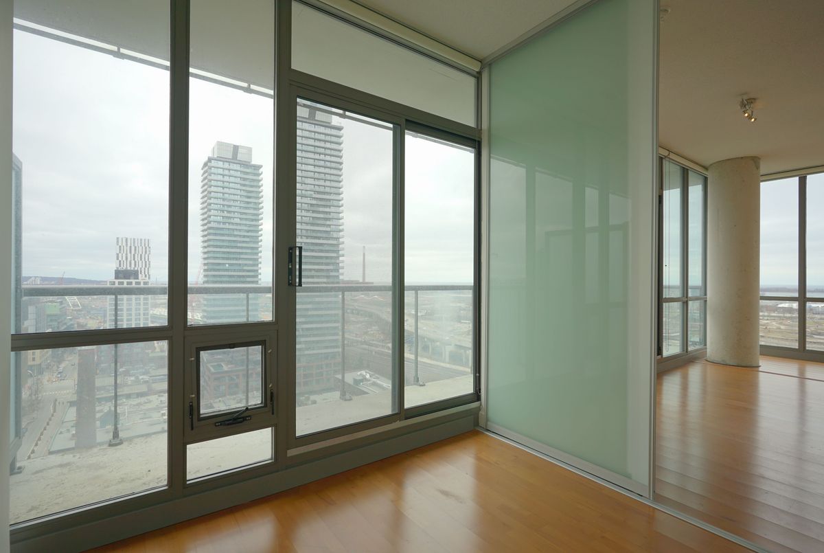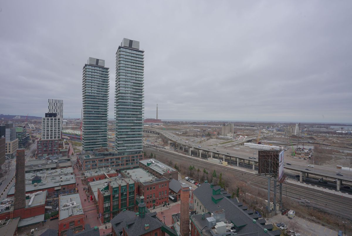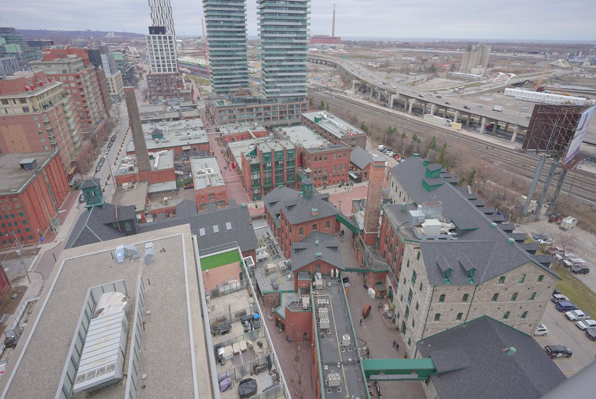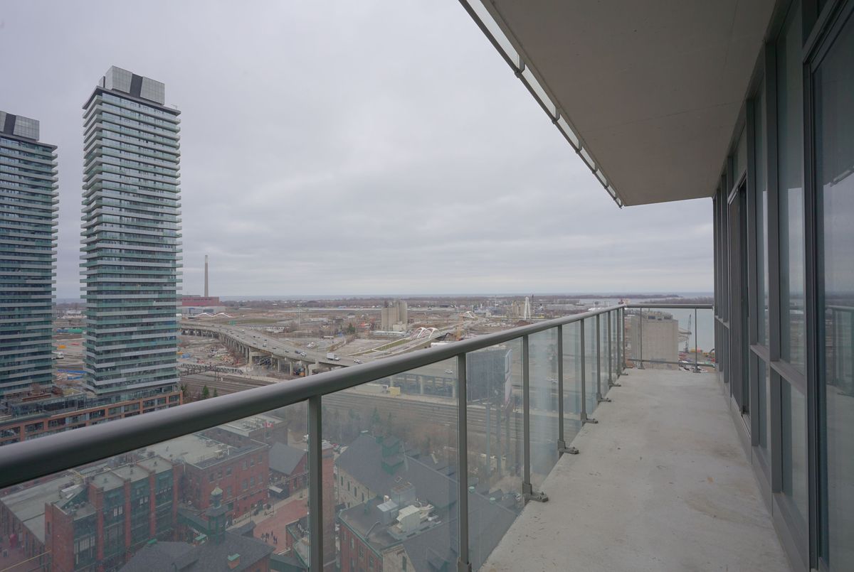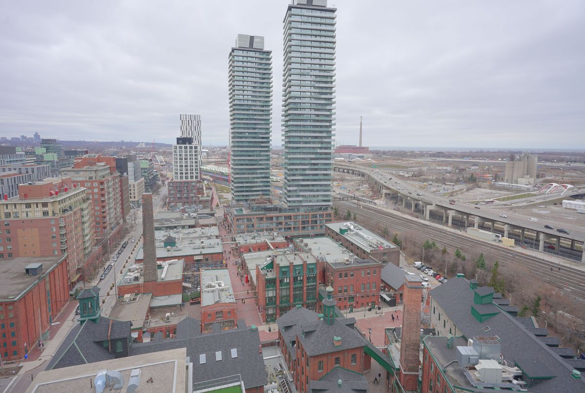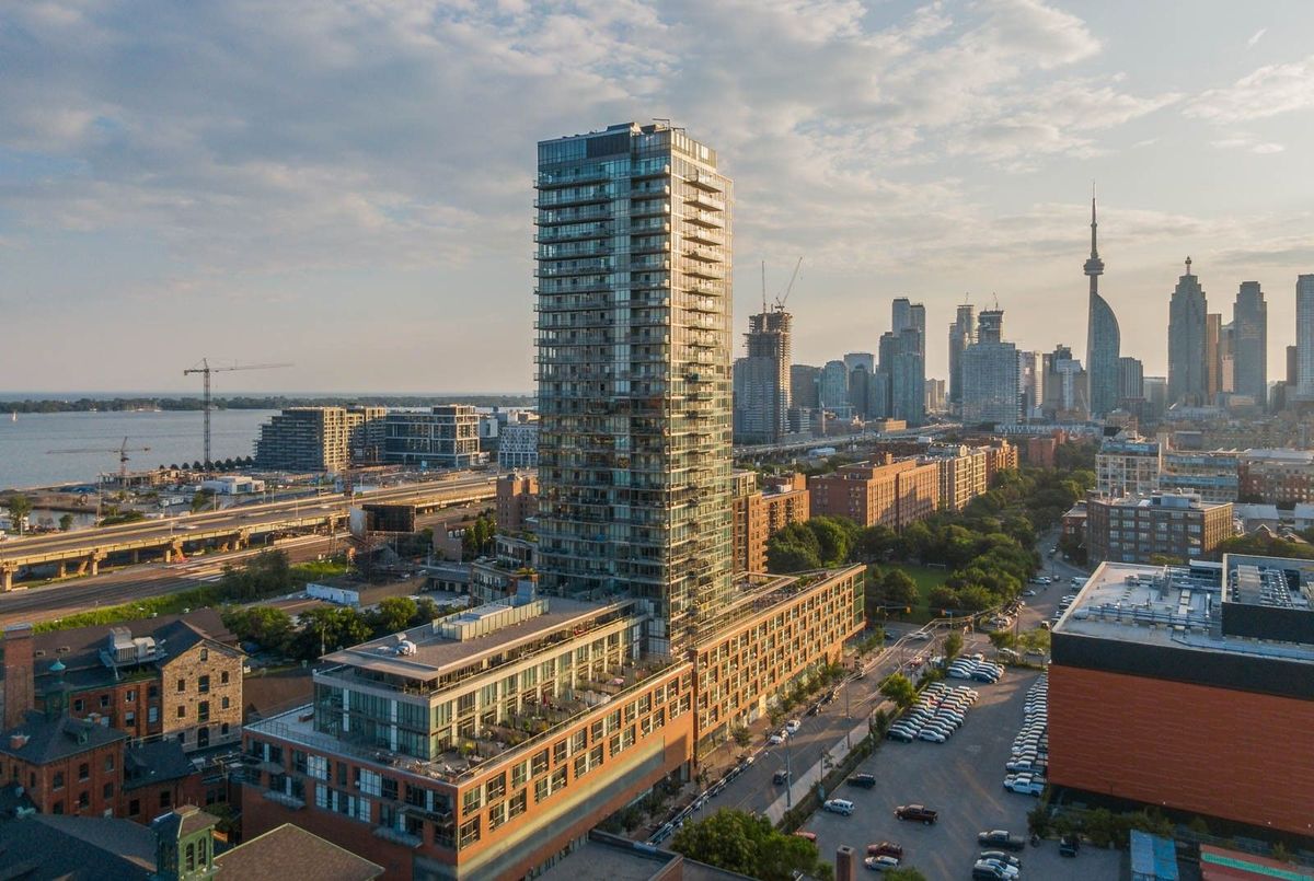 Welcome to the iconic Distillery District, one of Toronto's most charming and historic neighbourhoods. This exceptional 850 sqft suite offers a highly functional 2-bedroom layout, thoughtfully designed to maximize space and comfort. The second bedroom is perfectly suited as a private and inspiring work-from-home office or guest space. Enjoy a bright, open-concept living area enhanced by floor-to-ceiling windows that flood the unit with natural light and showcase breathtaking southeast-facing sunrise and lake views. Step out onto the oversized balcony to take in unobstructed views - an ideal setting for relaxing or entertaining. Residents enjoy access to premium, state-of-the-art amenities, including an outdoor pool and hot tub, rec room, patio, guest suites, visitor parking, sauna, gym, and media room - all within a vibrant community known for its cafes, restaurants, boutiques, and cultural attractions.