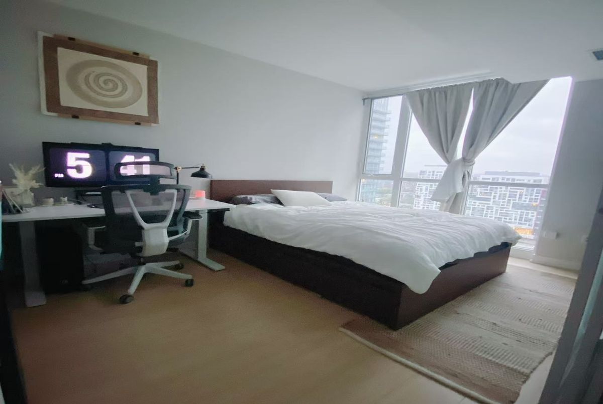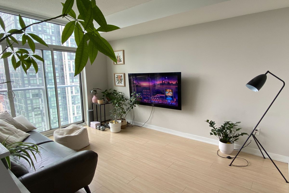 Luxurious, Bright & Open Concept 1 Bed W/Beautiful, Unobstructed, High-Floor View. In Trendy Cityplace, Conveniently Located By The Lake, Ttc, Gardiner, Library, Parks, King West, Waterfront, Restaurants, Bars, Banks, Grocery Store, Cn Tower, Financial District, Schools, Cne, Community Centre + More! The open concept kitchen flows seamlessly into the living space, and the 2-way access bathroom offers convenience from both the bedroom and main living area. Residents enjoy an exceptional array of amenities including a 24 hrs concierge, indoor pool, hot tub, fitness centre, basketball court, party room, theatre, guest suites, and more.. All furnitures (Dinning table, Sofa, Bedframe, TV and desk) can be included in! Move in Ready!