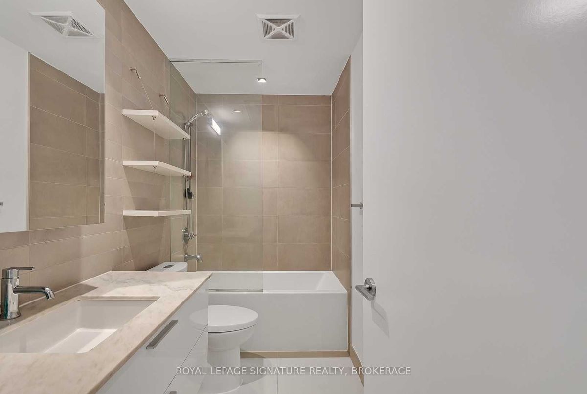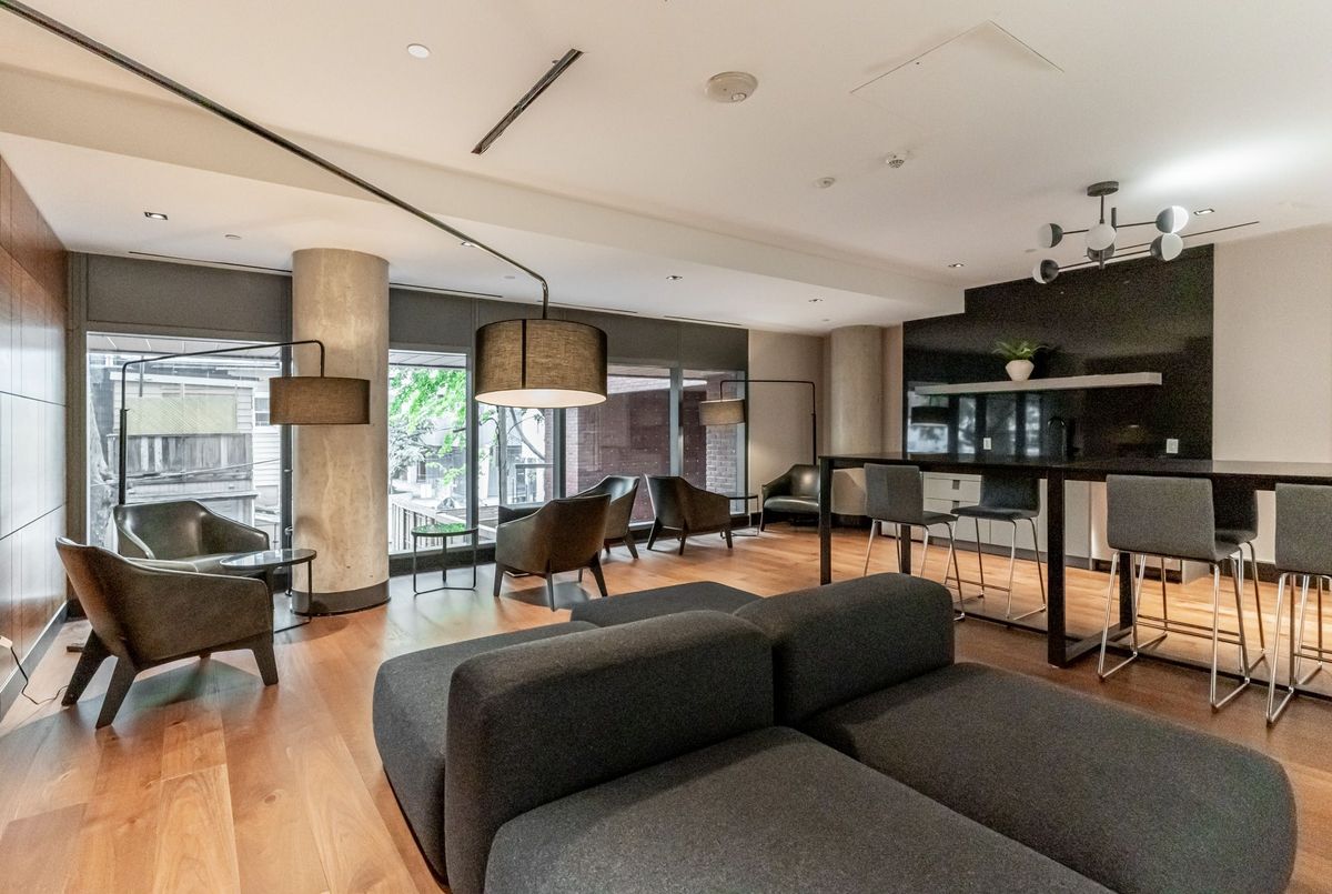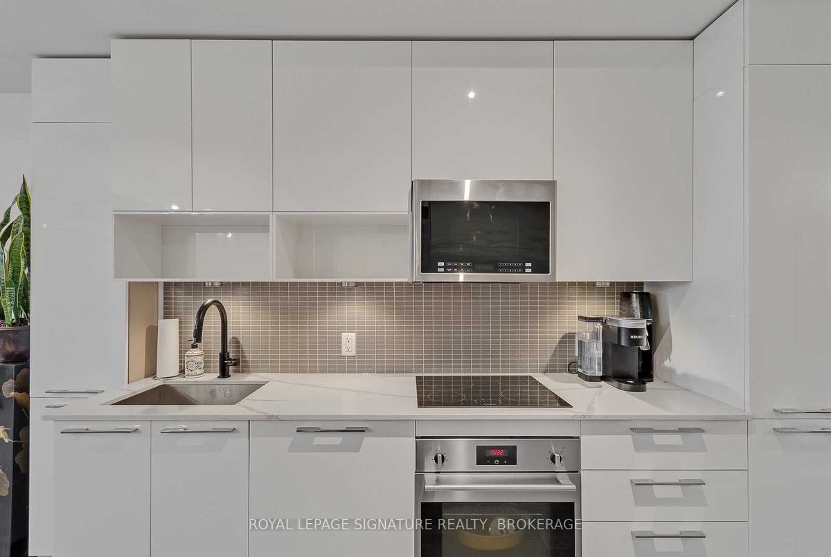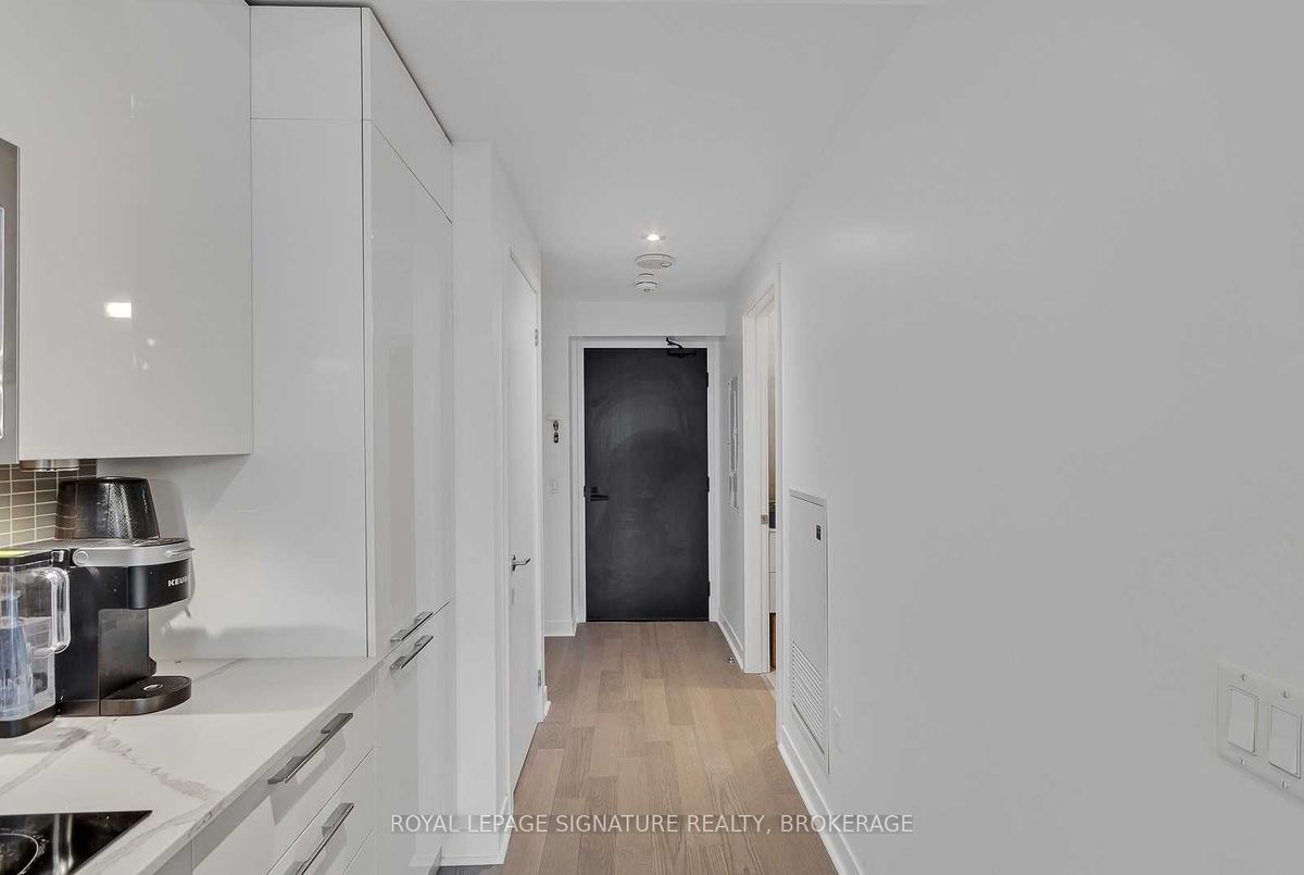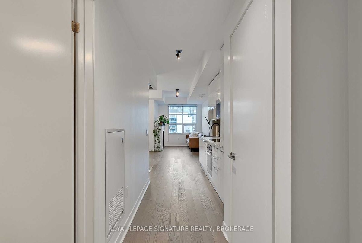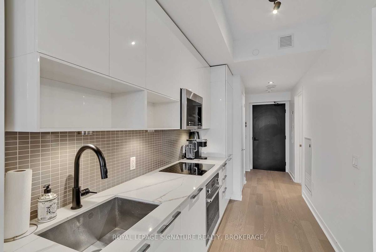 Experience the best of King West living at the highly coveted Kingly Condos at King & Portland. This exceptional 1-bedroom suite offers incredible value with thoughtful upgrades and a spacious open-concept layout designed for modern city living.The suite features expansive New York-style warehouse windows, 9-ft smooth ceilings, and wide plank flooring throughout, creating a bright and stylish atmosphere. The custom Scavolini kitchen is a standout, complete with full-sized integrated/panelled stainless steel appliances, natural stone counters, subway tile backsplash, and an additional custom pantry for extra storage.The lengthy open-concept living and dining area is perfect for entertaining, enhanced by floor-to-ceiling windows that bring in abundant natural light and offer versatile layout options. The primary bedroom is smartly enclosed with frosted glass sliding doors and features a double closet. Relax in the spa-inspired 4-piece bathroom finished with modern tile, a stone vanity, mirrored medicine cabinet, extra shelving, and a luxury 2-in-1 shower/tub. Step out onto your private balcony to enjoy sensational sunrise views, and take advantage of the included locker for added convenience.Residents enjoy state-of-the-art amenities, including a fitness centre and gym, rooftop deck, party and meeting rooms, and 24-hour concierge. Located just steps from Toronto's hottest restaurants, cafes, nightlife, and shopping, this is King West living at its finest. Live like royalty at The Kingly.