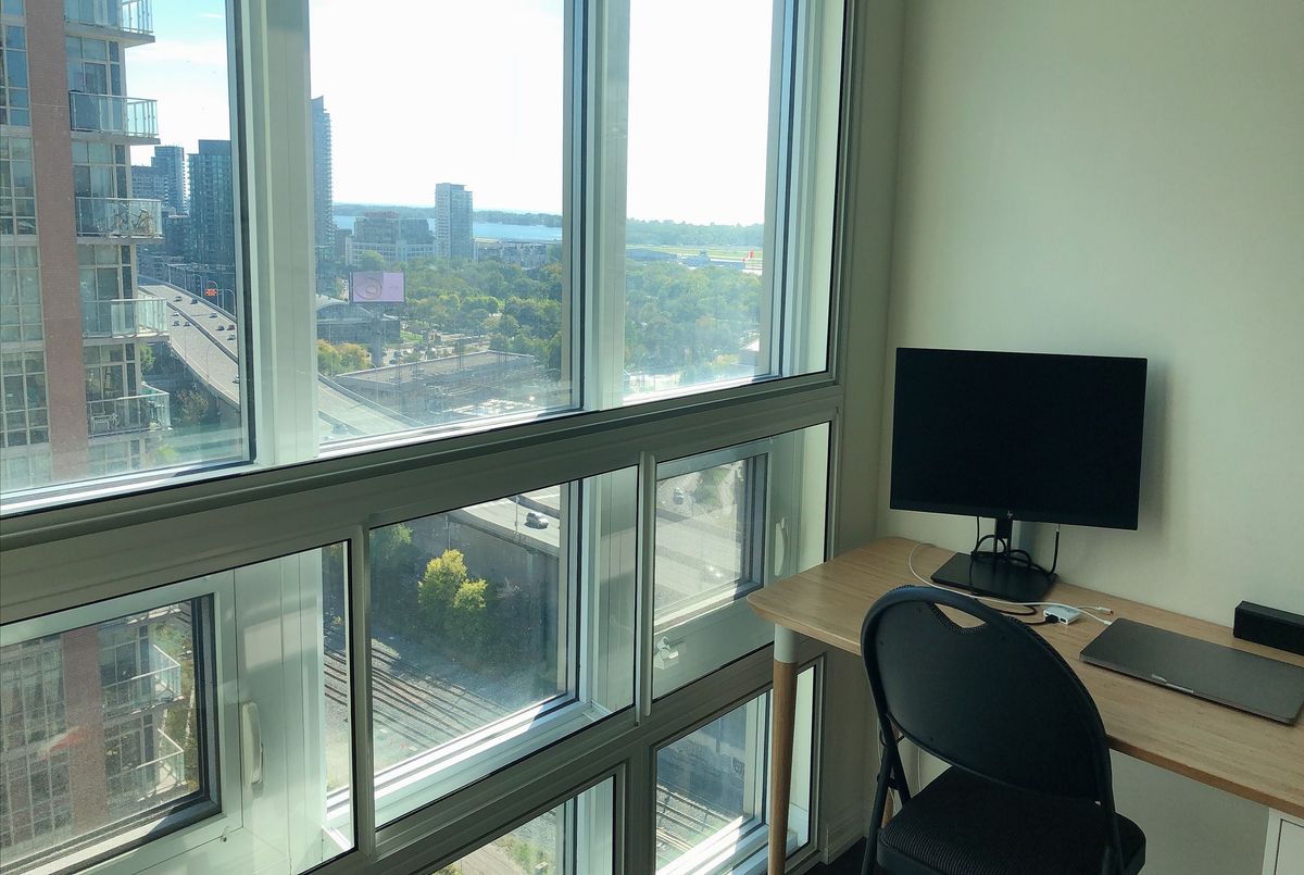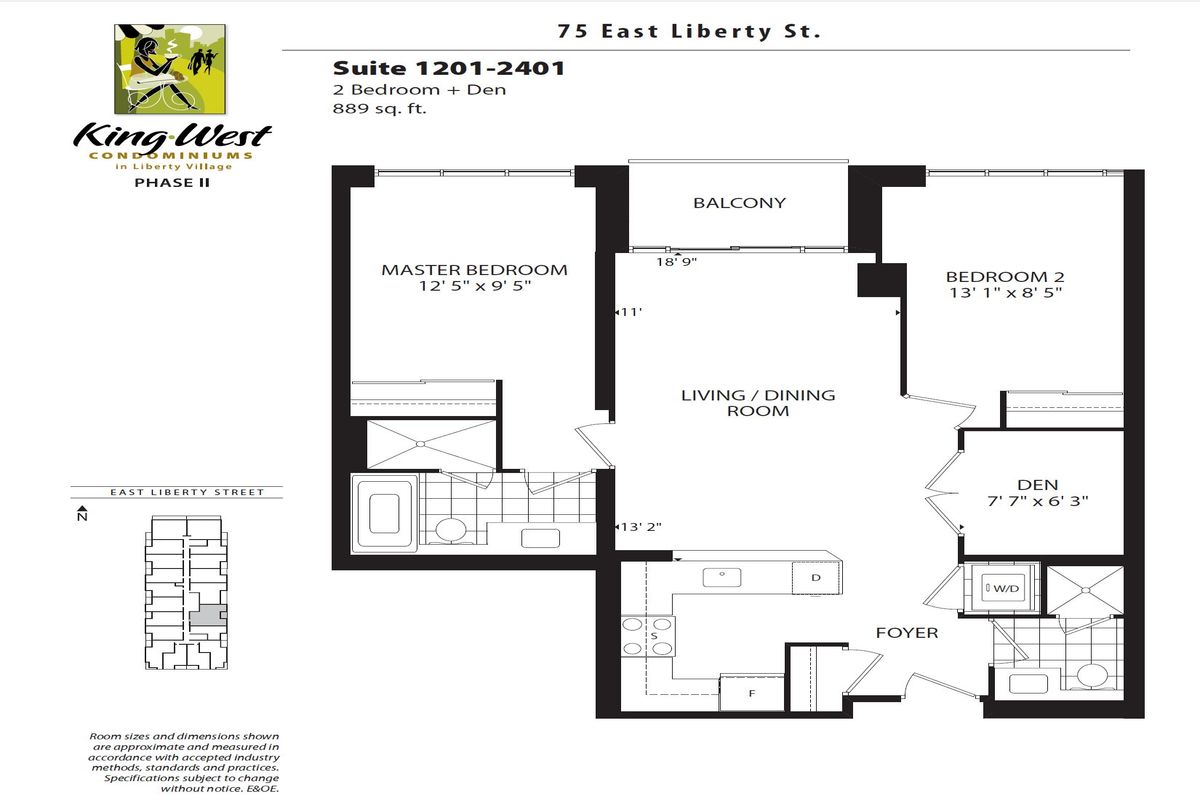 Bright & Spacious 2 Bedroom Plus Den With Great City & Lake View In The Heart Of Liberty Village! Almost 900 Sqft. Split Bedroom Plan & Master Br With 5 Piece Bath Ensuite W/ Soaker Tub, Separate Shower & Marble Accents. Den Can Be Used As 3rd Bedroom W/ Double Door. Large Kitchen W/ Granite Counters & Ss Appliances. W/O To Balcony. Fitness Club & Wellness Centre. Shops, Restaurants, TTC & Shopping At Your Door Step!
