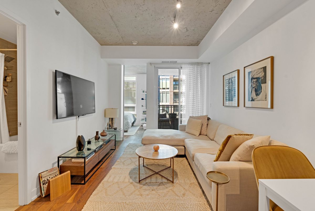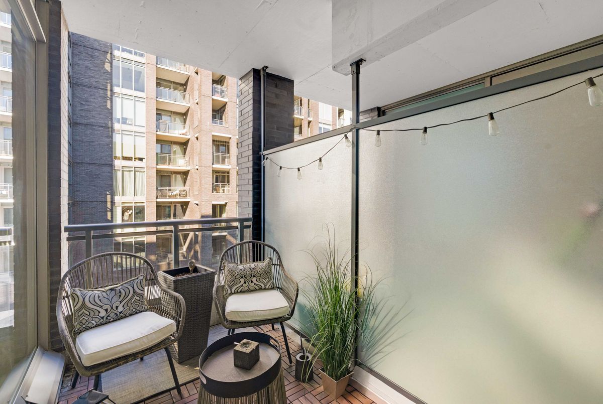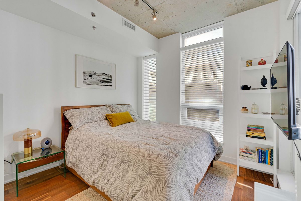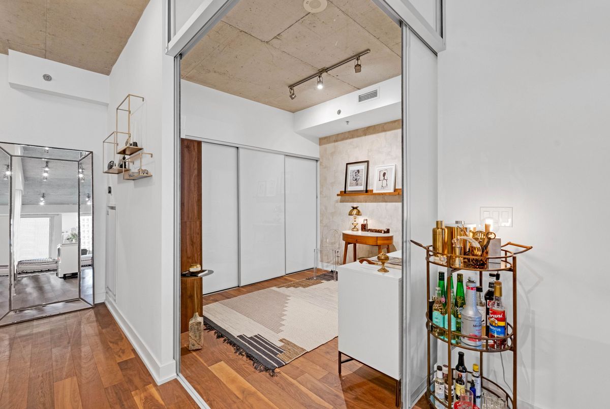 Welcome to 20 Gladstone Ave #516, a stunning 2-bedroom, 2-bathroom condo in the heart of Toronto's vibrant Little Portugal. This elevated residence offers soaring ceilings, sleek modern finishes, and thoughtful upgrades throughout. The kitchen features extended-height cabinetry, maximizing both storage and style, while upgraded walnut flooring adds warmth and sophistication. The primary suite includes a custom PAX wardrobe, creating a beautifully organized space. Step out onto your private covered balcony with a natural gas hookup-perfect for year-round BBQing. Enjoy unmatched convenience with direct P1 access to Metro, Starbucks, and The Wine Shoppe-no need to step outside. Live steps from the Ossington Strip, where top restaurants, patios, and hotspots like Badiali's await. With a 97 Walk Score, transit at your doorstep, and quick access to the Gardiner, this is urban living at its finest. Welcome home-you'll be glad you made it to Gladstone.