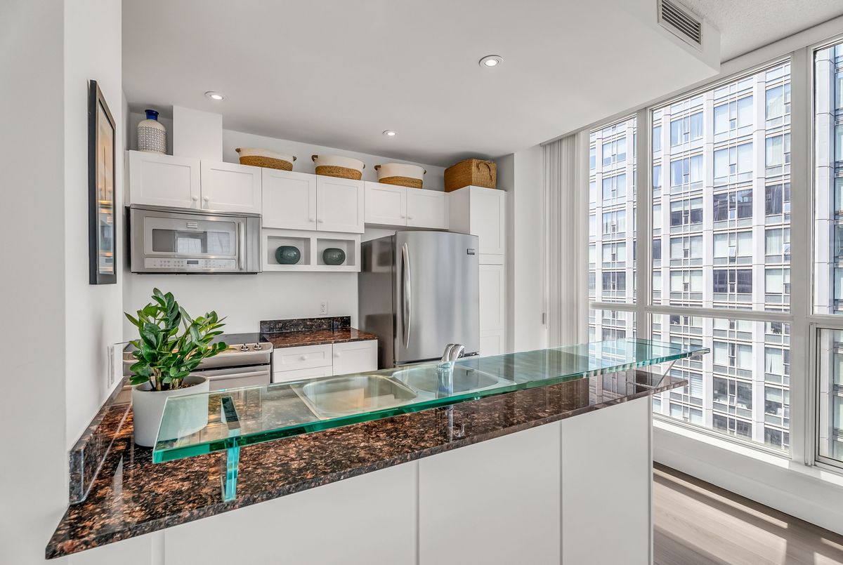 **Photos are from a previous listing. The unit is currently tenanted; furnishings differ but the property shows exceptionally well. Tenants have provided their notice and will be vacating on May 31, 2026. **Stylish, well appointed, and in a prime location!! Spacious layouts like this are rarely offered in newer builds - creating an inviting living space that allows for multiple seating arrangements and a full size dining table, which pours in with natural sunlight. Enjoy panoramic city views that deliver a true "wow" moment every time you step into the kitchen for your morning coffee. Experience vibrant waterfront living year-round, with skating, concerts, marina access, kayaking, and the nearby yacht club just steps away. Includes one parking space conveniently located on P1, close to the elevators, along with ample storage space within the unit. Unbeatable convenience with direct access to the PATH and just moments from UnionStation, the UP Express, Scotiabank Arena, and the Financial District. Building amenities include an indoor/outdoor pool, fitness centre, sauna, party room, guest suites, and 24-hour concierge. Take advantage of this market and secure an exceptional unit that truly embodies downtown living with a calming lakeside vibe!!