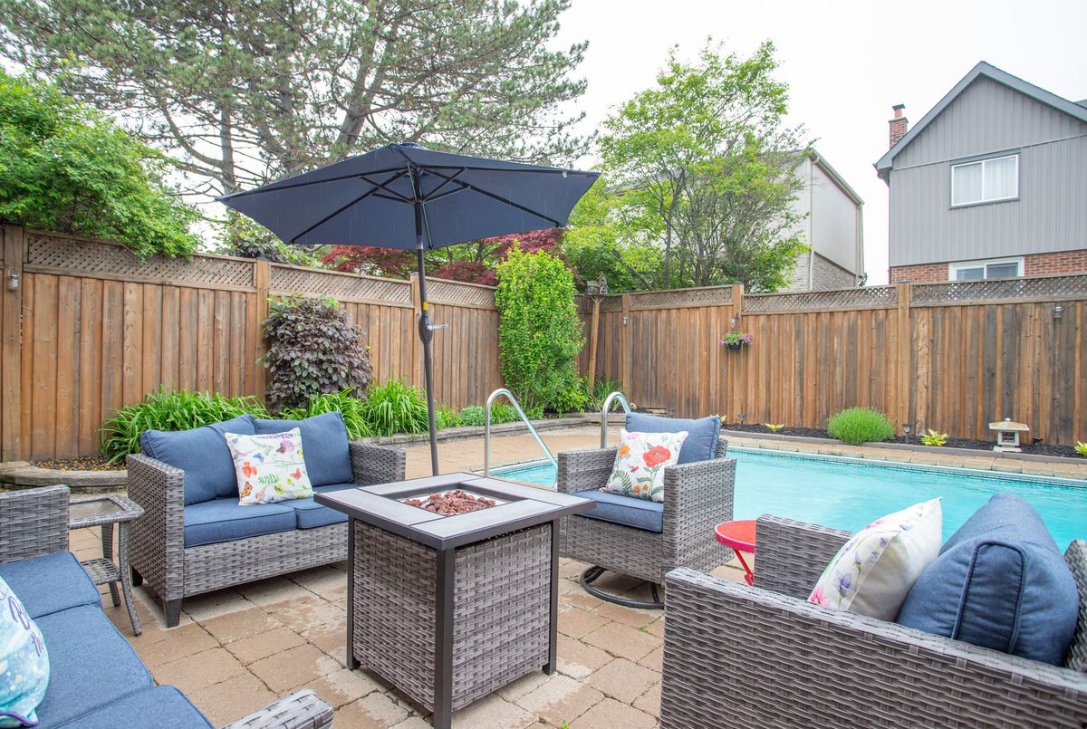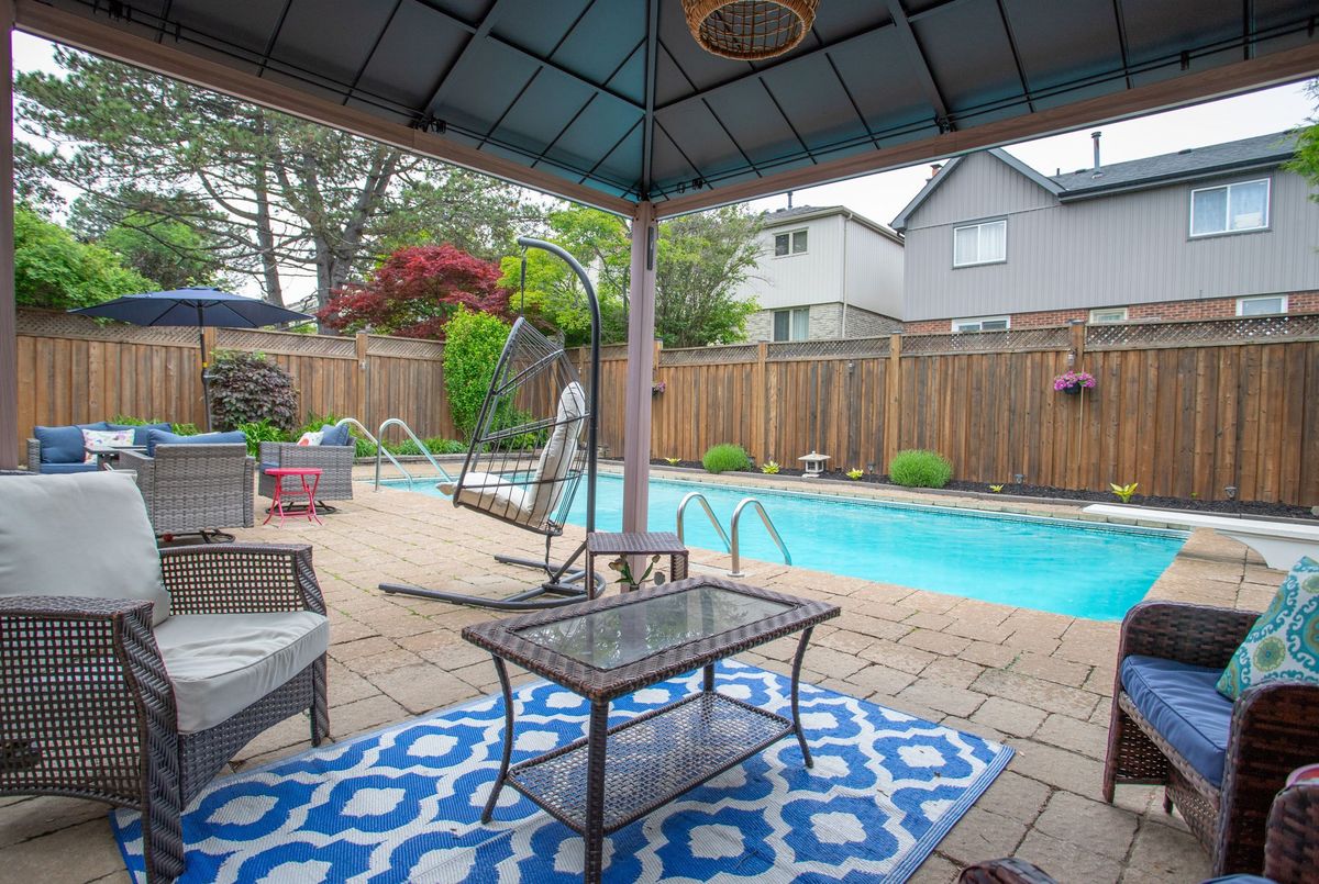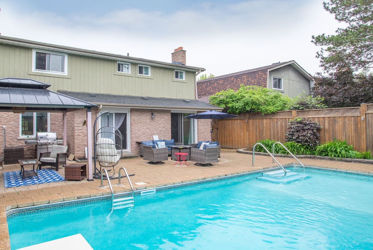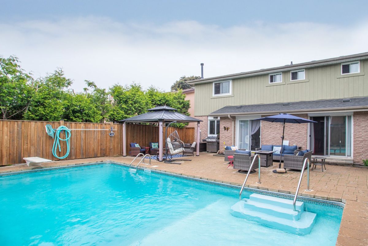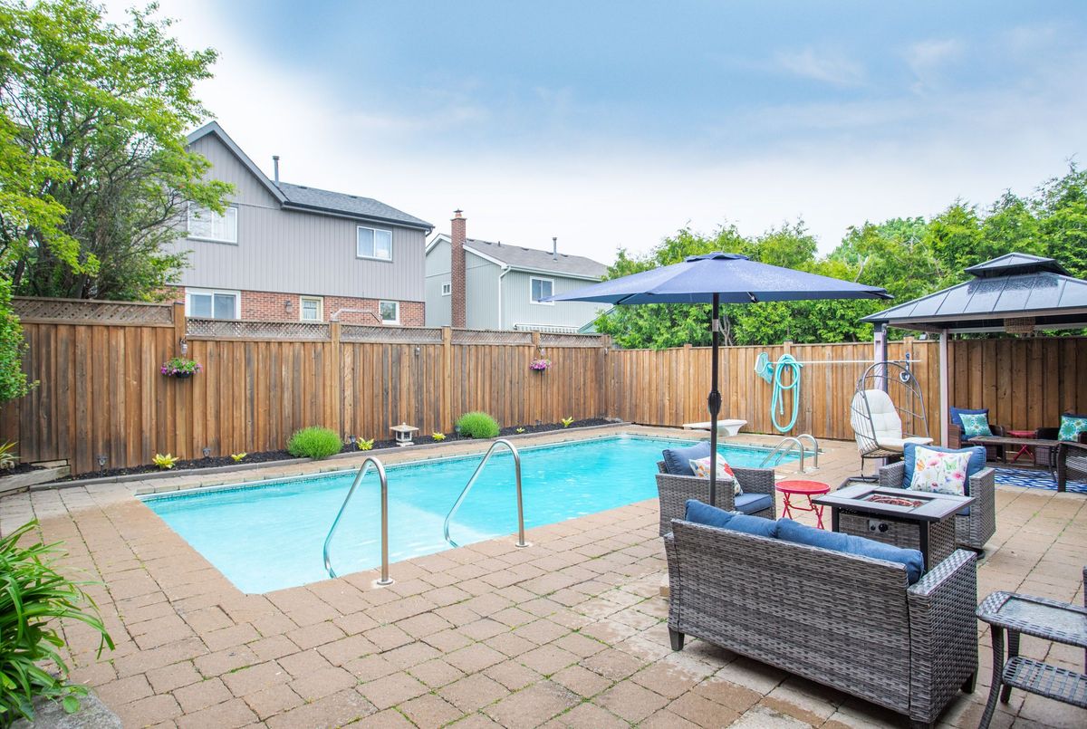 Unbelievable opportunity: Four + 1 bedrooms, finished basement, inground pool, in a fantastic neighborhood. Don't miss this well ully maintained home on a quiet, family-friendly street in Pickering. Step into a private backyard oasis featuring a professionally landscaped yard, an inviting in-ground pool, and a stylish 2-year-old cabana perfect for summer entertaining. The pool is well-equipped with a 7-year-old heater, 4-year-old pump, 3-year-old filter, 8-year-old liner, and 5-year-old skimmer for your enjoyment. Inside, the finished basement offers added living space complete with a bathroom renovated 6 years ago and carpet updated just 3 years ago, ideal for a home gym, media room, or guest suite. A large bay window installed in 2025 floods the main level with natural light, while the kitchen shines with a brand new quartz countertop and sink (2025), blending style and functionality. Practical upgrades include a 7-year-old furnace, a brand new water heater (2025), and a 4-year-old washer and dryer. The backyard fence was updated 4 years ago for added privacy, and the air conditioner was professionally serviced just 4 years ago. This move-in-ready home combines comfort, functionality, and outdoor charm, all in a peaceful and convenient location.