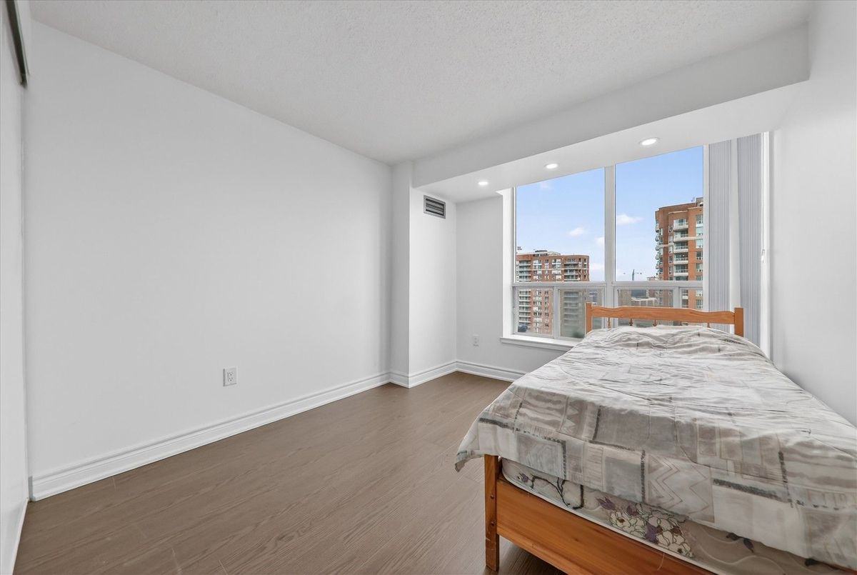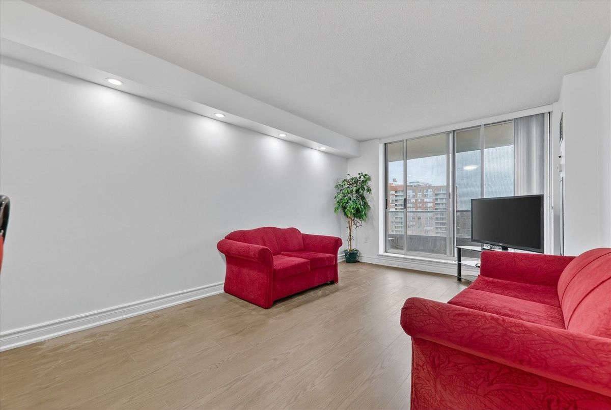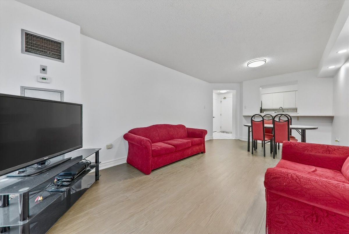 This bright and Modern Condo features 2 Bed Rooms, 2 full bathrooms, a Cozy living area and an open Balcony for relaxing. 24 Hours gated Community. Enjoy the Convenience of ensuite Laundry and Underground Parking. Located just steps from TTC, Medical offices, Public Library, Shopping Malls, with only Minutes from highway. This Condo offers aminities including indoor Pool, Fitness Center, Sauna, Tennis Courts and Party Hall. Brandnew Laminate Flooring throughout the unit and brand new appliances. Freshly painted and new Vanities in Bathrooms. Brandnew Counter tops in the Kitchen.