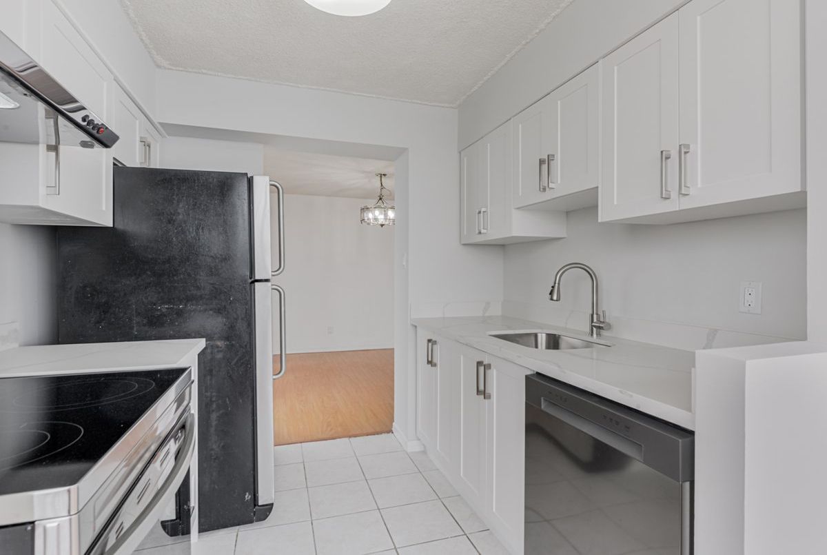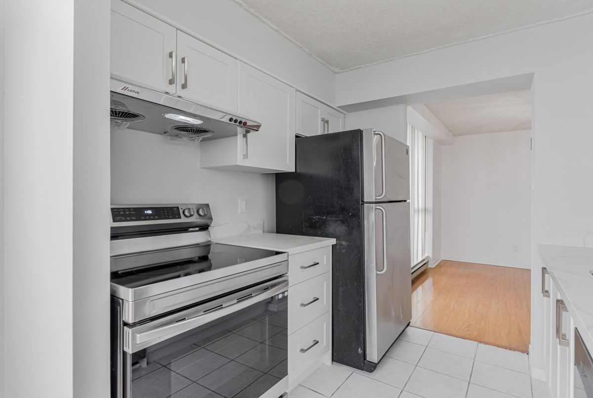 Renovated corner unit with two ensuites and unobstructed view, convenietly located at Steeles/McCowan. Open concept, large living room and light-filled den, spacious dining room walks out to balcony. Beautiful kitchen with quartz countertop, newer kitchen cabinets (2 years), and newer SS appliances. Upgraded washroom vanities (2 years), new hot water tank (owned). Close to all amenities, 24 hours security, indoor pool and gym room.