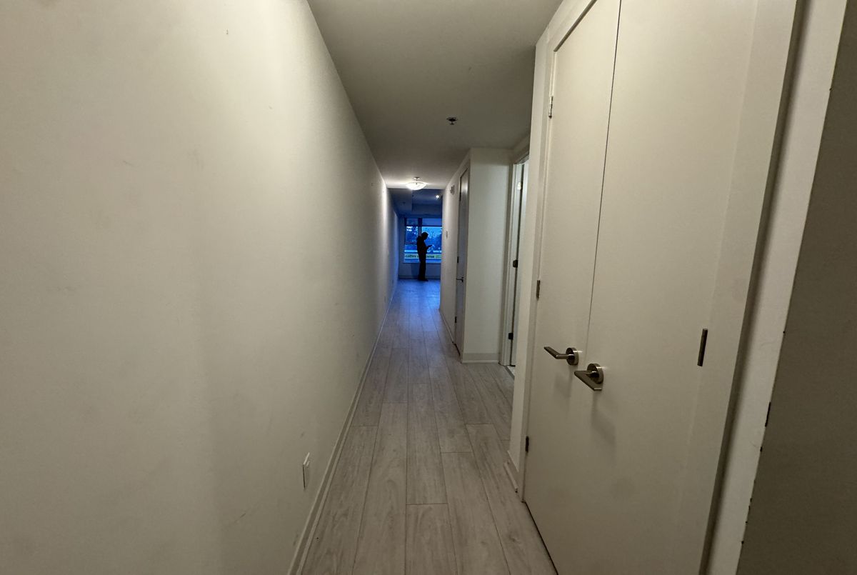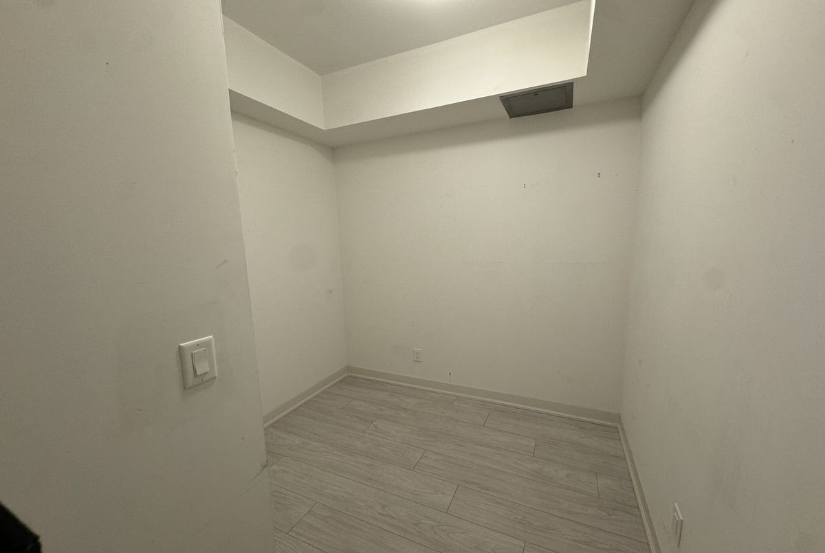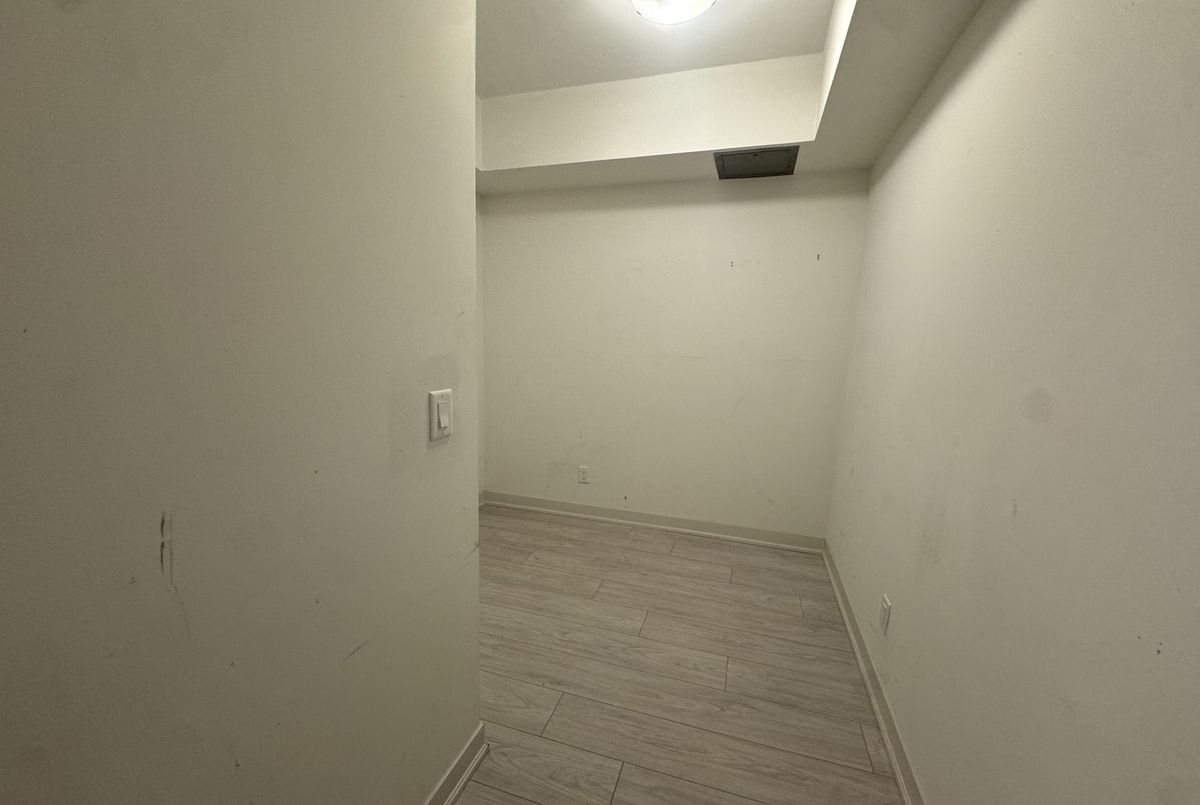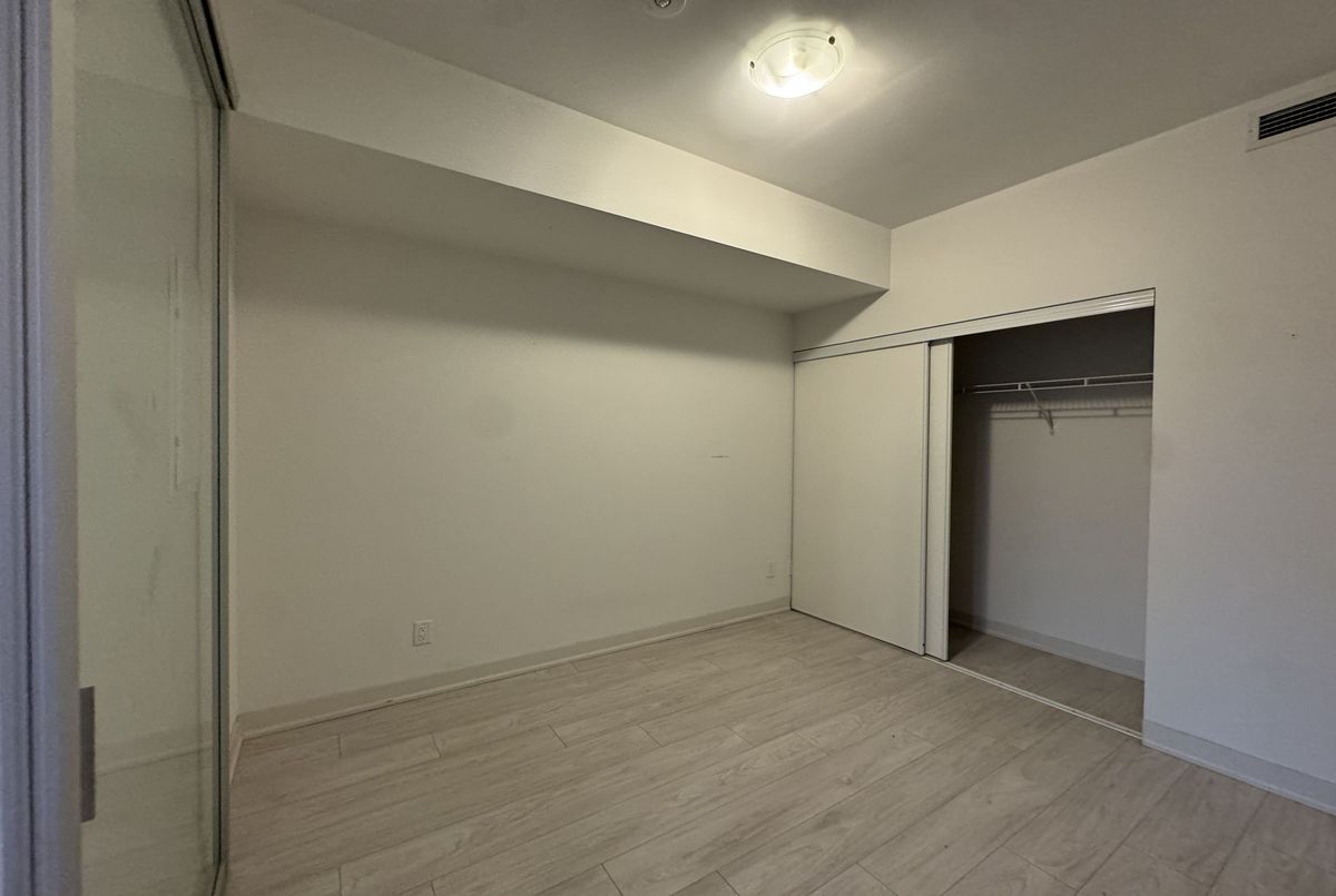 Modern 1-Bed + Den at Merge Condos (Built 2023), perfect for stylish, low-maintenance living. Sun-filled plan with floor-to-ceiling bedroom windows (custom blinds) and a sleek sliding door for privacy. Contemporary kitchen with integrated appliances, laminate flooring throughout. Den with closet works as a home office or compact 2nd sleeping space. One parking included. Prime location: TTC, shops, restaurants, and groceries at your door; the beach and waterfront are just minutes away.