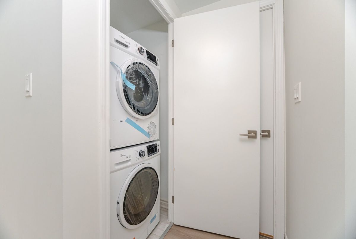 close To All Amenities, Including Ttc/Go/401, Utsc/Centennial College, Hospital, Parks, And Steps To Full Shopping & Restaurants! Building Amenities Include Fitness Room/Yoga Centre, & Party/Meeting Lounge! 20 minutes bus ride to Kennedy subway station. Stainless Steel Fridge, Stove, Built-In Dishwasher! Stackable Washer/Dryer! ! All Window Coverings And Light Fixtures, Oversized Terrace! ( Tankless Hwt Rental).unit comes with 1 parking spot another one is available for $150.00