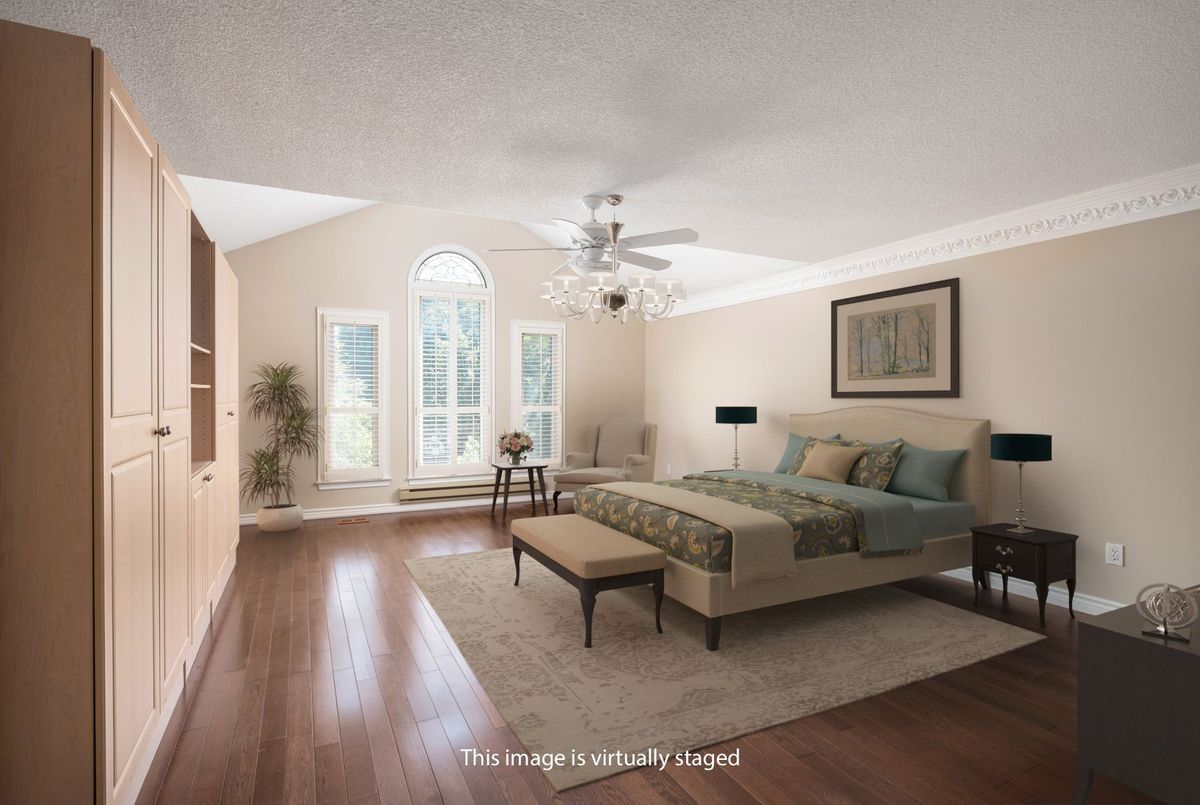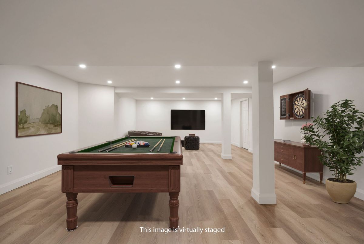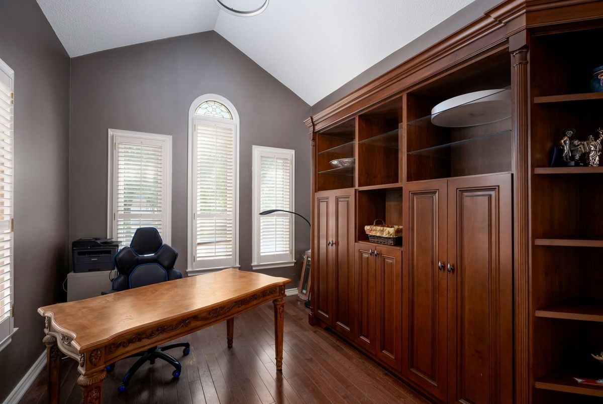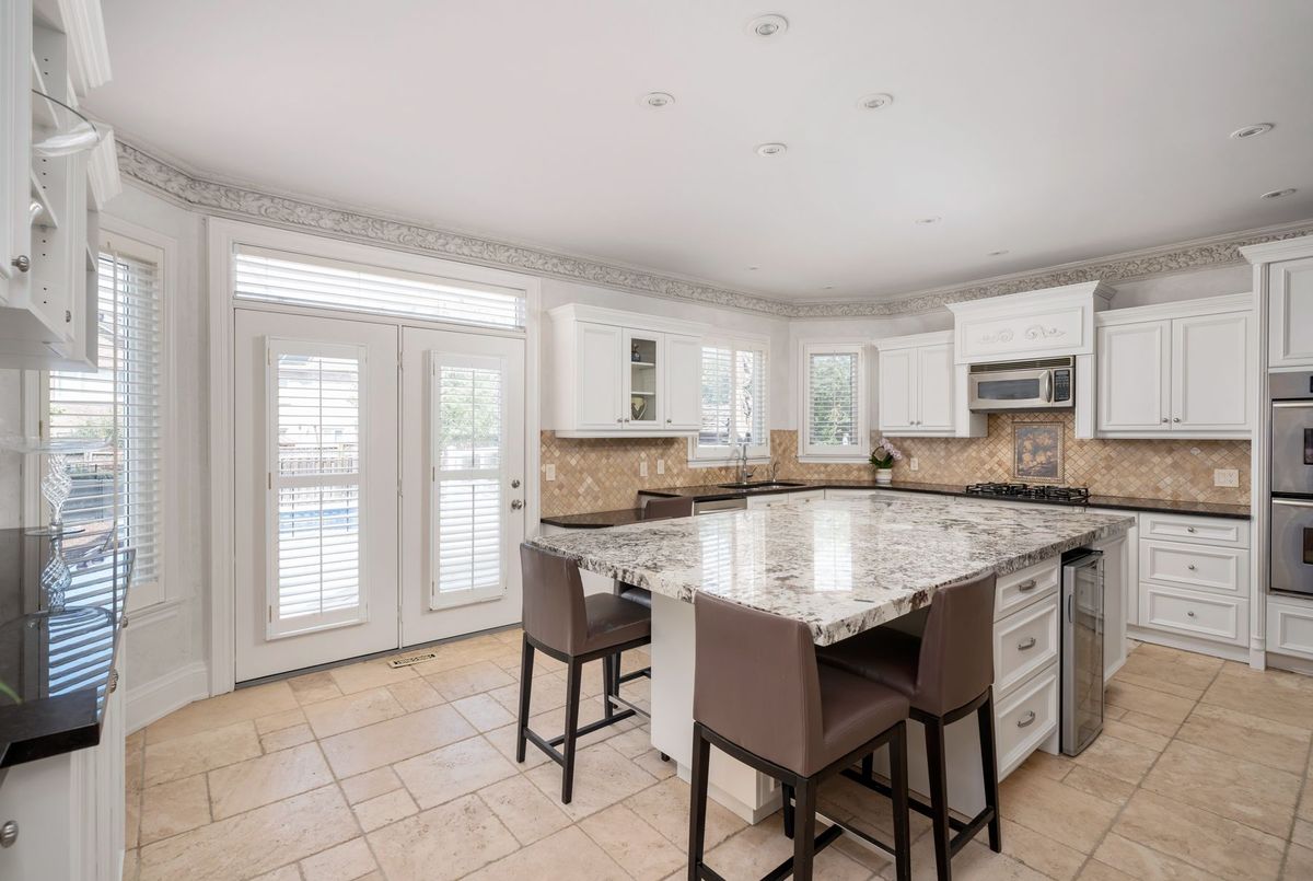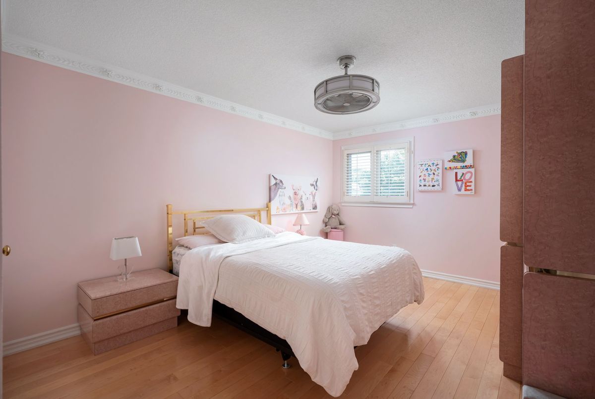 Tucked away on a quiet cul-de-sac, this 4-bedroom, 5-bathroom residence oers 3,450 sq.ft. of elegant living space on apremium pie-shaped lot. A 6-car parking, double garage, and professionally landscaped grounds with an in ground pool set the stage for bothconvenience and luxury. Inside, a grand foyer with chandelier, travertine floors, and wainscotting leads to a private oce with cathedralceiling, French doors, and built-in shelving. The formal living and dining rooms showcase hardwood, crown moulding, pot lights, and built-inspeakers. At the heart of the home, the chefs kitchen features a granite island with bar seating, stainless steel appliances, and granitecounters, open to the family room with a double-sided wood-burning fireplace. A powder room, laundry with garage access, and oak staircasewith wrought iron spindles complete the main level.Upstairs, the primary retreat impresses with a cathedral ceiling, walk-in closet, built-inshelving, mini split A/C, and a spa-like 6-pc ensuite with freestanding tub and rain shower.The second bedroom has its own 3-pc ensuite, whilethe third and fourth share a 5-pc bath.The finished basement oers versatile rec space, laminate flooring, and a 2-pc bath. Outside, enjoy aresort-style yard with oversized deck, pool (new liner 2025, hard cover, safety fence), gas heater, gazebo, and sprinkler system.Notableupgrades include roof (2024), pool liner (2025), 200 AMP panel, central vac, and lifetime window warranty. Ideally located near top-ratedschools, parks, trails, shopping, transit, and major highways this home combines elegance, function, and an entertainers dream setting.*Select photos may include digital staging for illustrative purposes*