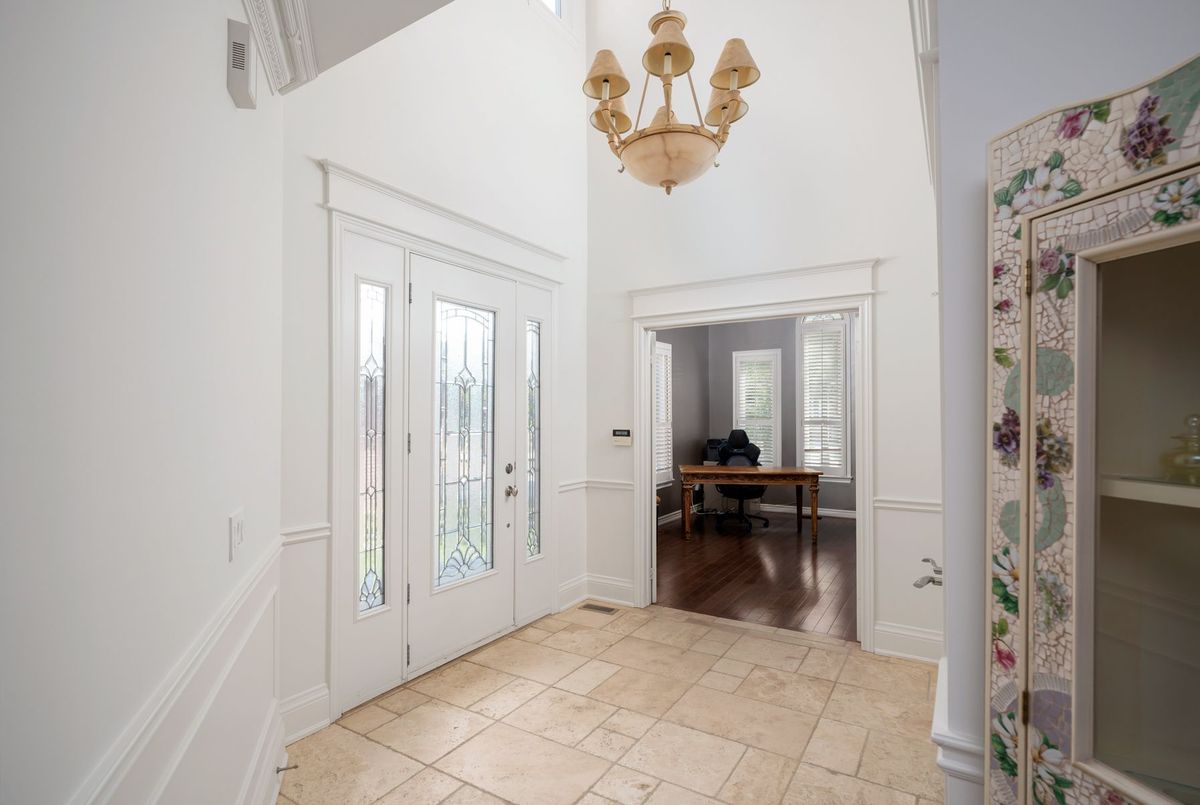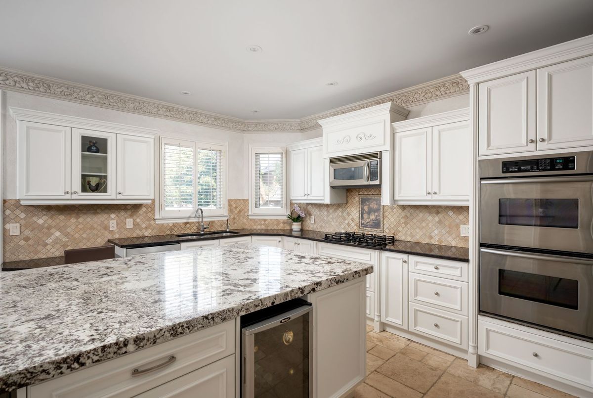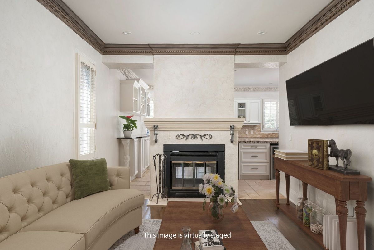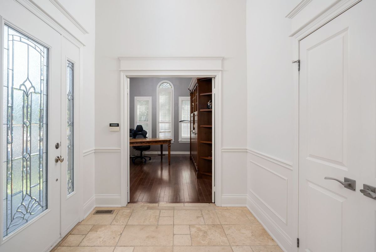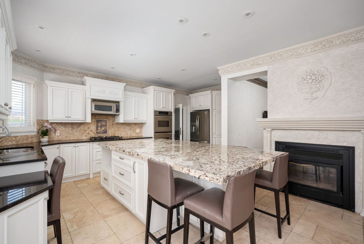Tucked away on a quiet cul-de-sac, this 4-bedroom, 5-bathroom residence oers 3,450 sq.ft. of elegant living space on apremium pie-shaped lot. A 6-car parking, double garage, and professionally landscaped grounds with an in ground pool set the stage for bothconvenience and luxury. Inside, a grand foyer with chandelier, travertine floors, and wainscotting leads to a private oce with cathedralceiling, French doors, and built-in shelving. The formal living and dining rooms showcase hardwood, crown moulding, pot lights, and built-inspeakers. At the heart of the home, the chefs kitchen features a granite island with bar seating, stainless steel appliances, and granitecounters, open to the family room with a double-sided wood-burning fireplace. A powder room, laundry with garage access, and oak staircasewith wrought iron spindles complete the main level.Upstairs, the primary retreat impresses with a cathedral ceiling, walk-in closet, built-inshelving, mini split A/C, and a spa-like 6-pc ensuite with freestanding tub and rain shower.The second bedroom has its own 3-pc ensuite, whilethe third and fourth share a 5-pc bath.The finished basement oers versatile rec space, laminate flooring, and a 2-pc bath. Outside, enjoy aresort-style yard with oversized deck, pool (new liner 2025, hard cover, safety fence), gas heater, gazebo, and sprinkler system.Notableupgrades include roof (2024), pool liner (2025), 200 AMP panel, central vac, and lifetime window warranty. Ideally located near top-ratedschools, parks, trails, shopping, transit, and major highways this home combines elegance, function, and an entertainers dream setting.*Select photos may include digital staging for illustrative purposes*