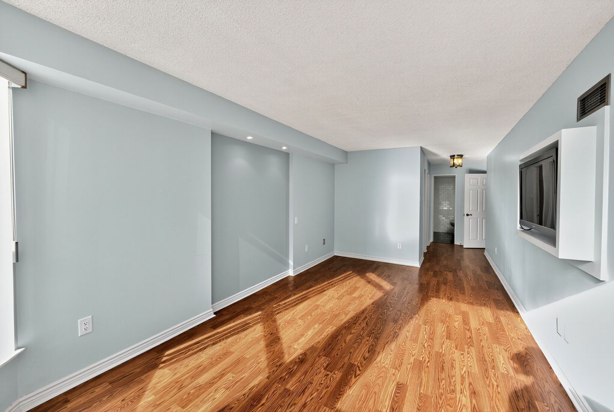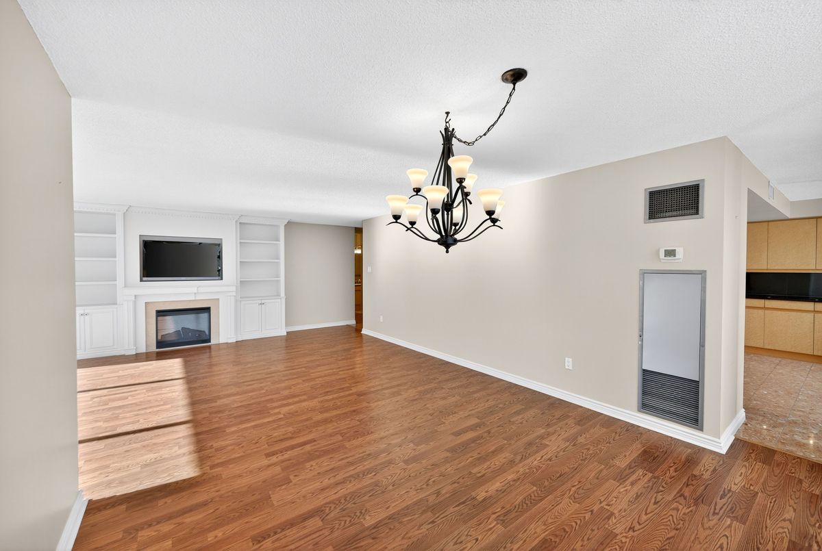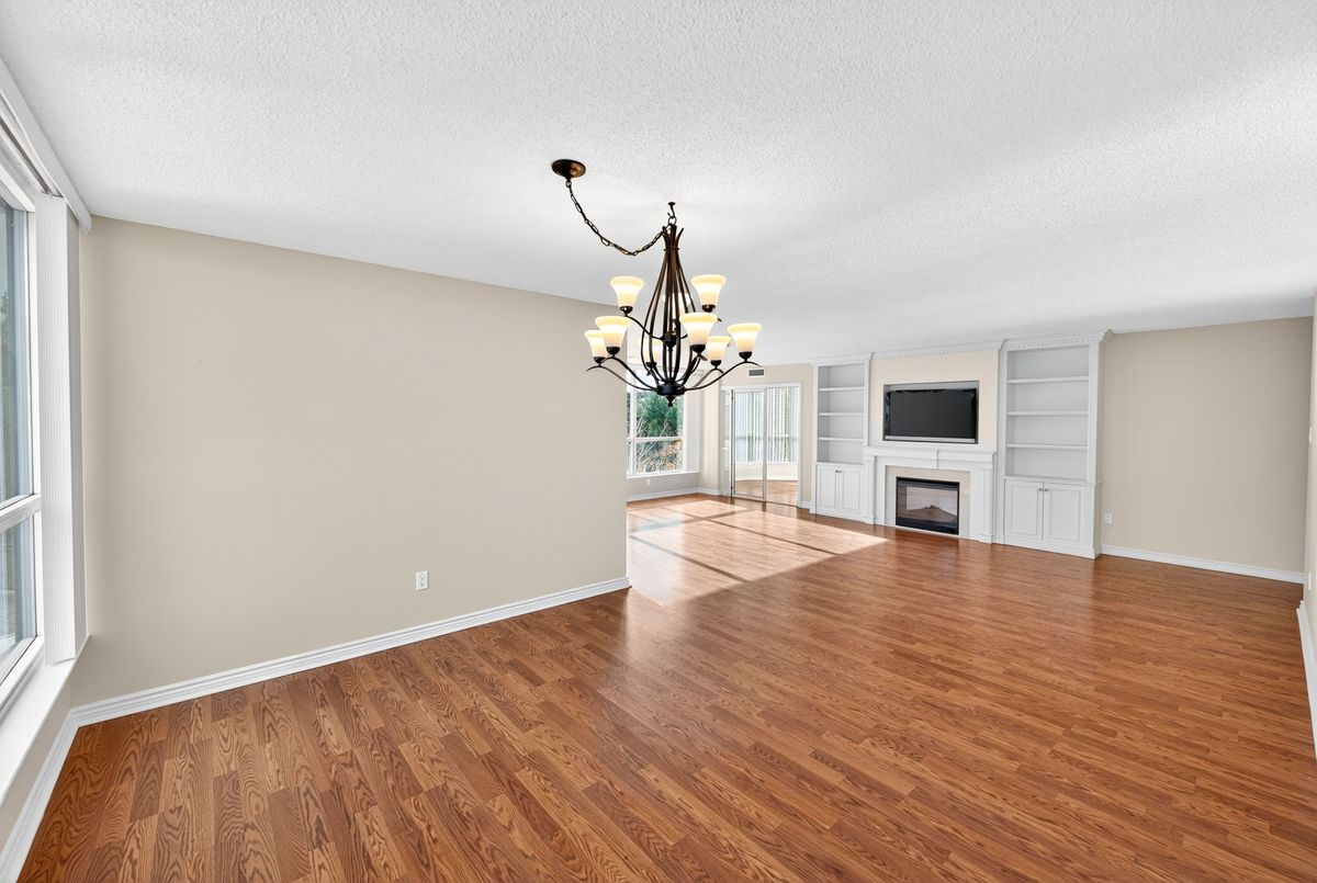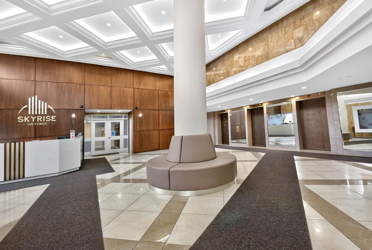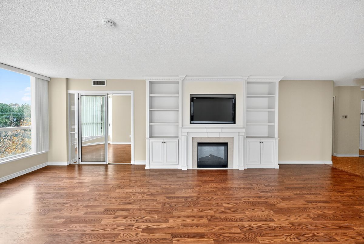 The Liberty Model - One of the Largest Floor plans in the Skyrise Community. Best of Thornhill. 1855 sq ft South-West corner residence in the highly coveted Skyrise at Yonge & Clark. Sun filled from morning to evening through large wall-to-wall windows, this rare offering combines elegant upgrades, serene unobstructed views and exceptional space for both living and entertaining. This meticulously maintained suite showcases custom built-ins throughout: a stunning living room wall with integrated shelving and included TV, a fully outfitted built-in desk & shelving system in the second bedroom and a sophisticated media wall with TV in the principal suite.The newly renovated 4 piece principal ensuite impresses with double sink, marble countertop and timeless finishes. The kitchen is bright and updated with stainless steel appliances, modern lighting and ample storage. Gleaming marble and laminate floors reflect the natural light, adding warmth and elegance to every room. A truly rare find, this oversized model includes: 2 parking spaces, 2 full-size lockers. Updated lighting & thousands spent on custom upgrades. Immaculate, move-in ready condition. Enjoy peaceful south-west facing balcony views, perfect for quiet mornings or sunset evenings. Steps to grocery stores, restaurants, cafés, salons and a pharmacy conveniently located downstairs. Positioned on the future Yonge Subway Extension, this is a smart investment in both lifestyle and long-term convenience.The Skyrise is known for its exceptional amenities: Indoor pool, Sauna, Gym. Outdoor Tennis, Indoor Squash courts, Newly renovated lobby with Concierge, Guest suites, Party room and ample Visitor parking. Maintenance fees include: heat, A/C, hydro, cable, internet (Ignite), Disney+, Crave & phone service. This Liberty Model is truly one of the building's finest offerings at a great price.