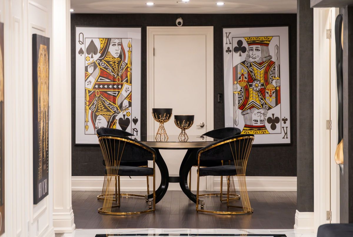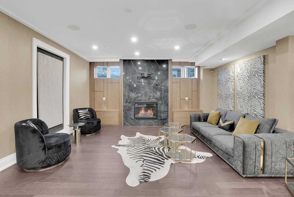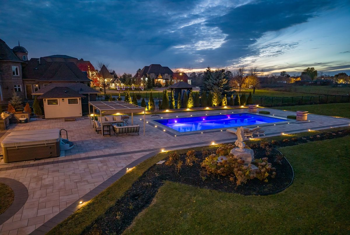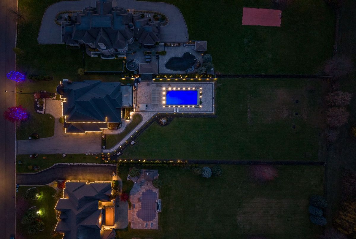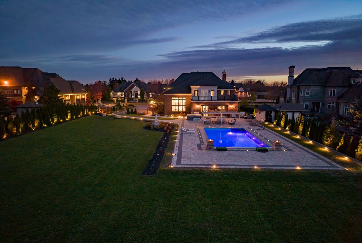 A Private Estate of Timeless Luxury & Resort-Level Living, set on 1.139 pristine acres, this extraordinary luxury builder's estate offers over 9,500 square feet of meticulously finished living space, which includes a 3,000 sq ft fully finished lower level-designed to evoke the elegance and service of a world-class boutique hotel.Every detail reflects bespoke craftsmanship and curated design, featuring Versace décor and designer furnishings imported from Italy, seamlessly woven into a cohesive, restrained palette that defines modern quiet luxury. Floor-to-ceiling millwork, custom built-ins, rich textiles, and layered architectural lighting create a sophisticated ambiance throughout-warm, intentional, and visually striking both day and night.The main living spaces are grounded by radiant heated floors on the main level and basement, offering year-round comfort beneath refined finishes. Spa-inspired bathrooms provide a serene retreat, highlighted by thoughtful styling, premium materials, and tranquil, hotel-quality design. Outdoors, the experience is cinematic. A resort-style swimming pool illuminated by a dramatic lighting scheme becomes the focal point of the estate, delivering depth, warmth, and a striking nighttime presence. Reflections dance across the water, elevating every evening into an atmosphere of effortless elegance.Three gas fire pits flicker softly throughout the grounds, creating intimate gathering spaces and visual balance against the glow of the pool. Nearby, a luxurious hot tub offers a secluded retreat-perfect for unwinding beneath the stars as the estate's lighting design enhances both privacy and ambiance.