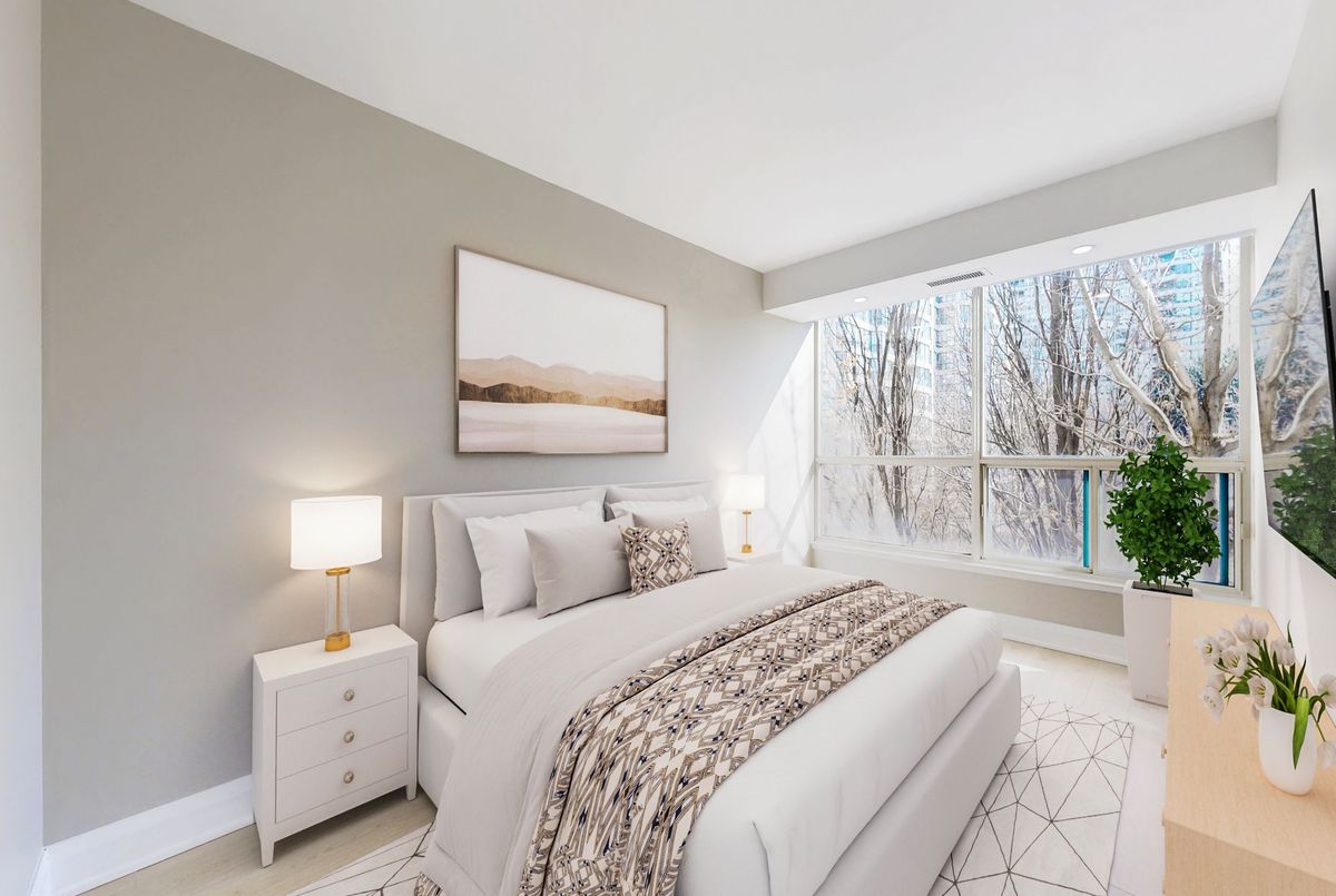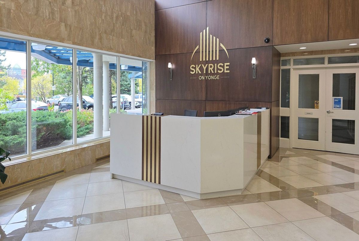 Welcome to Skyrise at Yonge & Clark, one of Thornhill's most desirable buildings. This bright and spacious 2+1 bedroom, 2 bathroom suite offers a great layout and unobstructed south views overlooking garden with mature trees, giving you privacy and greenery in the summer months. Fully upgraded with luxury vinyl flooring, crown moldings, custom cabinetry and window coverings throughout. Bright and functional kitchen with stainless steel appliances, a side-by-side fridge / freezer, reverse osmosis drinking system and plenty of pantry space. Breathtaking primary ensuite with 4-piece features double sinks, quartz counters and wall-mounted shower jets. Smooth ceilings all around. Both bedrooms with walk-in closets. Large ensuite laundry room. Reinforced wall for a large TV, Private balcony. Unit comes with 2 parking spots and a locker. Well-managed building with concierge, security, gym, indoor pool, sauna and upgraded guest suites. Maintenance fees include heat, hydro, A/C, water, bulk Ignite cable & 1GB internet (with Disney Channel & Crave) and home phone. *Listing contains virtually staged photos*