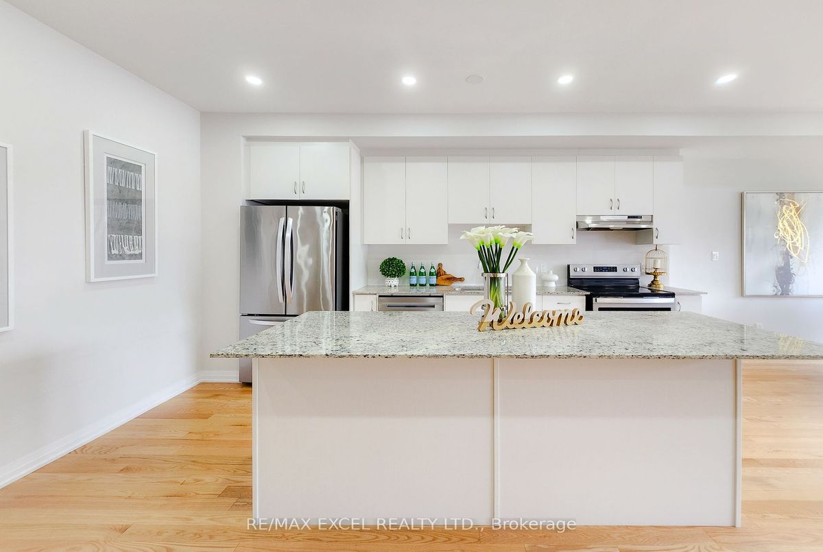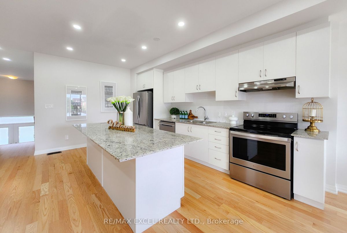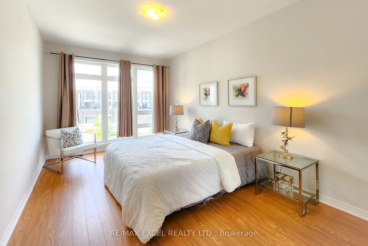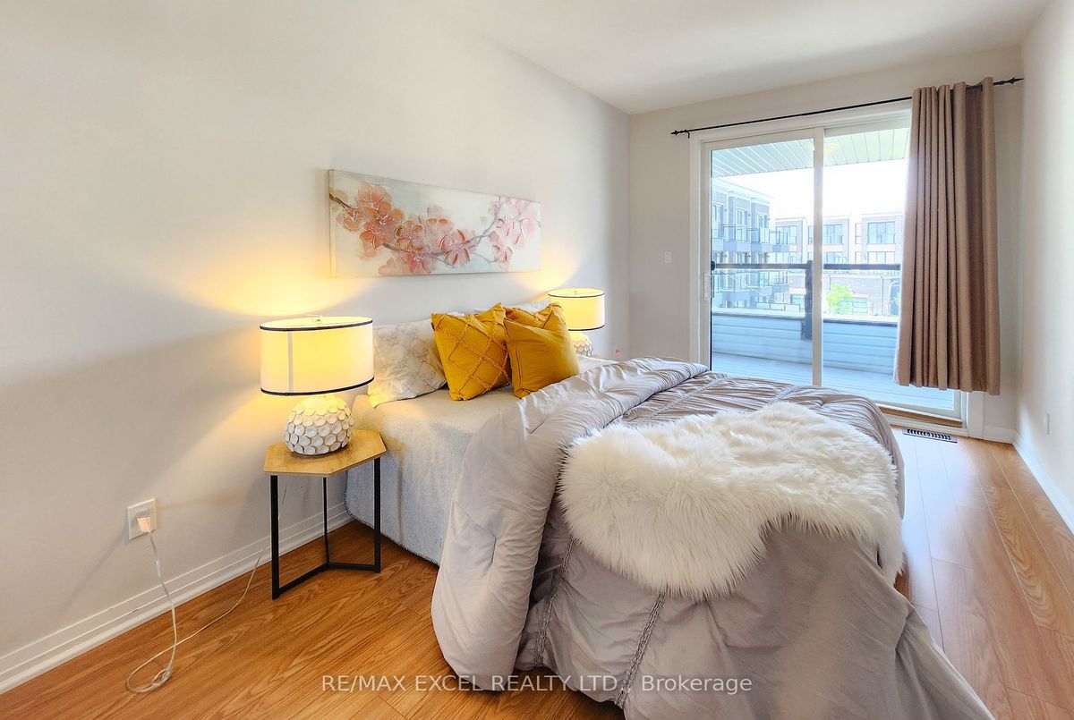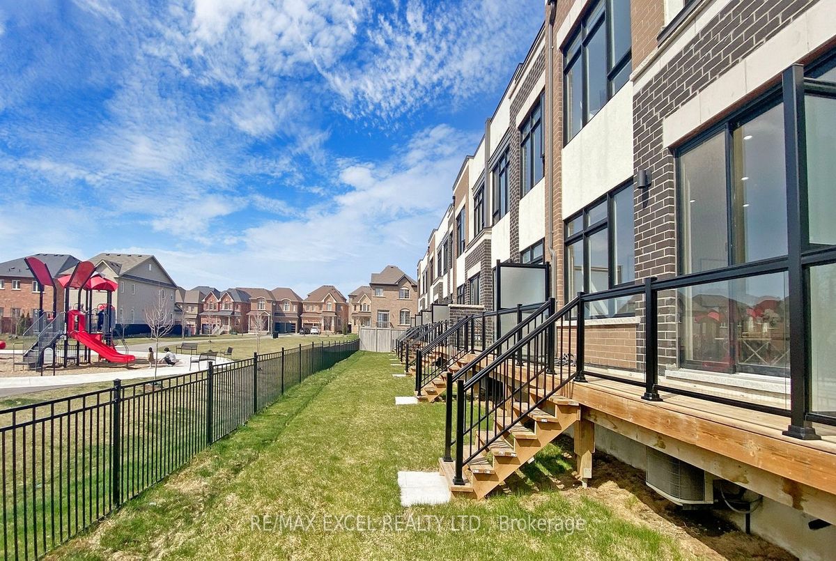 Stunning Contemporary Two-story Condo Townhouse By Aspen Ridge, Located In The Desirable Wismer Community Of Markham. Offering Over 2300 Sq Ft Of Living Space. This Home Features An Ideal Open-concept Layout, 9-foot Ceilings On Both The Main & Second Floors And Large Windows throughout. Gourmet Kitchen With Extra Large Centre Island. Boasts With 3 Generous Size Bedrooms, 2 Full Bathroom Upstair & Upstairs Laundry Room. Enjoy Pot Lights, A Front-door Parking With An Interlock Driveway & Direct Access From Garage. Backyard Features A Glass-railing Deck Patio With Black Trim & A Gas Hook-up That Backs Onto Another Park. A Finished Basement With An Open Area. Situated in a top school zone (Bur Oak Secondary School and San Lorenzo Catholic School) Walkable To TTC/YRT Stops & Mount Joy GoTrain Station. Close To Home Depot, Plaza, Restaurants, Banks, Stores & All Amenities.