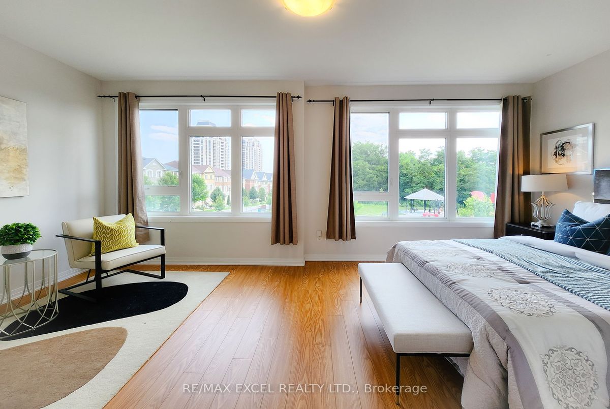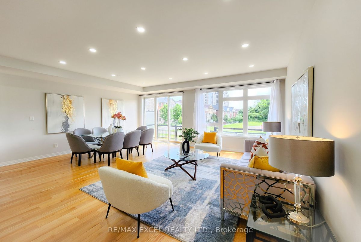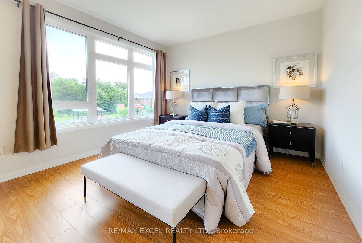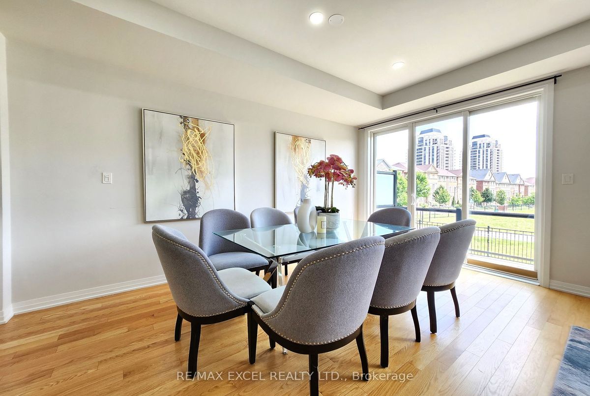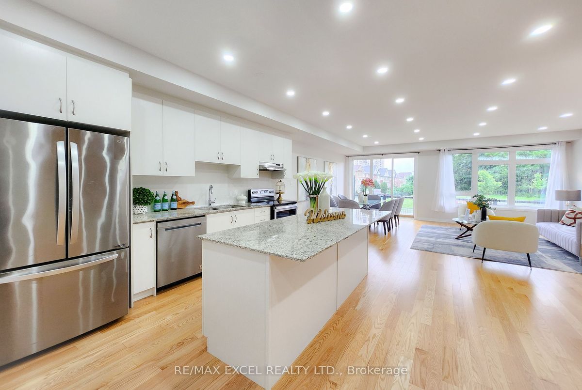 Stunning Contemporary Two-story Condo Townhouse By Aspen Ridge, Located In The Desirable Wismer Community Of Markham. Offering Over 2300 Sq Ft Of Living Space. This Home Features An Ideal Open-concept Layout, 9-foot Ceilings On Both The Main & Second Floors And Large Windows throughout. Gourmet Kitchen With Extra Large Centre Island. Boasts With 3 Generous Size Bedrooms, 2 Full Bathroom Upstair & Upstairs Laundry Room. Enjoy Pot Lights, A Front-door Parking With An Interlock Driveway & Direct Access From Garage. Backyard Features A Glass-railing Deck Patio With Black Trim & A Gas Hook-up That Backs Onto Another Park. A Finished Basement With An Open Area. Situated in a top school zone (Bur Oak Secondary School and San Lorenzo Catholic School) Walkable To TTC/YRT Stops & Mount Joy GoTrain Station. Close To Home Depot, Plaza, Restaurants, Banks, Stores & All Amenities.