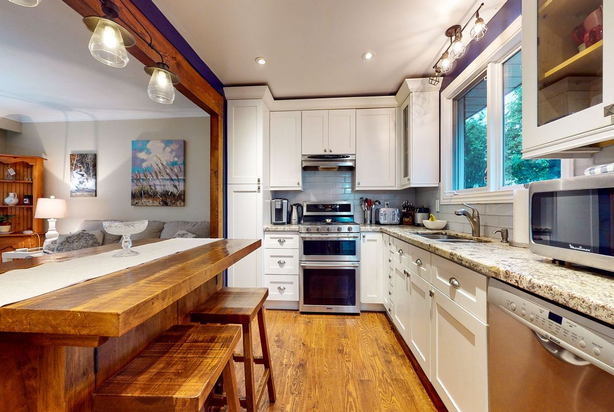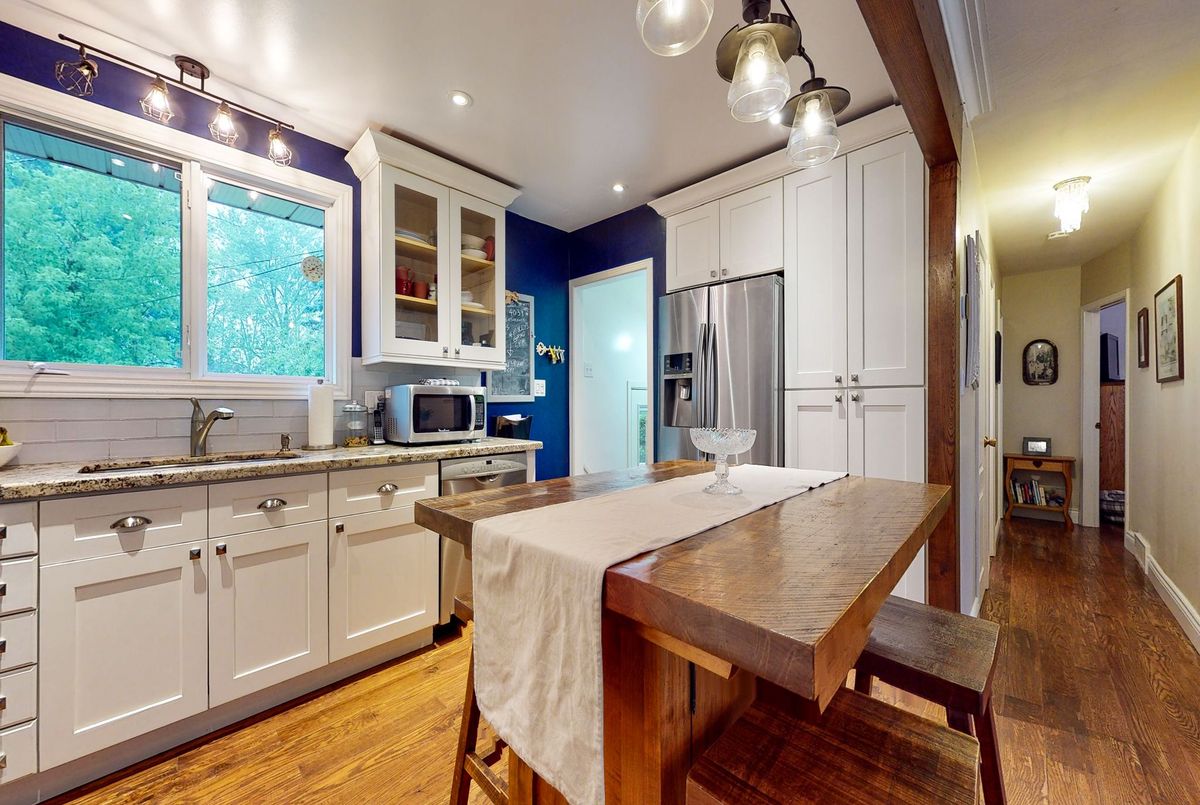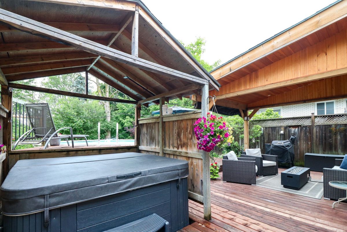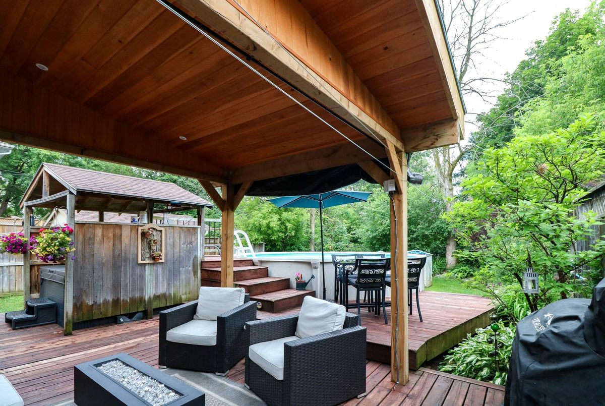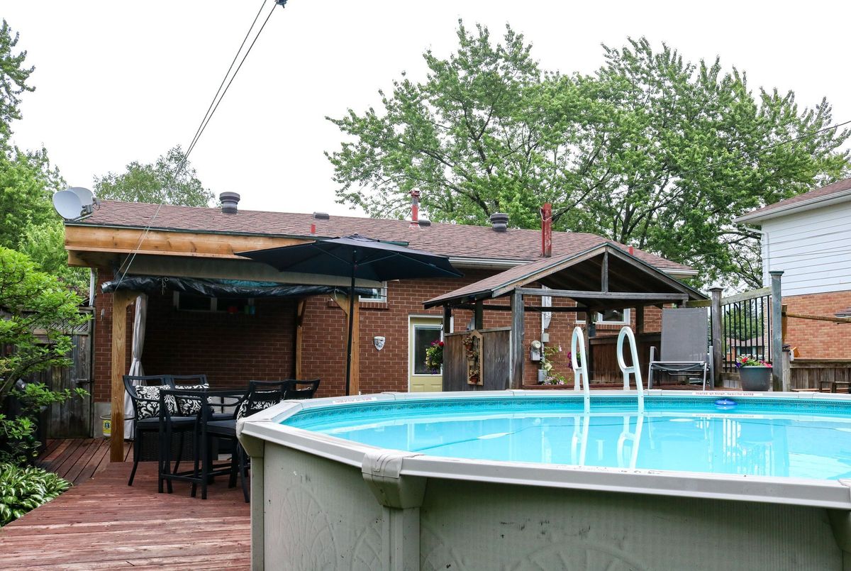 WELCOME HOME!! This beautiful 3 bedroom, 2 bathroom, FULL BRICK, RAISED BUNGALOW with over 1400 square feet is located in a desirable, well sought after neighbourhood close to Schools, Trails and shopping! The backyard is private with views of gardens. Enjoy your time by the POOL & evenings in the HOT TUB. Engineered hardwood throughout the main floor with 2 bedrooms, 4 piece bathroom that boasts a gorgeous vanity and ceramic tile floor. Open concept kitchen, living room with California Shutters and dining room. The kitchen has granite counter tops, new cupboards (2016), an island for storage and great for entertaining family & friends, stainless steel fridge with an icemaker to keep your drinks cold, the gas 5 burner stove has a double oven and stainless steel dishwasher. The basement offers a 2nd 3 piece bathroom with heated, ceramic tile floor, 3rd bedroom, recreation room, laundry and office with a workshop area. The FULLY FENCED backyard has a shed, lean-to and features a deck with a beautiful large gazebo with pot lights, Nat. Gas BBQ Hook up, 18ft swimming pool and 6 person hot tub with a privacy gazebo and gardens that outline the yard. Central Air & Gas Heat. A short walk to the Walnut Trail, one of the many trails in Collingwood. Cameron Street Public Elementary school and CCI are walking distance. Public transit and Parks are close by. Downtown Collingwood, grocery stores and fabulous restaurants are a quick drive. Shingles replaced in 2021, Furnace 2023, Central Air (2013), Hot Water Tank (2024).