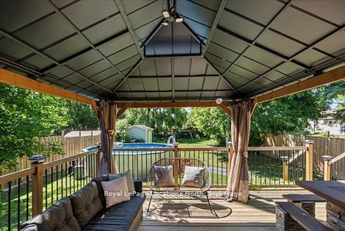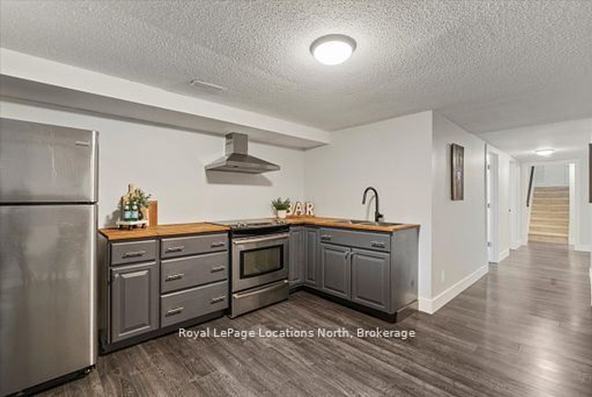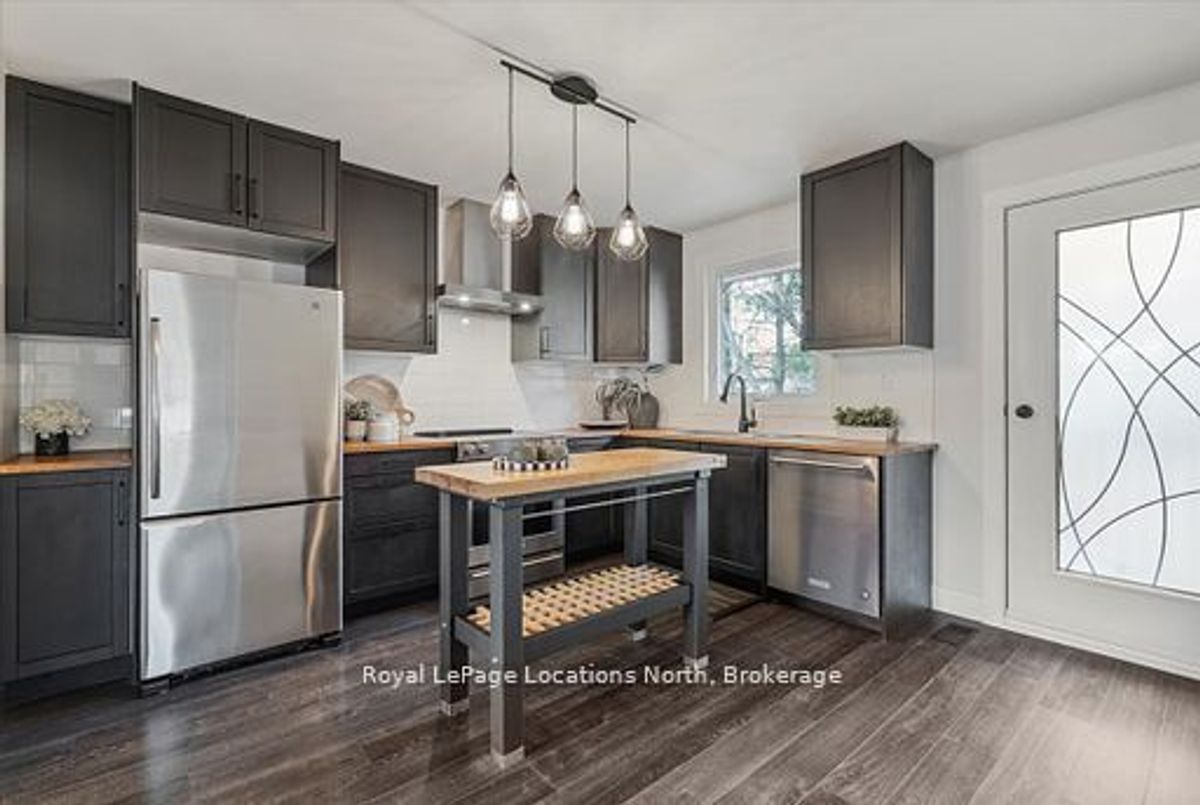 Located in the heart of downtown Stayner and within walking distance to shops, dining, and amenities, this raised bungalow offers flexibility that's hard to find. The home sits on a deep 217-foot lot with mature trees, providing a private backyard and outdoor space rarely available in such a central location. A large wraparound deck off the kitchen overlooks the yard and is perfect for entertaining or relaxing outdoors.The main floor includes 3 bedrooms, a full 4-piece bathroom, a bright living room with fireplace, and a kitchen with stainless steel appliances just off the dining area.The fully finished lower level is where this home truly shines, featuring a spacious rec room, gas fireplace, second full kitchen with bar seating, an additional bedroom, full bathroom, and office nook. This layout offers excellent potential for multi-generational living, in-law accommodation, or added flexibility for extended family and guests.