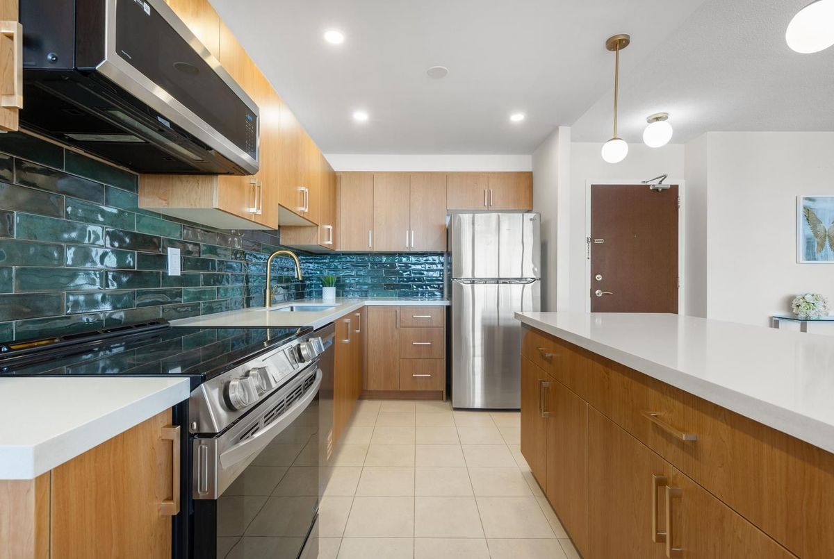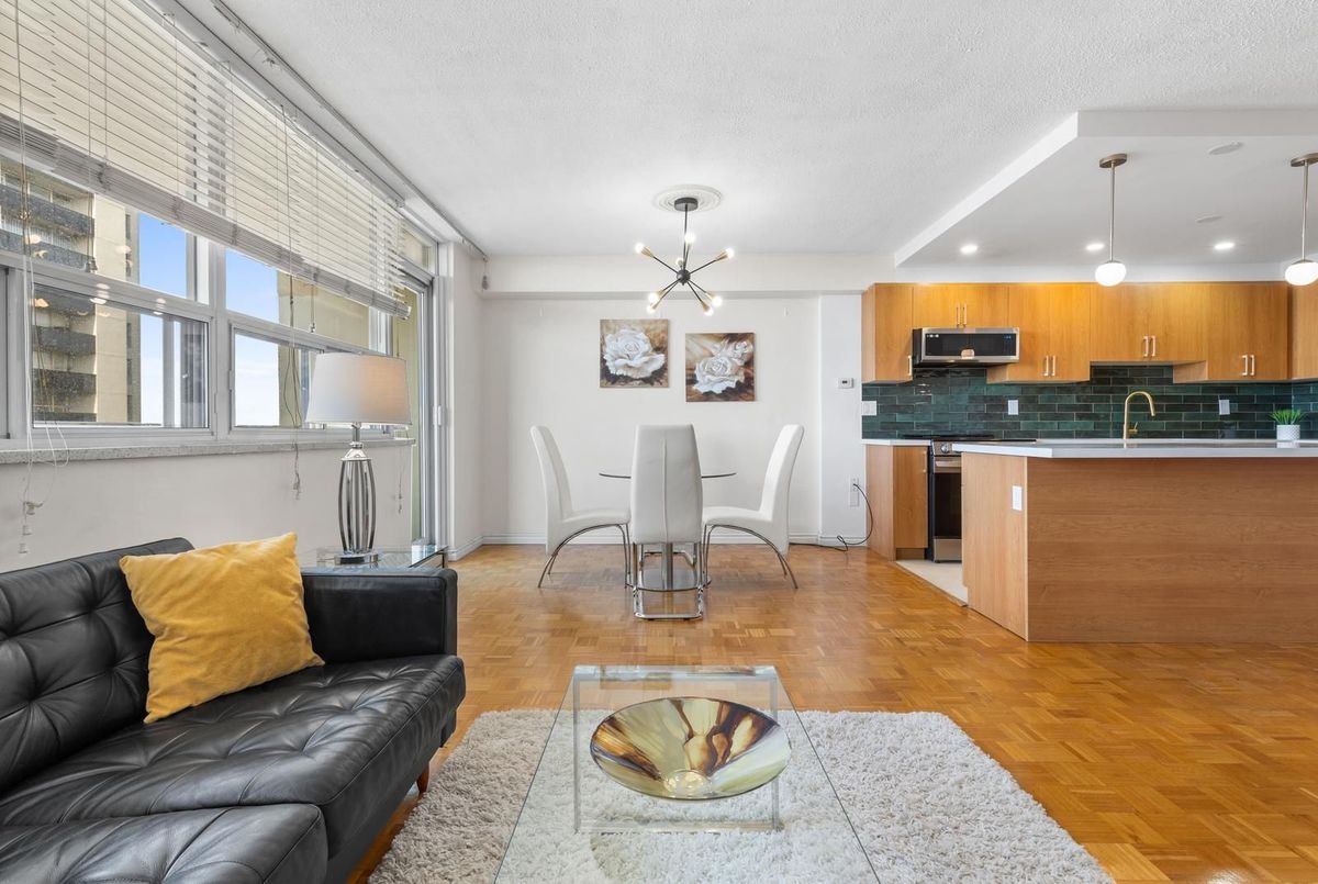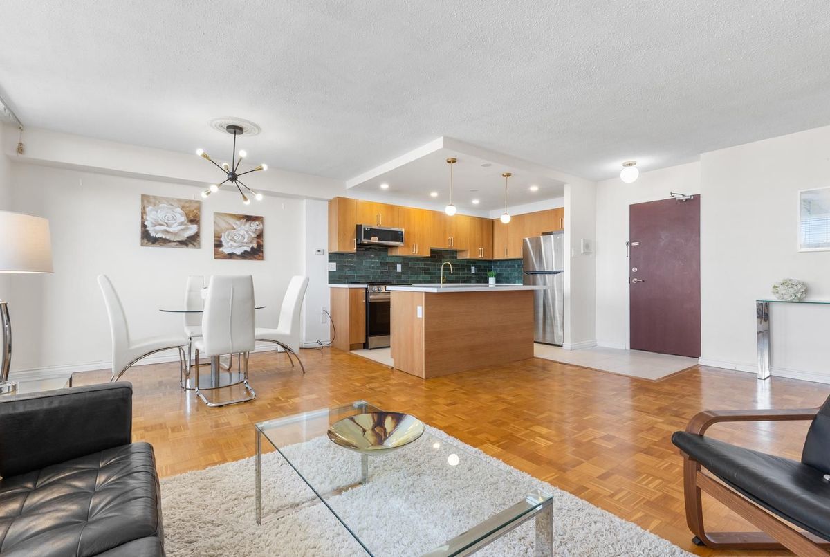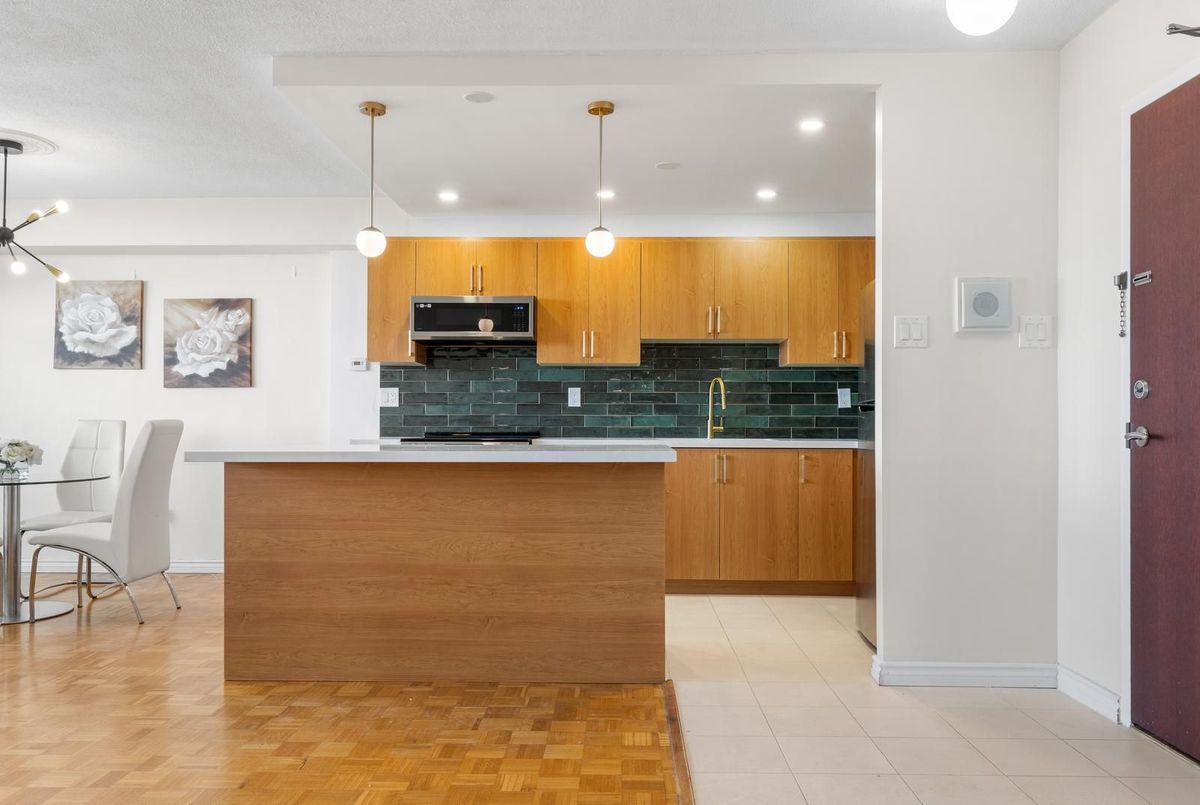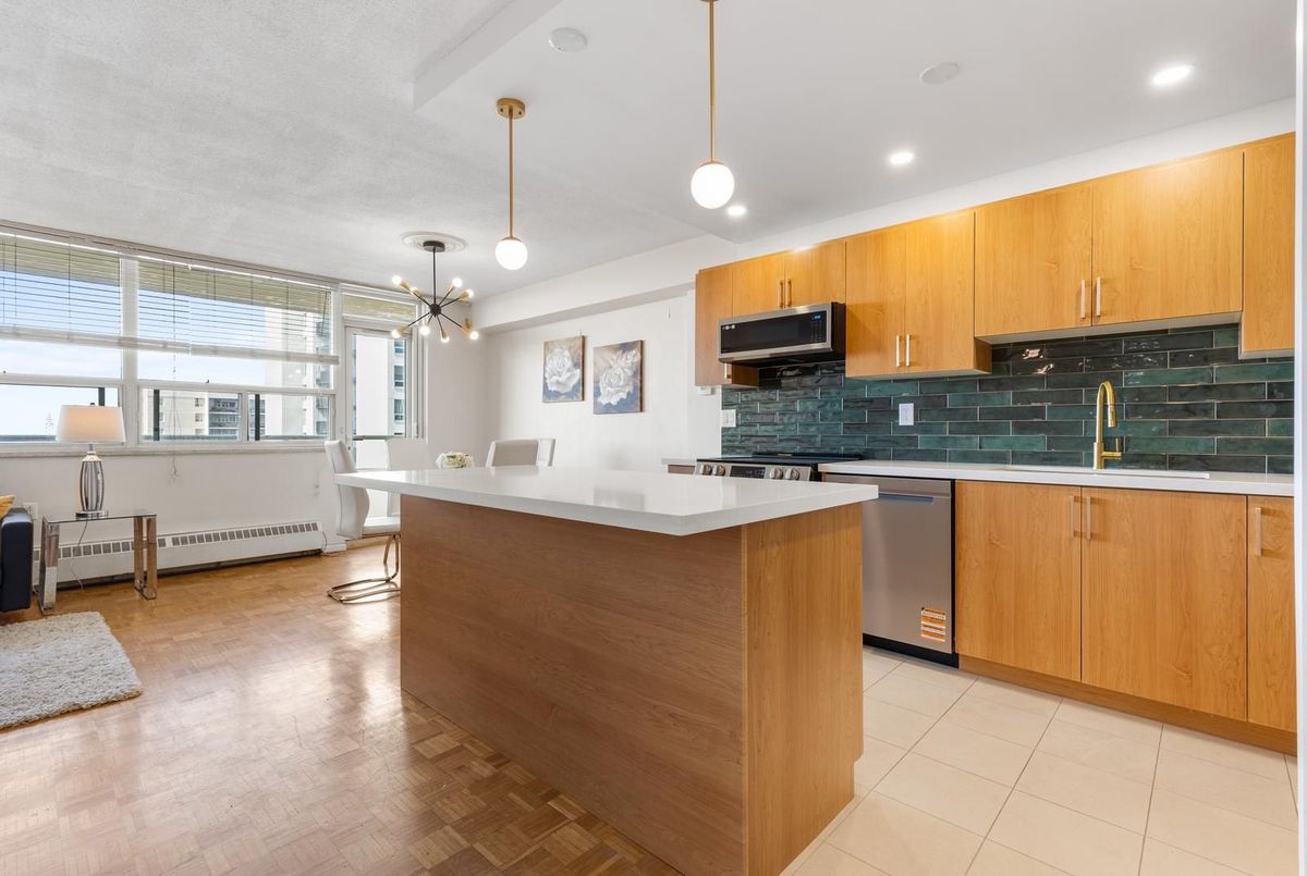 Rare affordable family-sized home in Toronto! This spacious 3-bedroom corner unit offers Southwest exposure with a large balcony, perfect for enjoying breathtaking sunsets. The newly renovated, open-concept kitchen is truly one-of-a-kind in the building, designed to impress with its modern layout., featuring high-end limestone flooring, a hand-painted Italian tile backsplash, island with bar-like overhang, and all-new appliances, seamlessly blending style and functionality. The open-concept living and dining areas provide an inviting space for entertaining. From the balcony, you can take in a wide city view all the way to the Lake and the Escarpment. Generously sized bedrooms with large windows ensure an abundance of natural light throughout. Newly renovated ensuite bathroom in the primary. Great value for all-inclusive maintenance fees, includes building gym, indoor pool, sauna, rooftop deck, library/reading room, heat, hydro, water, cable tv and high-speed internet, on-site storage locker and underground parking. Located in a prime area, just steps from shops, restaurants, and transit, including a walkway gate to Glencairn Subway Station, walking distance to Eglinton West Station, and the upcoming Cedarvale Station on the Eglinton LRT. Easy access to Allen Road, Hwy 401, parks, and the Kay Gardner Trail makes this an unbeatable location.
