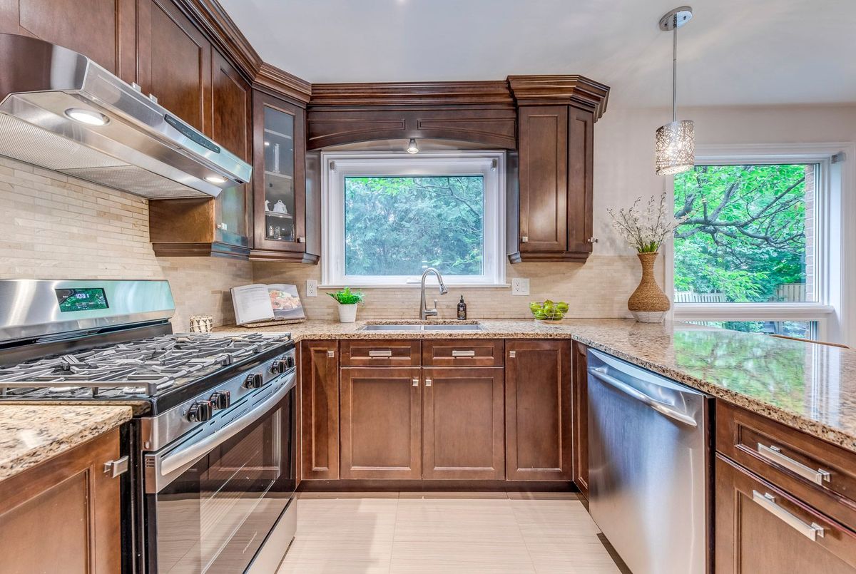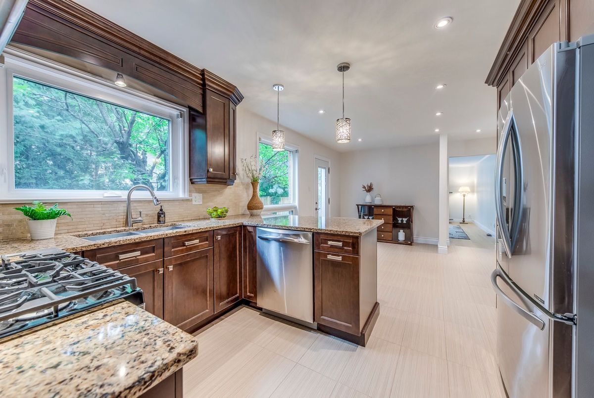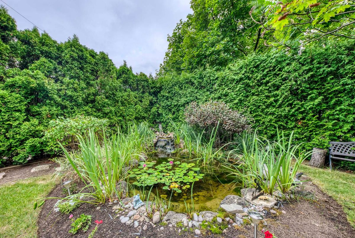 Stunning, Fully Upgraded Home on a Private Corner Lot with Pond & Waterfall! Beautifully landscaped and surrounded by mature trees, this spacious home sits in an exclusive, upscale neighbourhood with lush trails and parks. Featuring new engineered hardwood floors (ground & 2nd floors), luxury vinyl in basement, and an elegant oak semi-circular staircase with black iron pickets open to the basement. Enjoy a custom maple kitchen with quartz counters, pantry, new gas stove, breakfast bar and eat-in area. Renovated bathrooms, smooth ceilings, new baseboards, modern light fixtures, black hardware on doors, fresh paint throughout. New furnace & central air conditioning. Two fireplaces: wood-burning in family room, gas in basement. Finished basement with 2 open rec areas, custom built-in shelves plus a den/bedroom, 2nd rec room has plumbing behind drywall (use to be a wet bar). Steps to Huron Park Community Centre (pool/arena), UTM, top schools, trails, shopping. Easy access to highways & hospital. A must-see!