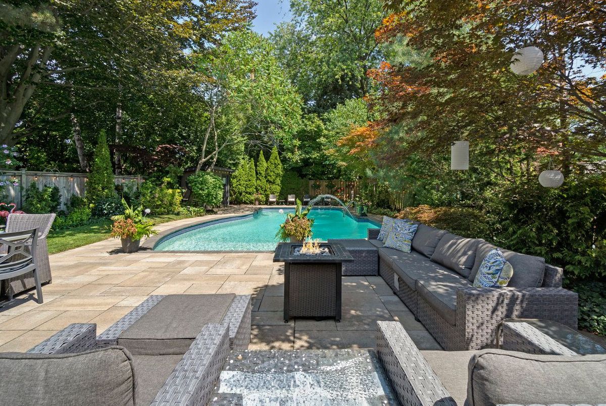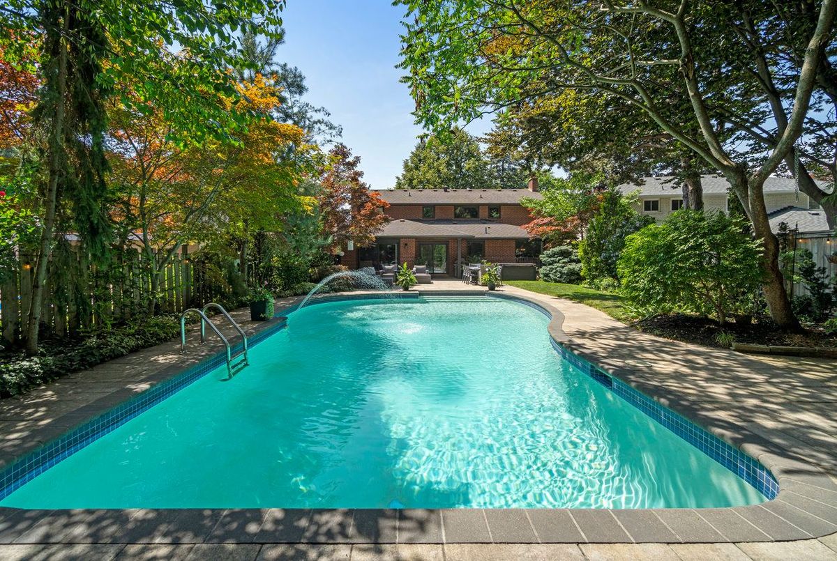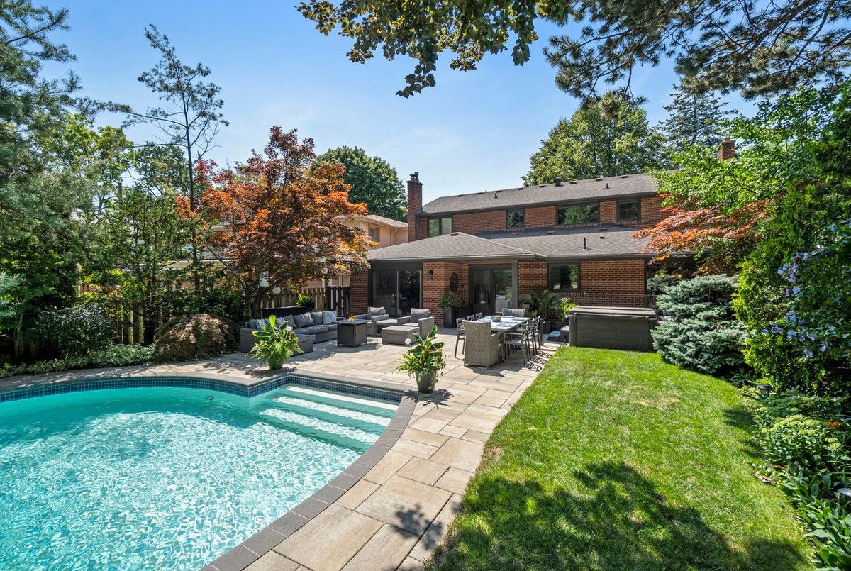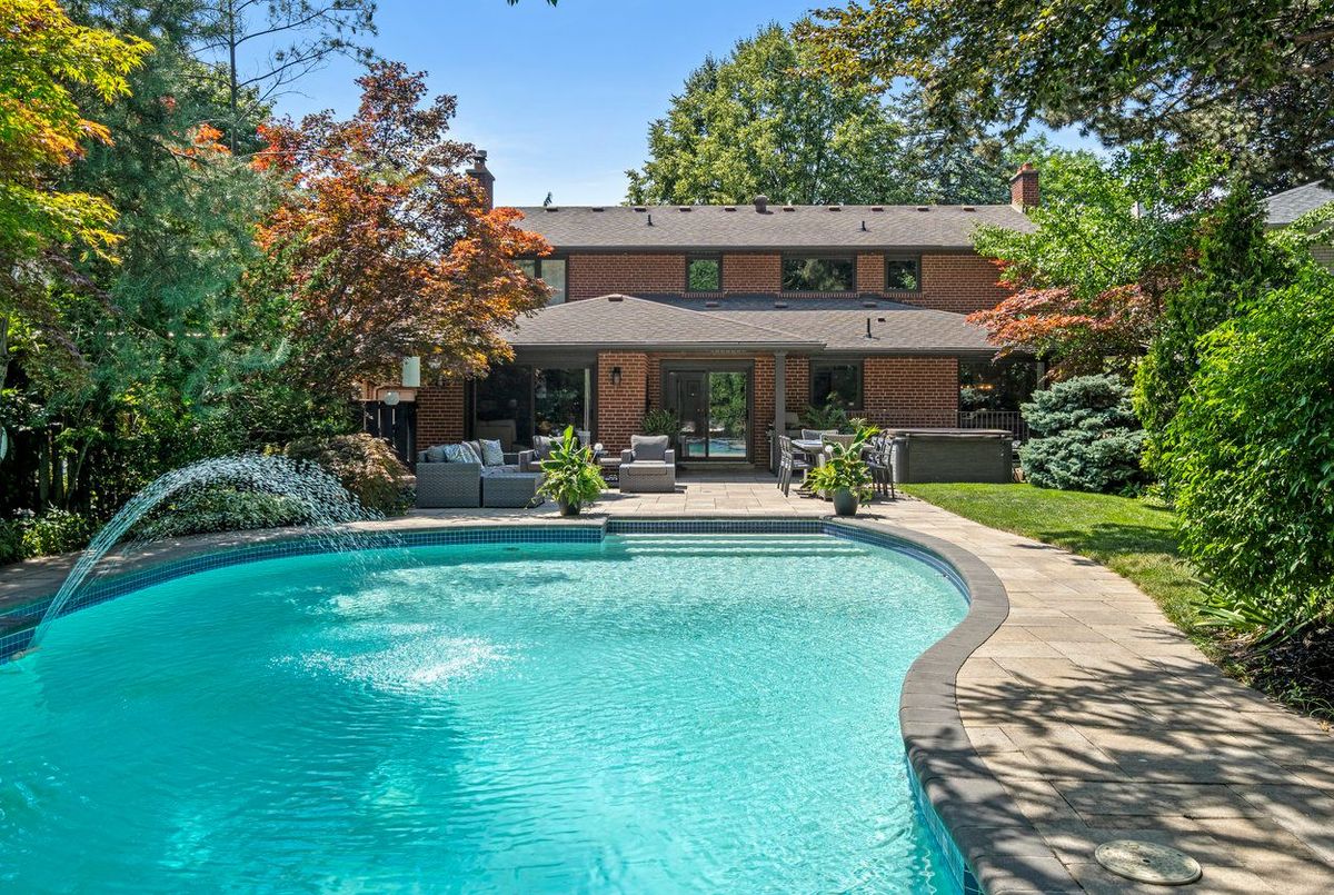 Welcome to 33 Ashford Drive, set on one of the most desirable streets in Princess Gardens. This beautifully renovated 4-bed, 4-bath home offers over 4400 sq ft of finished living space, thoughtfully designed for both family living & entertaining. The grand entrance features a sweeping spiral staircase open to the lower level, creating an impressive first impression. The chefs kitchen has been fully renovated with a large center island, sleek finishes & premium appliances perfect for preparing meals or hosting guests. A main-floor laundry room adds everyday convenience. Upstairs, the serene primary suite includes a spa-inspired ensuite, while 3 additional bedrooms offer generous space for family & guests. The fully finished lower level boasts a spacious recreation room, office/bedroom, abundant storage & a separate walk-up entrance to the backyard, ideal for multi-generational living or future income potential. Step outside to your private backyard oasis featuring a piano-shaped, deep diving pool, hot tub ('19) & pool house shed. With a dedicated gas line for your BBQ & a 64' x 150' lot, this space is perfect for entertaining, relaxing, or family gatherings, the backyard was previously used as a movie set! Recent upgrades include windows and doors ('18), garage door ('18) & soffits/fascia/gutters ('18), ensuring long-term peace of mind. Located just 10 minutes from Pearson Airport & 30 minutes to downtown Toronto, this home offers the perfect balance of luxury, privacy & convenience.