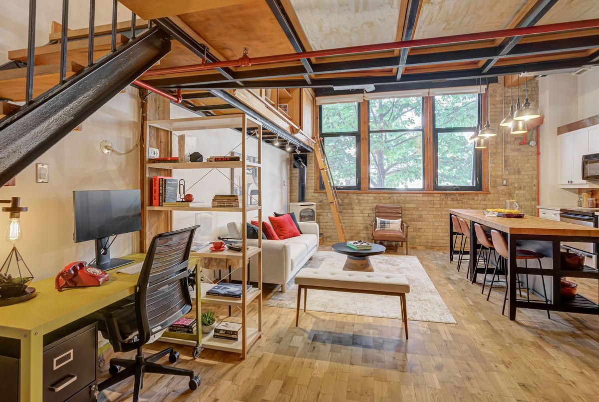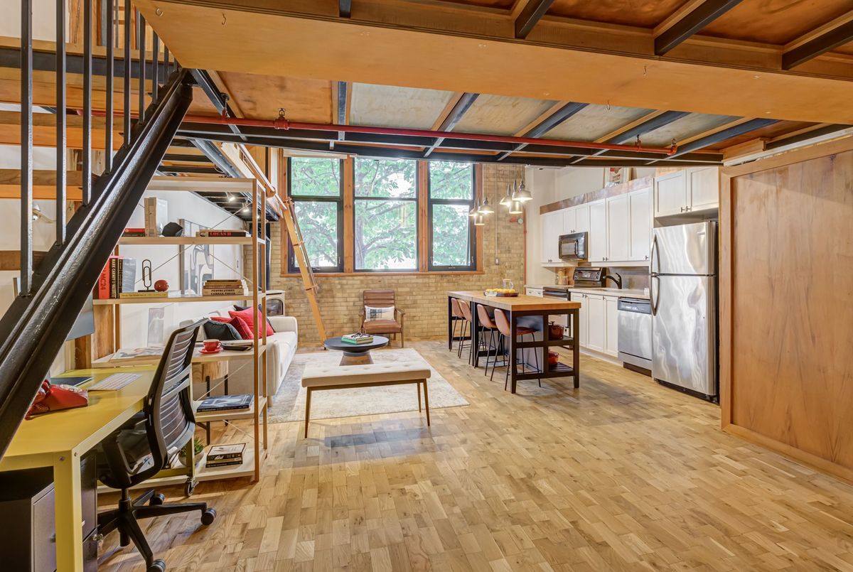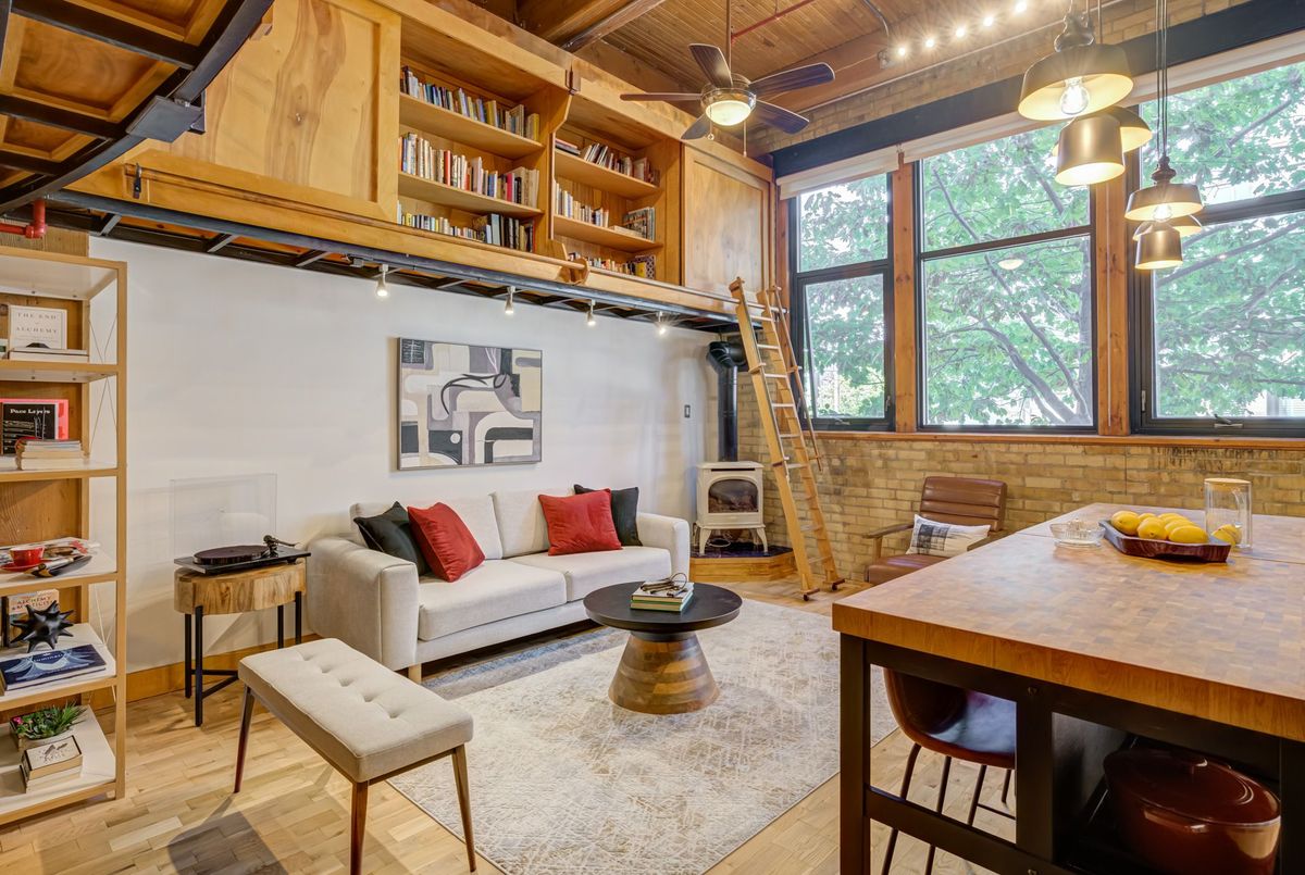 Exposed brick, soaring ceilings, and an open-concept design set the tone in this one bedroom, one bathroom hard loft at the boutique Wallace Station Lofts. A lofted bedroom, original hardwood floors, rolling library ladder, copper backsplash, and new quartz countertops strike the perfect balance of raw industrial character and modern style. Step outside and the Junction Triangle comes alive: cafes, eateries, and indie shops at every turn. With the Toronto Railpath at your door, seamless access to the UP Express, GO Transit, or the subway makes downtown (or even the airport) just minutes away. With surface parking and a locker included, this is urban living at its most vibrant and effortless.